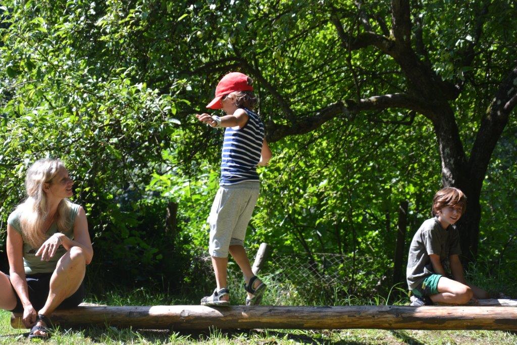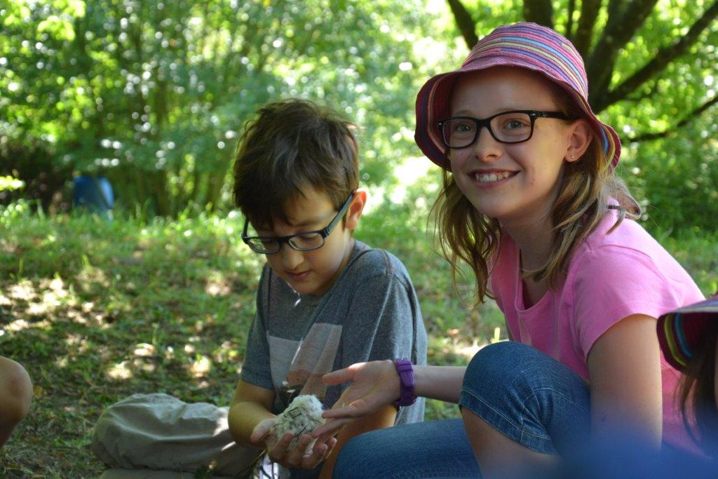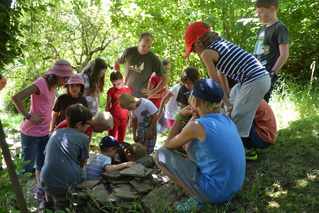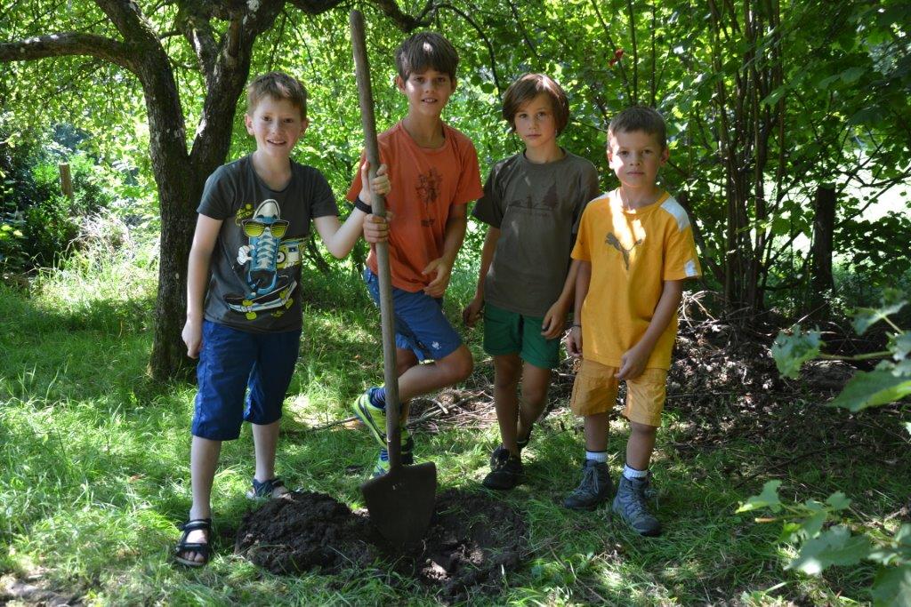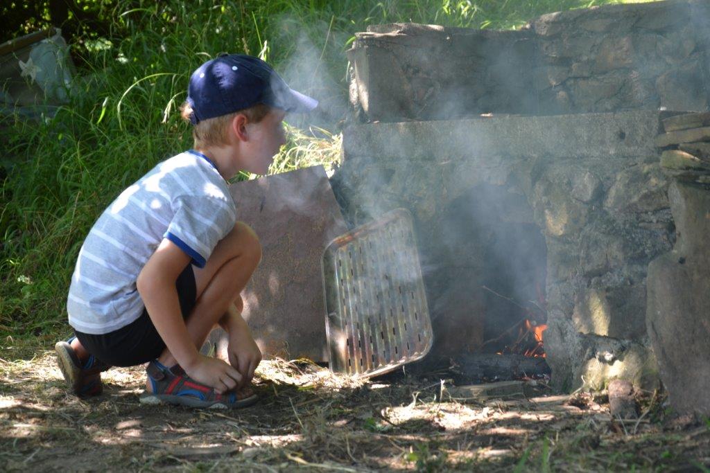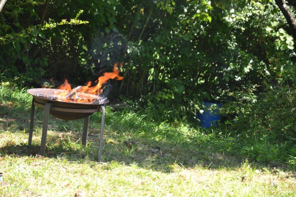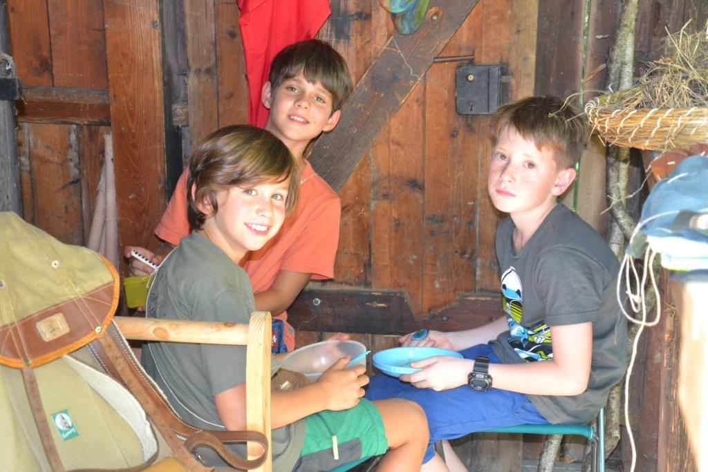 Immerhin hatten sie nur 5 Streichhölzer zur Verfügung, kein Papier oder Pappe, sondern nur Material, das sie selbst in der Natur fanden. Nach einigen Versuchen und Irrtümern schafften es alle, in ihrer Feuerschale ein Feuer zu entzünden. Nicht nur Holz und Zunder, sondern vor allem viel Erfahrung wurde dabei gesammelt. Luca, ein erfahrender Waldläufer, entzündete sein Feuer mit einem Magnesitstab in einer Erdmulde. Mit viel Ausdauer, Konzentration und der Unterstützung von Emil schafften die Jungs auch dieses Feuer zu entfachen. Gekocht wurde natürlich auch mit Hilfe des Feuers und der Gemüseeintopf schmeckte wirklich lecker! Ein Zunderbeutel aus Leder wurde hergestellt und mit selbstgesammeltem Zunder befüllt. Zum Abschluss demonstrierte unser Feuerexperte Christian Prager die Methode mit dem Handdrill. Die Kinder staunten nicht schlecht, wie einfach dies aussah und waren Feuer & Flamme für dieses Element.