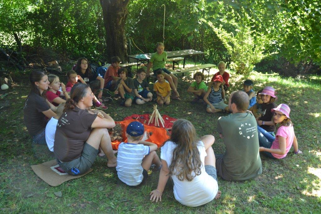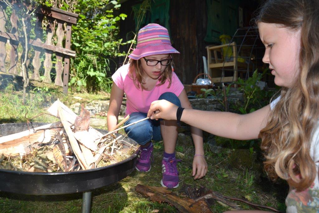Ganz im Zeichen des Feuers stand der vierte Tag der Wilden Woche.Wie das Feuer auf die Erde kam - davon erzählte eine indianische Geschichte und nachdem die Kinder einiges über Zunder und den Aufbau eines Feuers erfahren haben, machten sie sich in Gruppen daran, ihr eigenes Feuer zu entfachen. Das hört sich einfacher an, als es ist...
