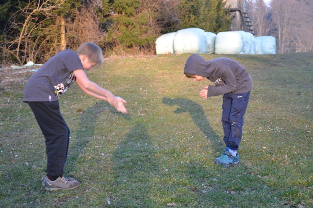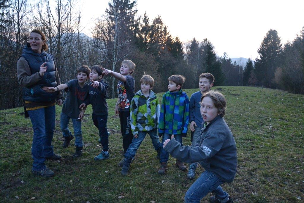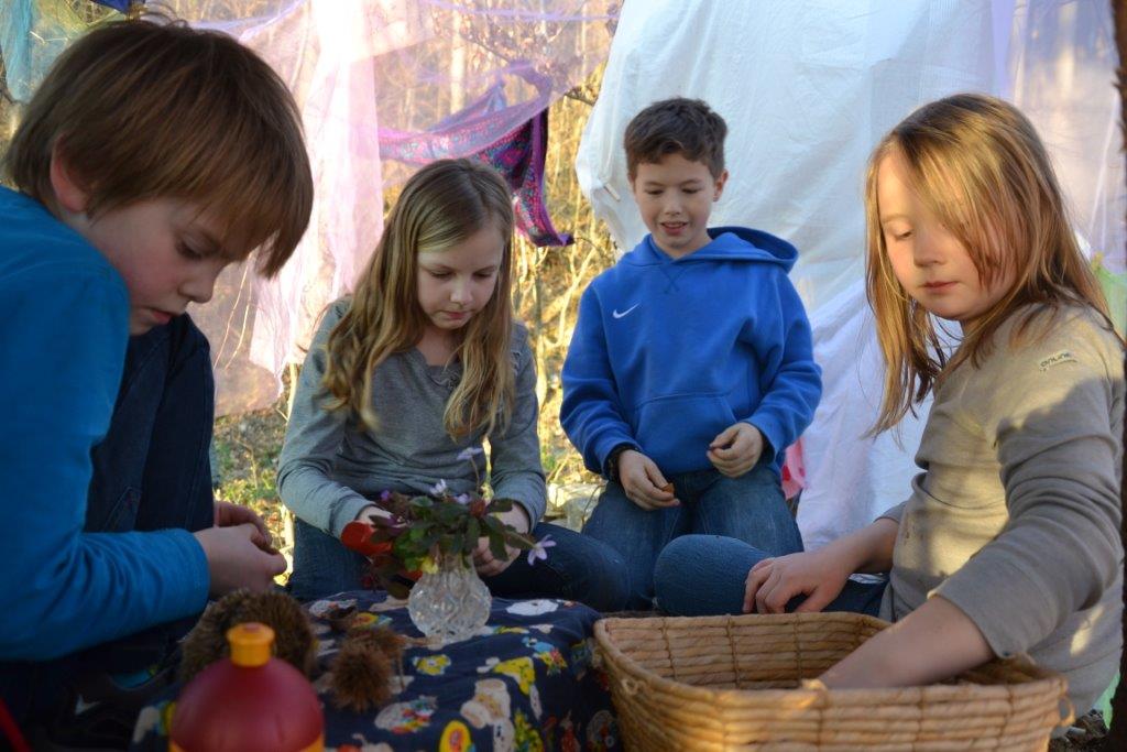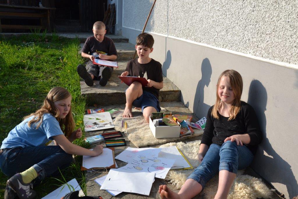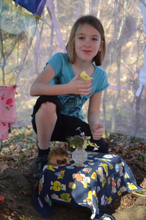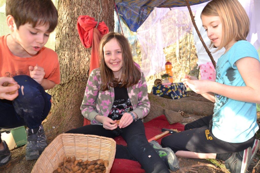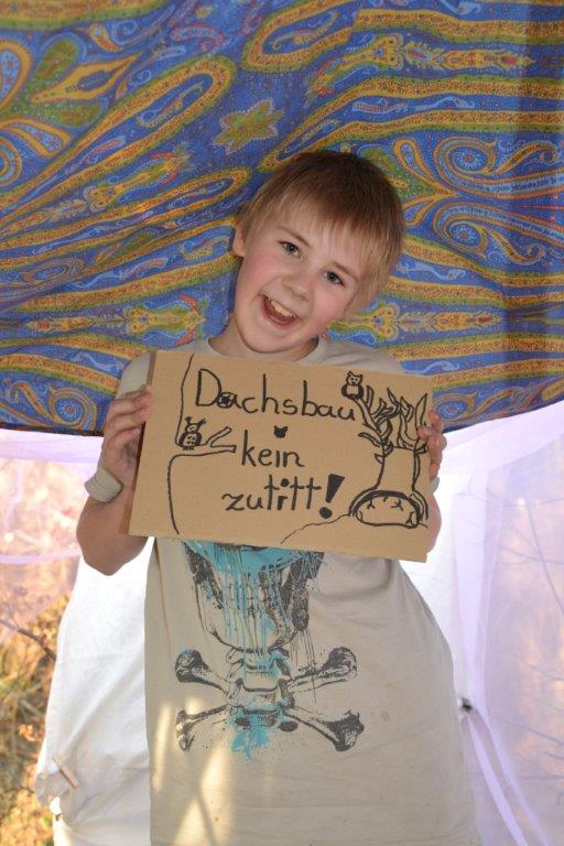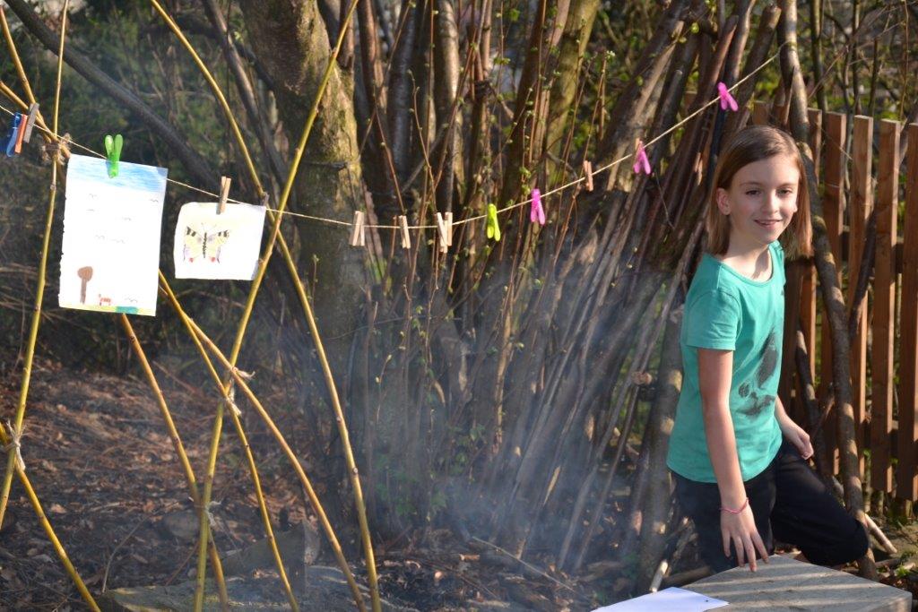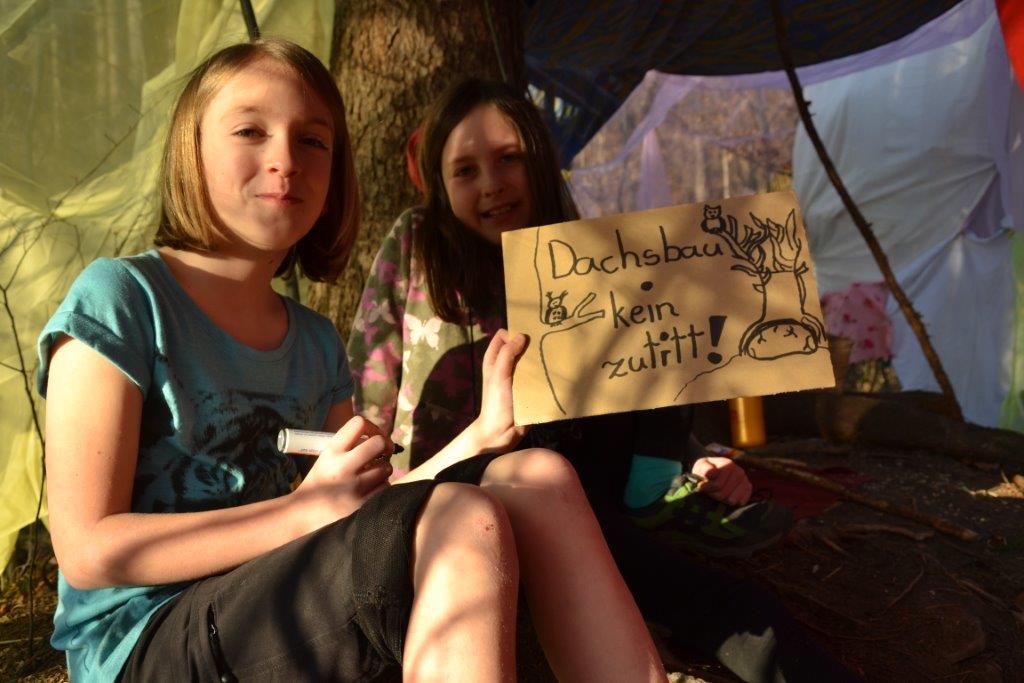 Der Frühling hat es richtig gut gemeint mit uns und wir hatten durchgehend sonniges, warmes Wetter. Das gab uns die Gelegenheit kreativ tätig zu sein: wir bauten mit Tüchern und Seilen einen Dachsbau – Zutritt natürlich nur für Dachse erlaubt! Viele kleine Details machten den Bau so richtig wohnlich und die Kinder verbrachten eine schöne gemeinschaftliche Zeit darin! Außerdem haben wir gezeichnet und erstaunliche Kunstwerke hervorgebracht! Mit besonderen Malstiften wurden vor allem Tiere und Pflanzen in naturgetreuer oder kreativer Wiese dargestellt. Die Mädchen gaben sogar einmal ein Konzert mit Gitarrenbegleitung, die Buben spielten Sketche.