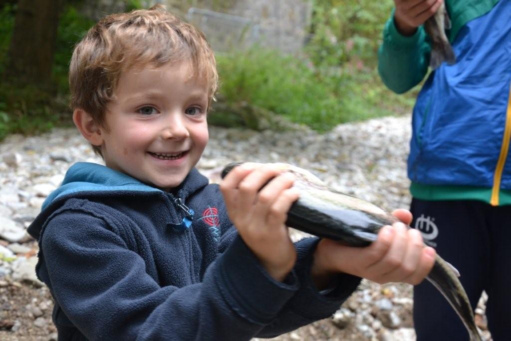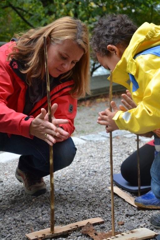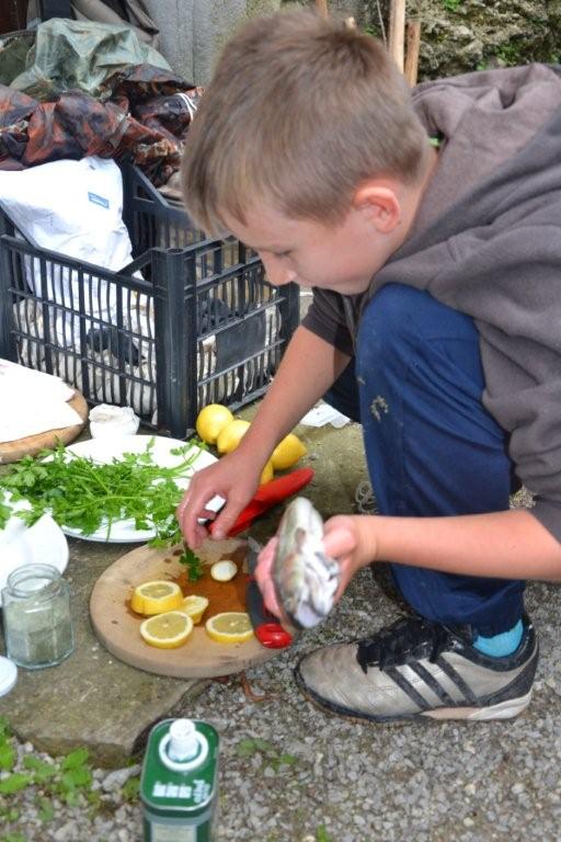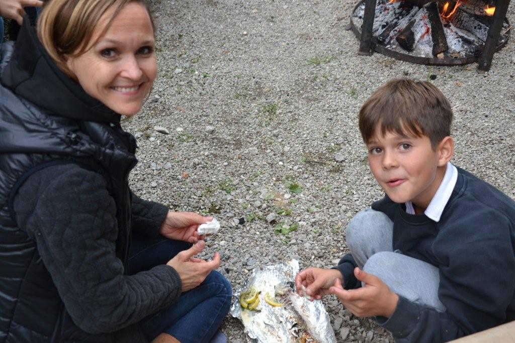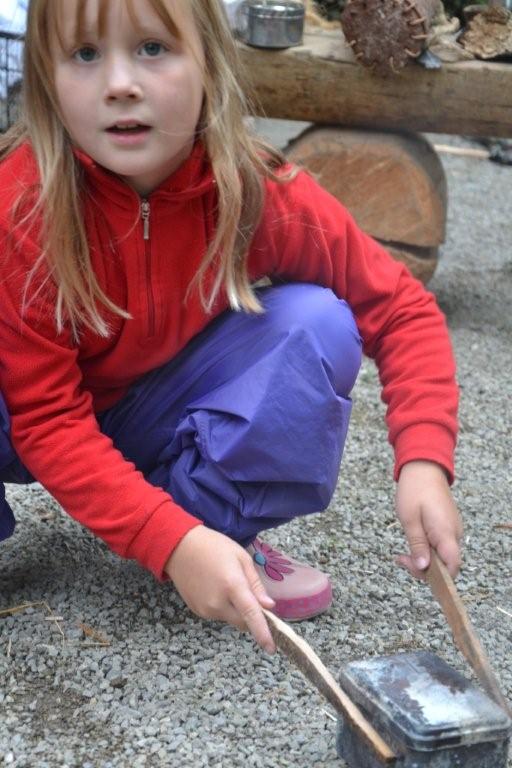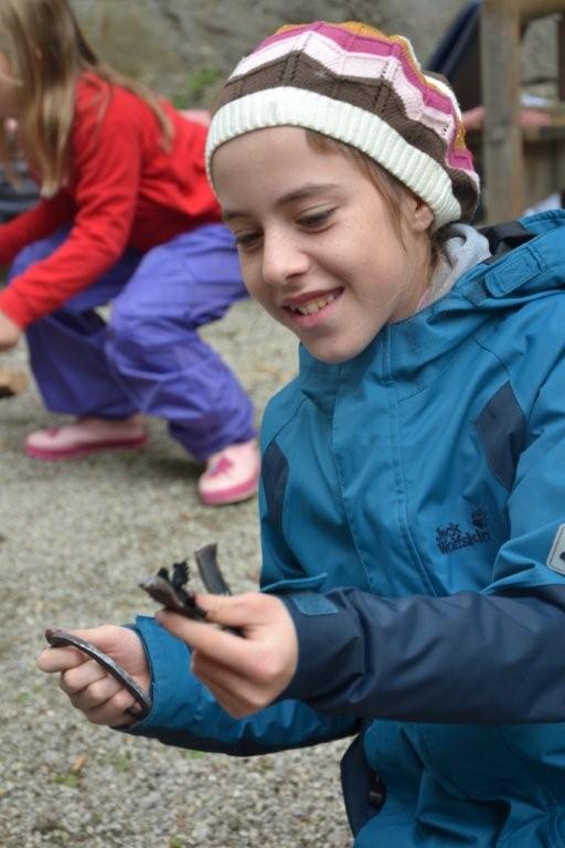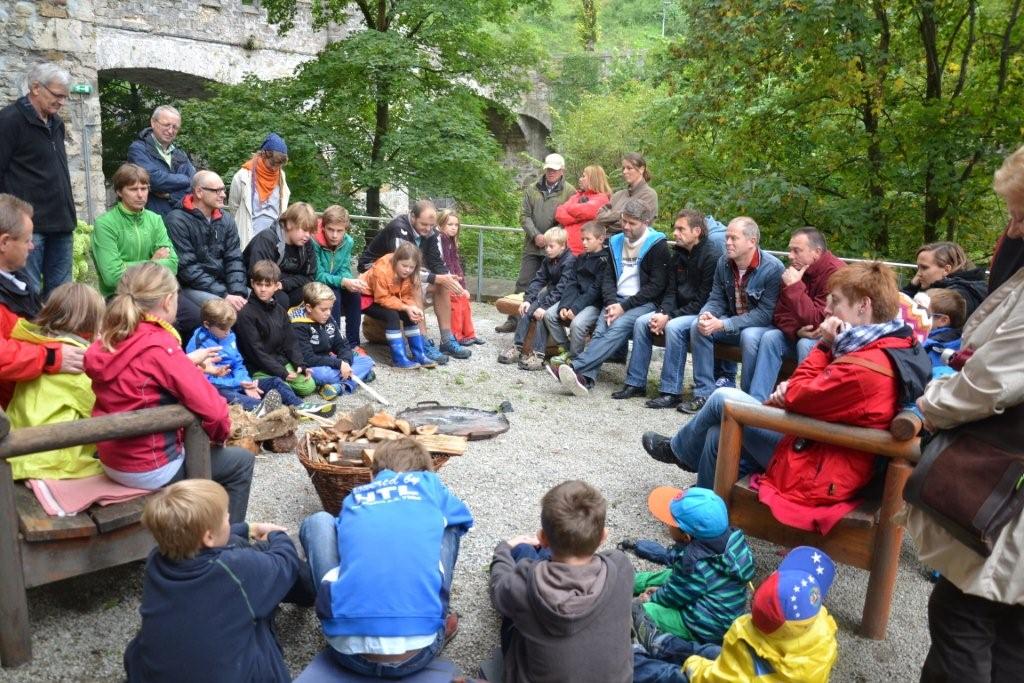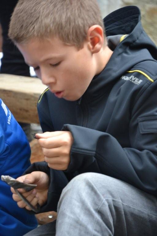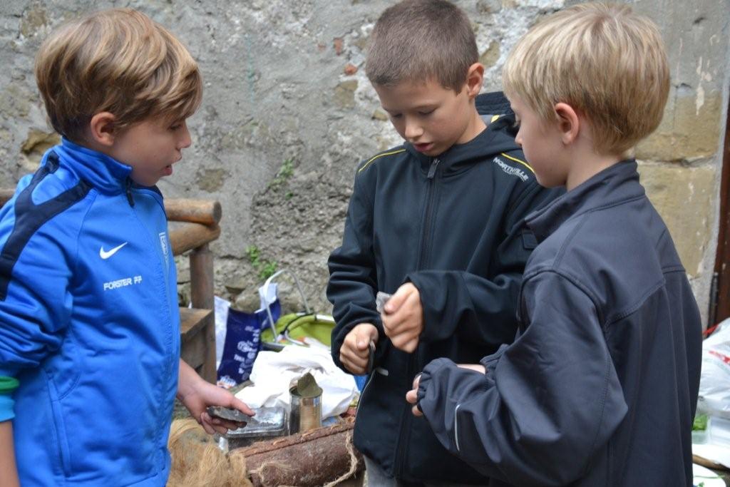 Der Natur- und Wildnisexperte Gernot Mühlberger entfachte auf ursprüngliche Art und Weise mit dem Feuerbohrer ein Feuer und zeigte den Teilnehmern, wie man mit dem Feuerstein und dem Feuereisen Funken erzeugen und Feuer gewinnen kann. Christian Prager vom spür.sinn-Team demonstrierte die Methode des Handdrills. Des weiteren bestand die Möglichkeit mit Herrn Gernot Walter ein eigenes Feuereisen in der „Schwarzen Kuchl“ zu schmieden. Es wurde gehämmert, geschlagen, gefunkt und gerieben und so mancher Teilnehmer zeigte sich unermüdlich im Versuch ein eigenes Feuer zu entfachen. Abschließend wurden Fische am Lagerfeuer gegrillt und der Abend klang nach einem ereignisreichen Nachmittag in gemütlicher Runde aus.
