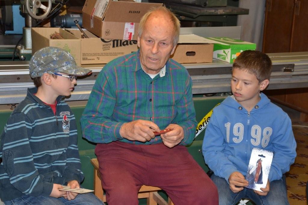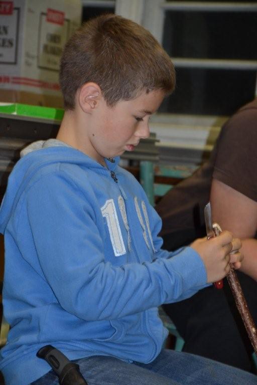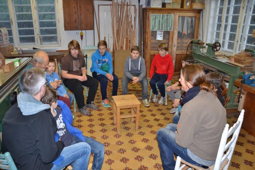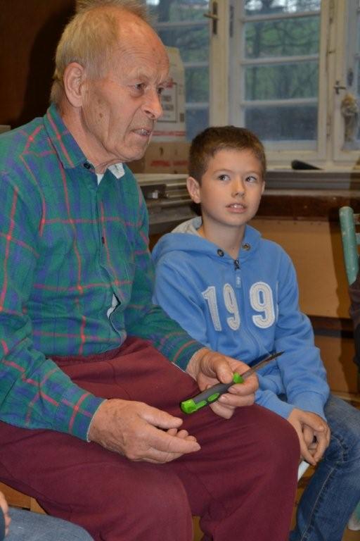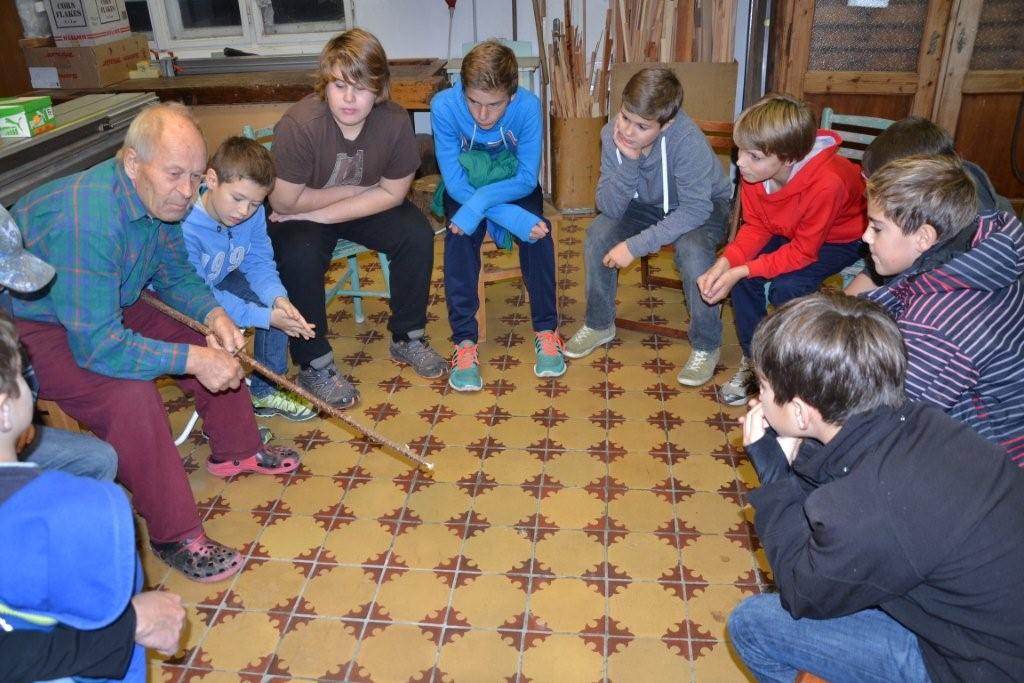 Am 6. November war es endlich soweit! Unsere vierteilige Kursreihe zum Thema Schnitzen begann. Unser Gastgeber und Schnitzlehrer Gerulf Wilhelm nahm uns bei seinem Haus am Schwarzenberg sehr herzlich in Empfang und zeigte uns gleich einmal ein paar selbstgemachte, künstlerische Schnitzarbeiten. Anschließend führte er in seiner Werkstatt die Kinder in den sicheren Umgang mit dem Schnitzmesser ein und zeigte unterschiedliche Schnitzendungen am Rundstab (Pyramide, Halbkugel, Kegel, abgeflachte Kante). Kinder wie Erwachsene übten sich in der Folge beim Bearbeiten der Haselnussstöcke. Leider verging die Zeit zu schnell, einige werden – vom Schnitzfieber erfasst – zuhause weiterüben. Am kommenden Freitag geht es weiter mit dem zweiten Teil!!