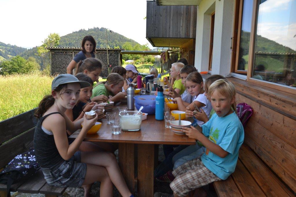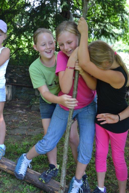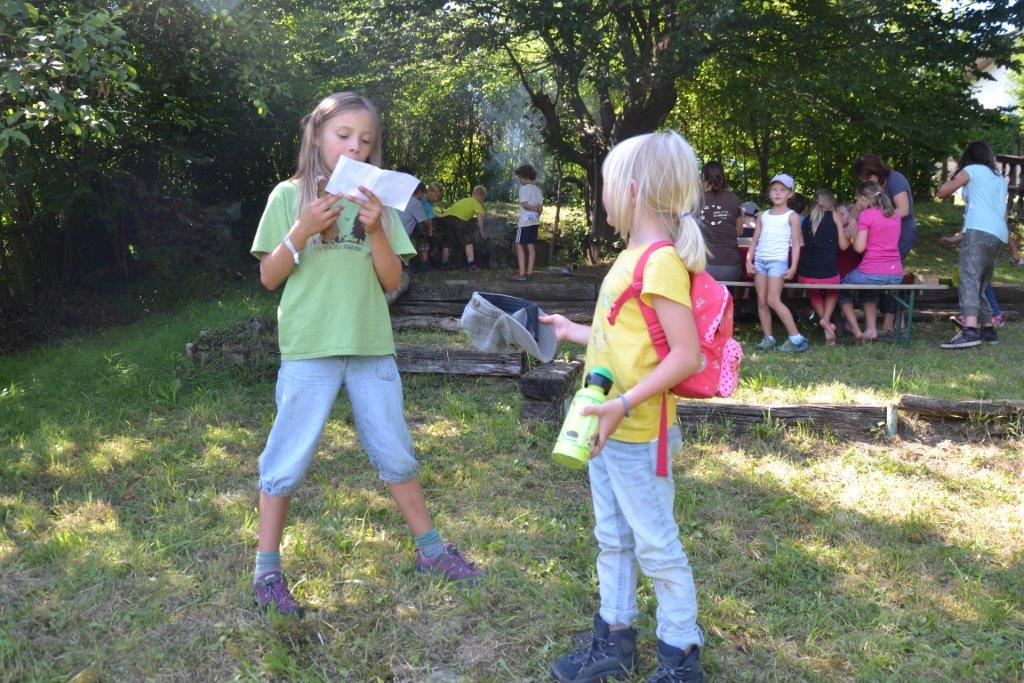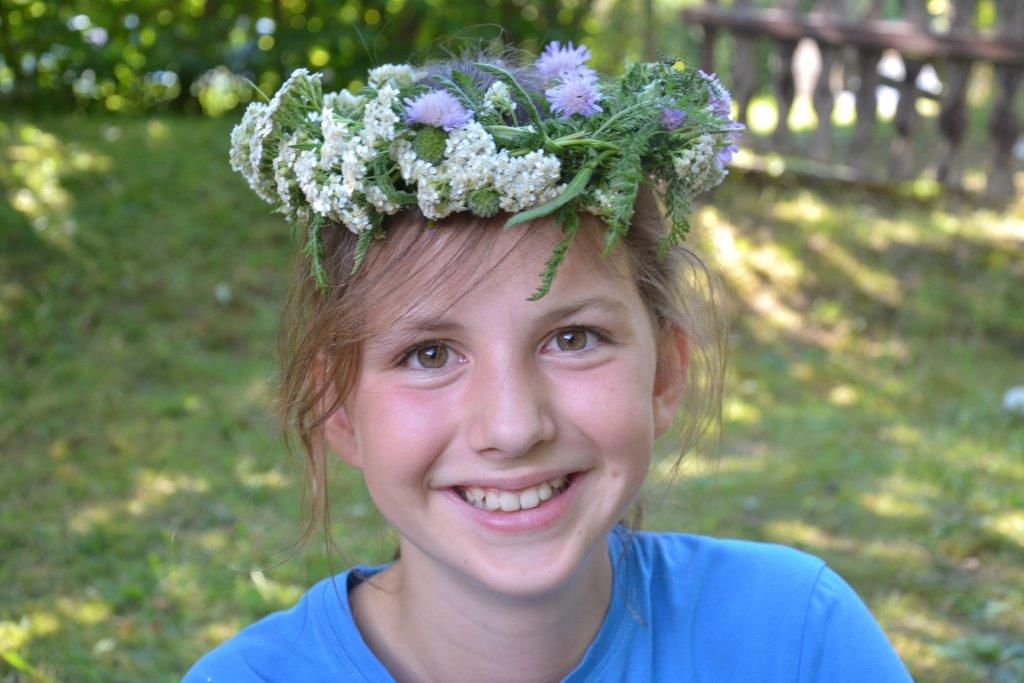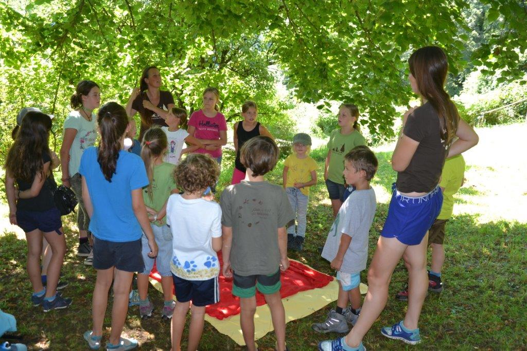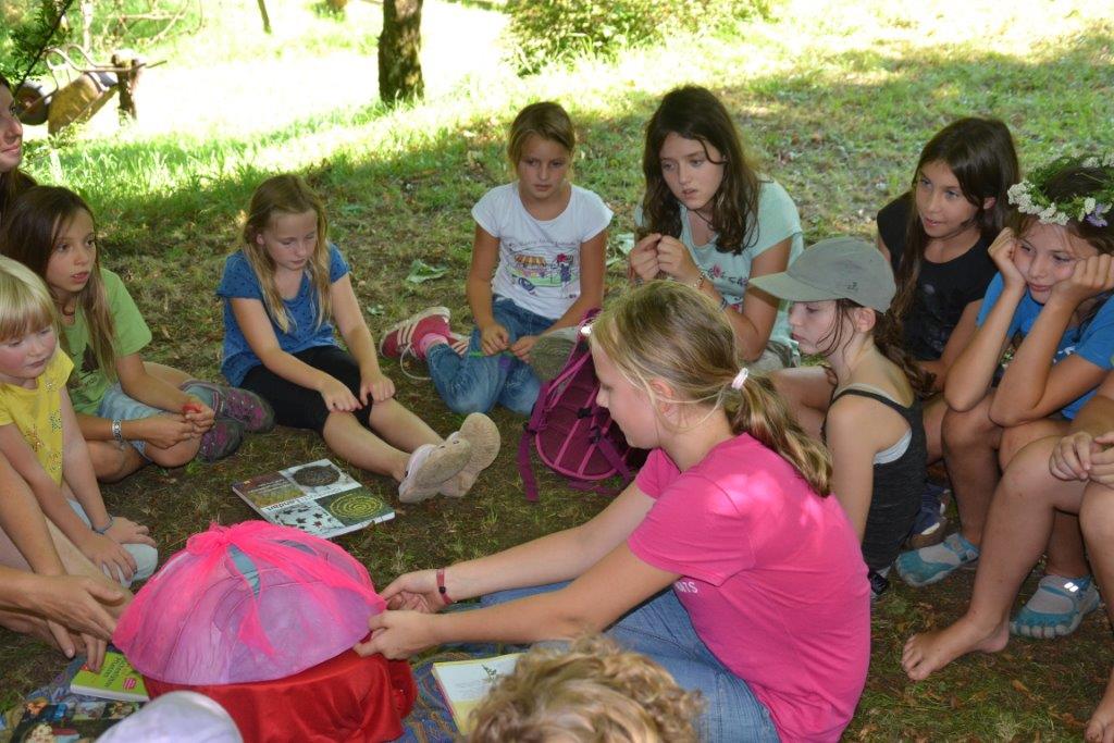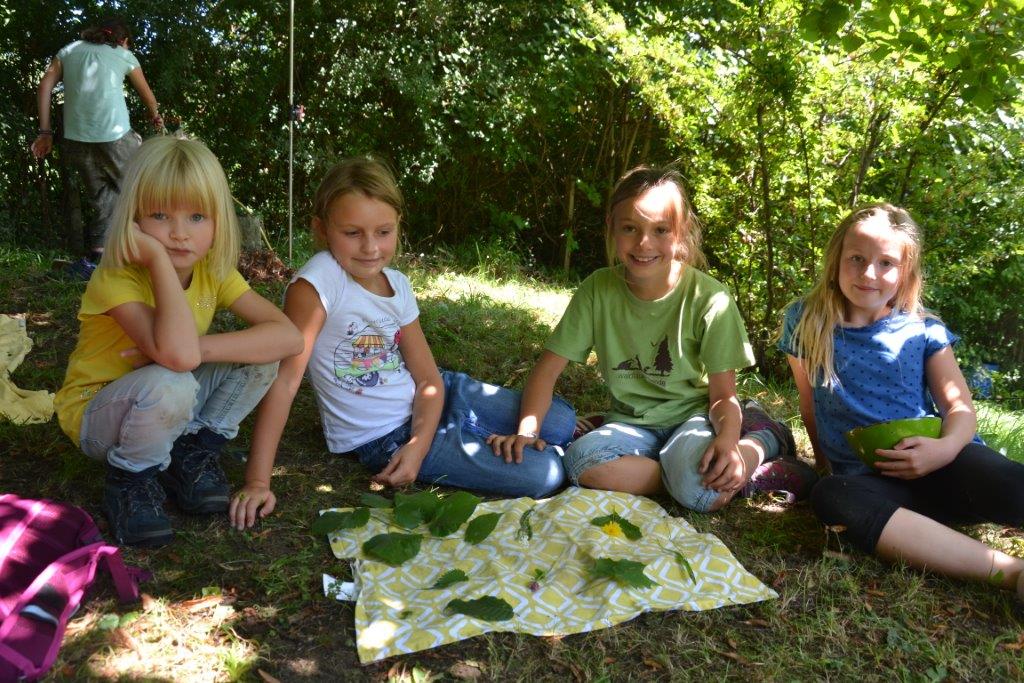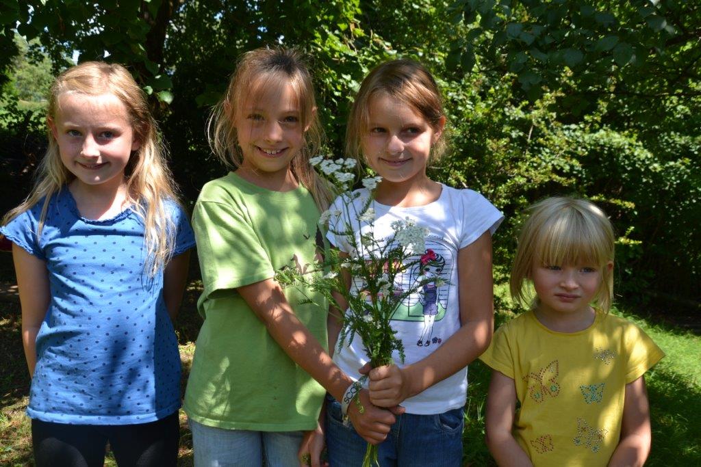 Nach einigen lustigen Teambildungsspielen erzählte Uli das Kräutermärchen von der Schafgarbe und die Kinder machten sich sogleich auf die Suche nach diesem besonderen Heilkraut. Gemeinsam wurden auf spielerische Weise Kräuter gesammelt und zu einer schmackhaften Kräutersuppe und einem Kräutertopfen verarbeitet. Einige Mädchen stellten bezaubernde Blumenkränze her und was letztendlich drin war, im Zauberkessel - dieses Geheimnis lüfteten die Kinder letztendlich selbst in der Abschlussrunde. Pssst, mehr wird nicht verraten ...