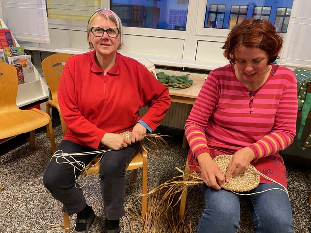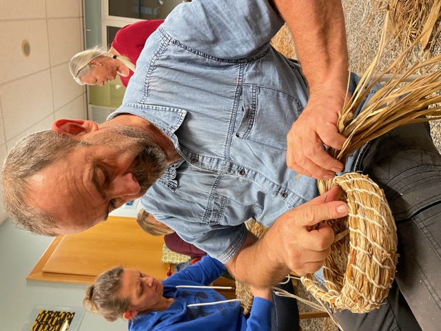 Vierzehn interessierte Teilnehmer/innen fanden sich am Samstag Nachmittag zum gemeinsamen handwerkeln. An einem Nachmittag fertigte jeder seinen eigenen Korb.