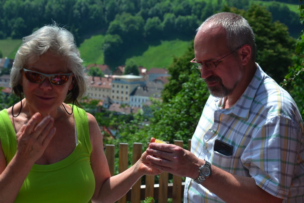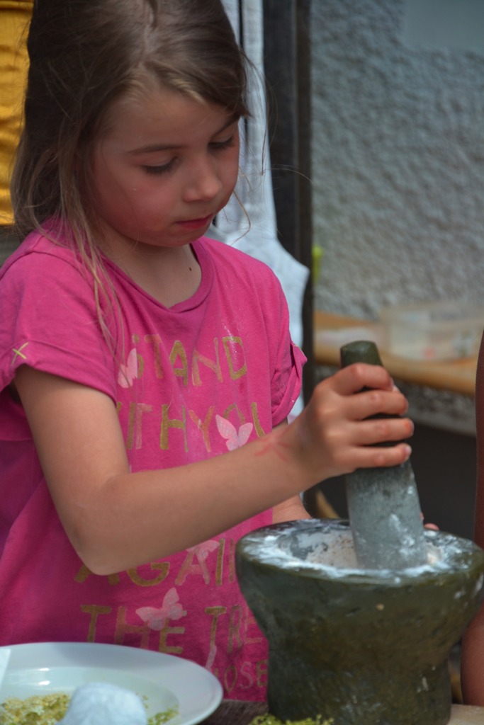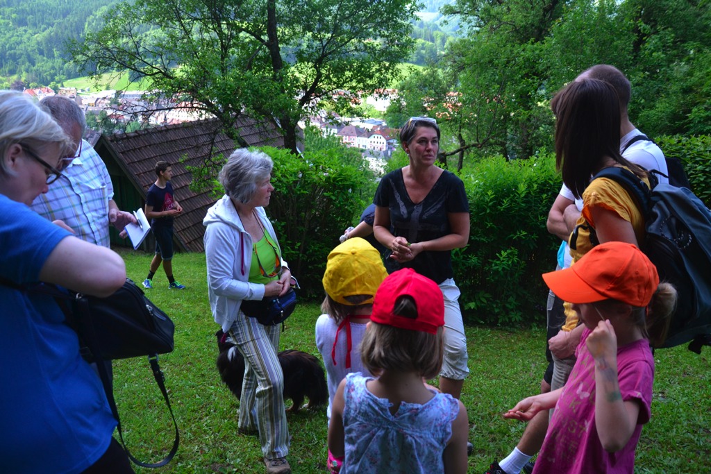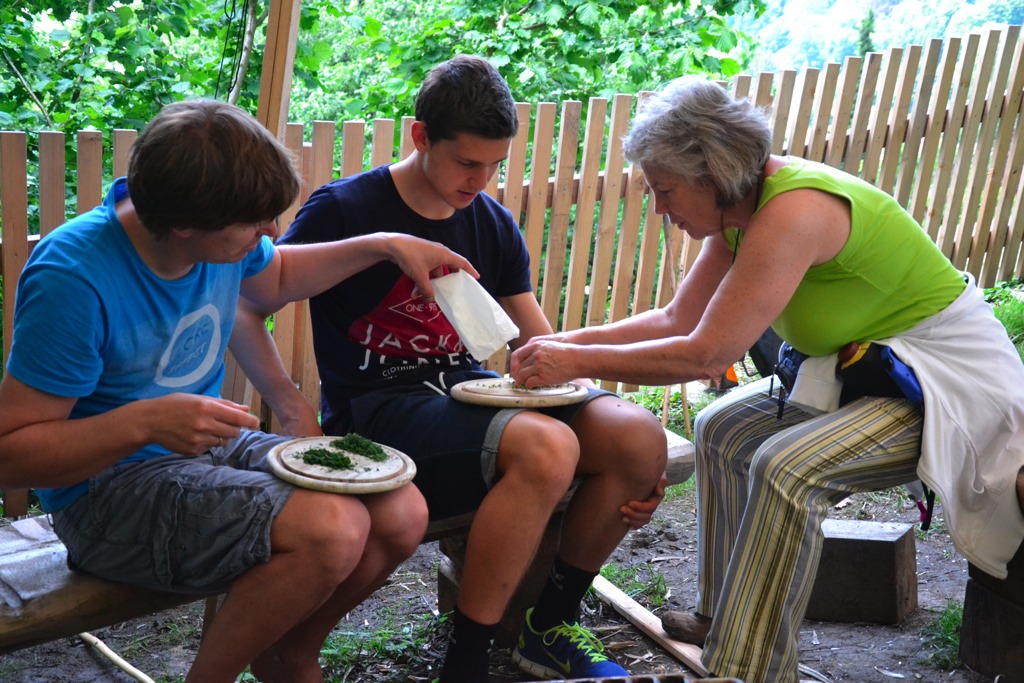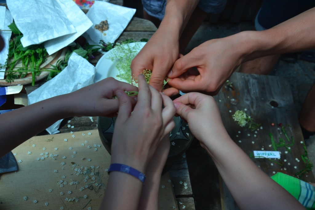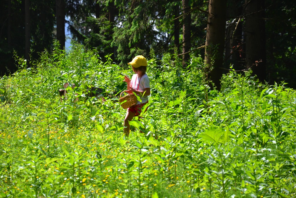 Manuela Hüttenbrenner führte durch den Vormittag und stellte auf achtsame und informative Weise unsere heimischen Kräuter vor. Bei einer Rundwanderung vermittelte sie sowohl Erwachsenen als auch Kindern Wissenswertes über unsere Pflanzenfreude, deren Heilwirkung, Zubereitungsmöglichkeit und Besonderheit. Die gesammelten Pflanzen wurde anschließend gemeinsam verarbeitet: so wurde eine Verreibung hergestellt und ein Fichtenwipferlsaft angesetzt. Beim Verkosten des köstlichen Kräutertopfens klang die Veranstaltung bei herrlichem Wetter gesellig aus.