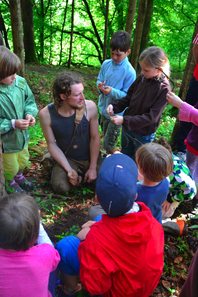 Am 6.und 8. Mai besuchte der Natur- und Wildnisexperte die Kinder der beiden Waldläuferbanden und teilte mit ihnen seine Erfahrungen. Am 7. Mai fand unter seiner Leitung eine Einzelaktivität unter dem Motto „Ruf der Wildnis - Abenteuer im Wald“ statt. Neben Wahrnehmungsspielen und kooperativen Aktivitäten zeigte er den Kindern, wie man aus Pflanzenfasern und Tierhäuten Schnüre herstellt. Unter anderem übten sich die Waldläufer bei der Bestimmung eines Greifvogels und lernten essbare Pflanzen und Kräuter des Waldes kennen.
