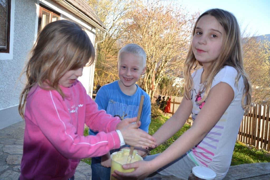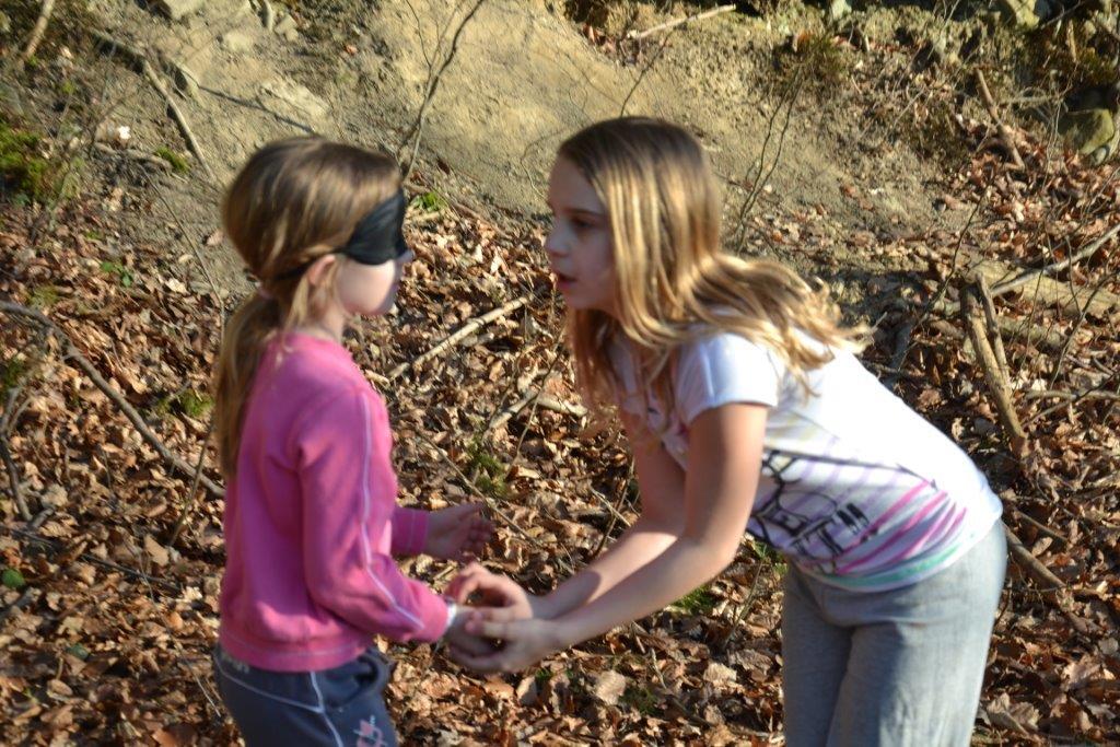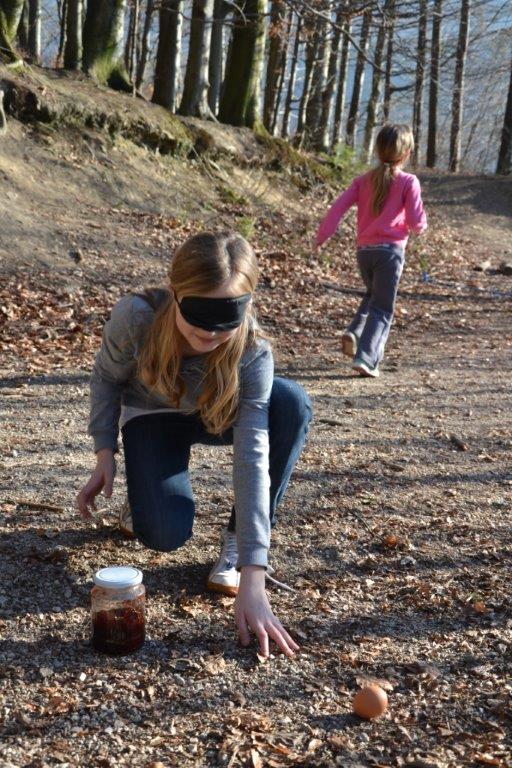 Nix wie raus! so lautete das Motto unserer monatlichen Einzelaktivität im März . Bei Wahrnehmungs- und Versteckspielen begrüßten die Kinder den Frühling und erprobten so ihre Geschicklichkeit und ihren Teamgeist. Während einige Kinder blind die Zutaten für Palatschinken im Wald unter der Anleitung eines sehenden Partners suchten , machten andere beim Haus Feuer ohne Streichhölzer. Anschließend wurden am offenen Feuer Palatschinken zubereitet und natürlich auch verkostet!