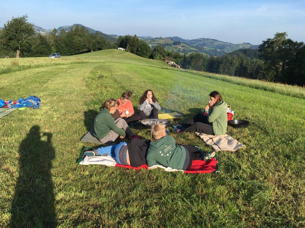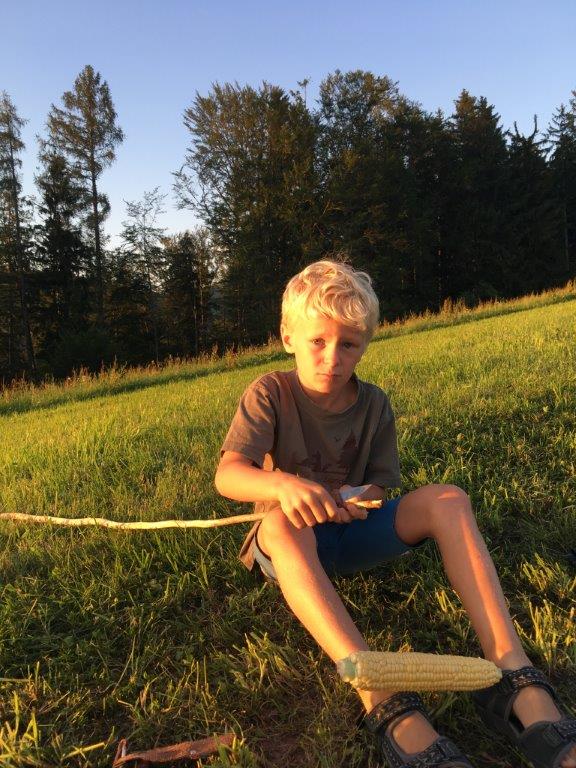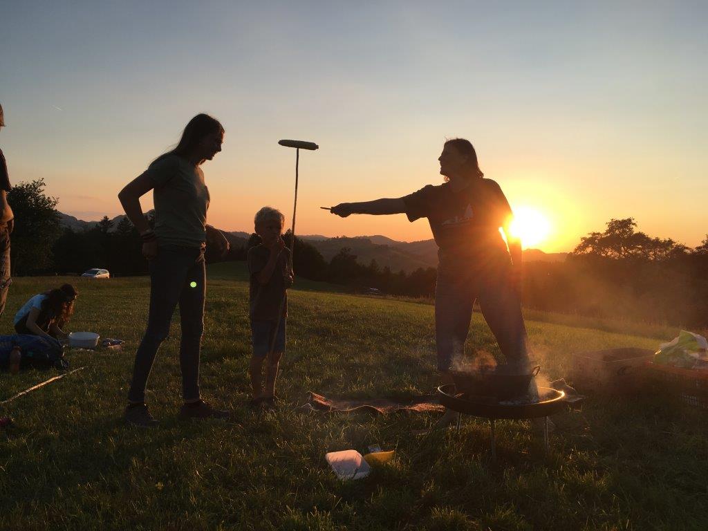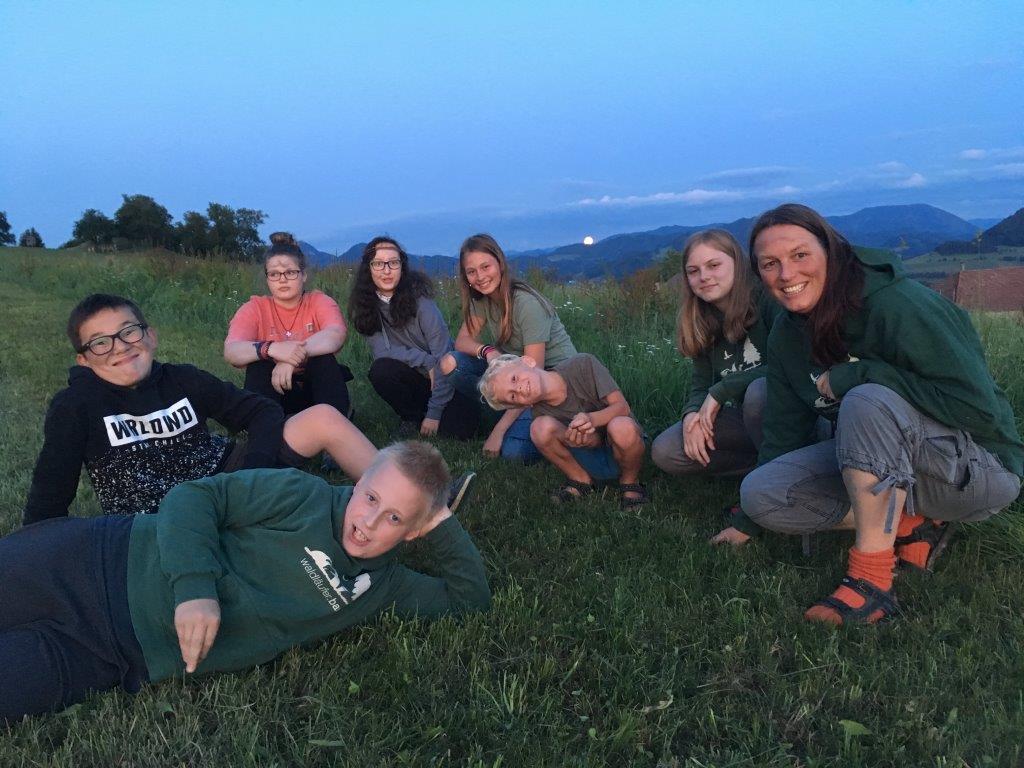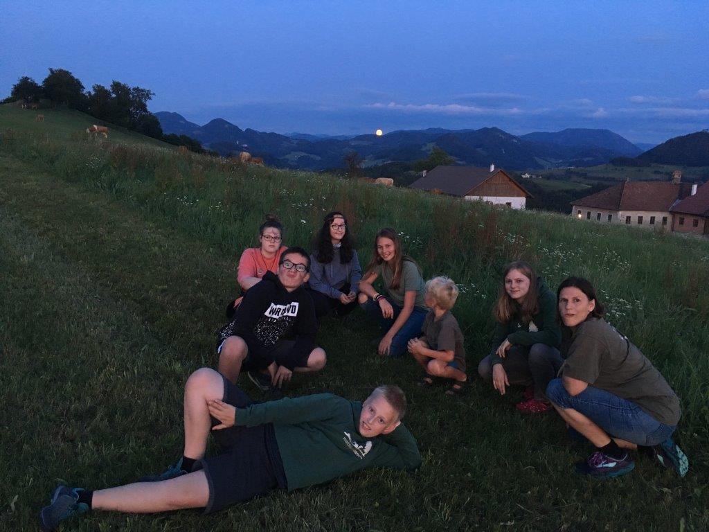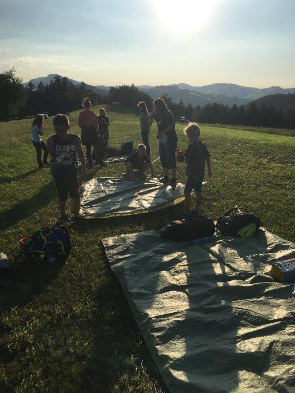 Am 16.7. war es soweit und 7 Kinder und 2 Erwachsene trafen sich zur Übernachtung unter freiem Himmel. Das Wetter hatten wir auch diesesmal auf unserer Seite. Nach einem wunderschönen Sonnenuntergang ging gefühlt kurze Zeit später der Vollmond am Horizont auf. Manche Kinder konnten schon im vorhinein relativ gut einschätzen, wo er am Horizont erscheinen wird. Um das zu wissen, braucht es schon etwas Erfahrung über die großen Kreisläufe der Natur!