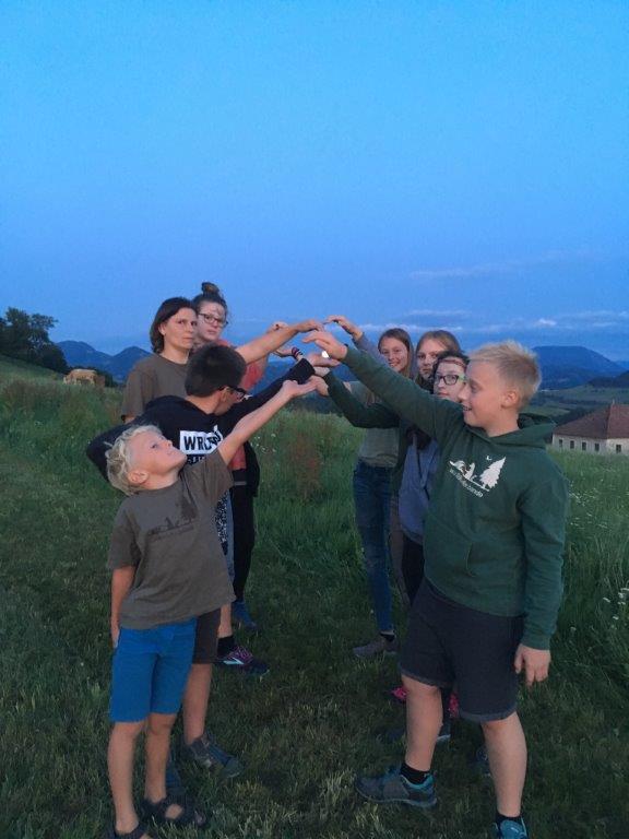 Ein weiteres Spektakel bot sich uns, als die partielle Mondfinsternis seinen Verlauf nahm. Auch der erste Stern am Nachthimmel leuchtete hell und ja, wer von euch weiß noch wie der heißt? Das war ja gar kein Stern - sondern ein Planet!Später konnten wir so manche Sternschnuppe sehen, den großen Wagen finden und somit auch den Polarstern und den großen Bären. Die Milchstraße zeigte sich und unter einem Sternenmeer sind wir dann müde und glücklich eingeschlafen. Spielen, kochen, am Lagerfeuer Witze erzählen und zusammenrücken wenns kalt wird, das gehört auch zu einer Nacht im Freien. Ein großen Dank gilt auch jenem Menschen, der uns sein Grundstück wieder zur Verfügung gestellt hat und dieses schöne Erlebnis erst ermöglicht hat! Vielen Dank Alois!!