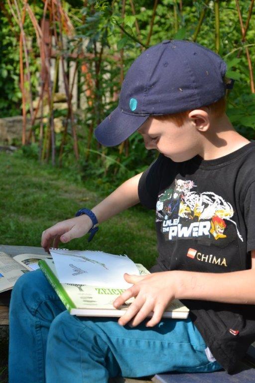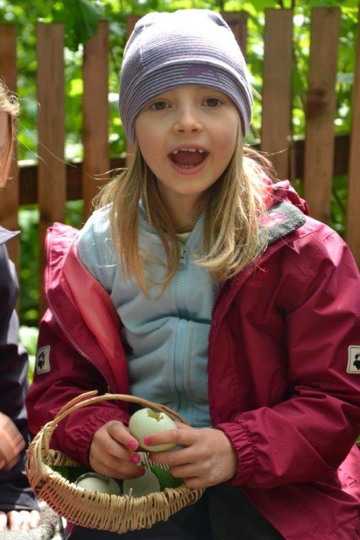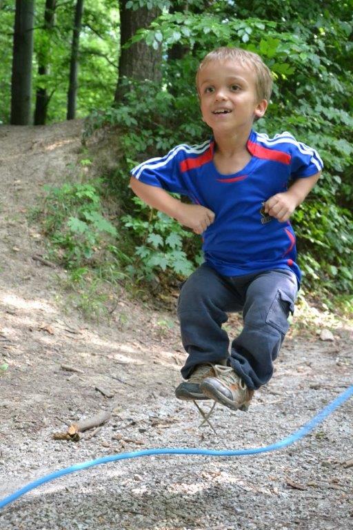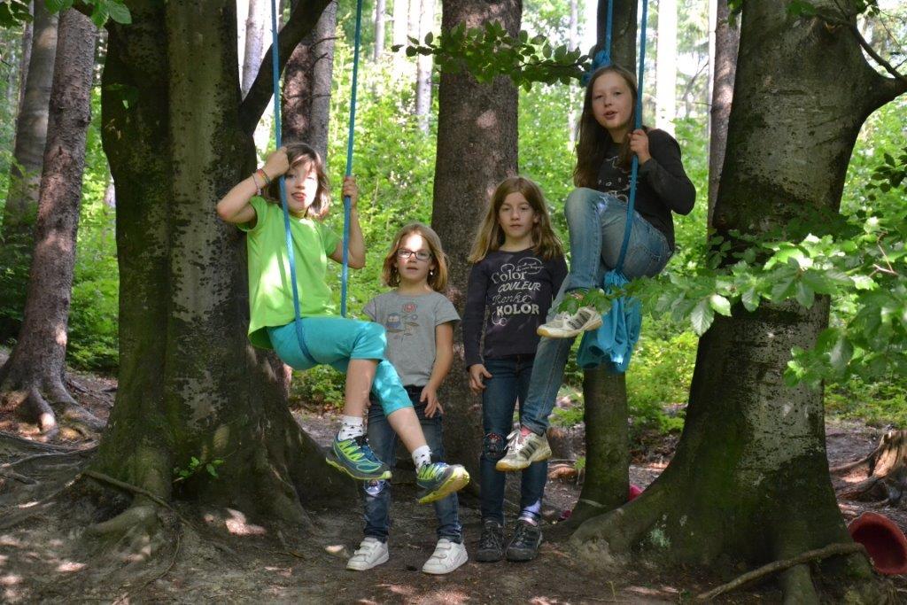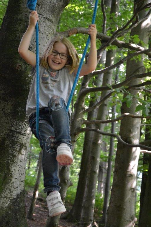 Wir waren durchgehend am Eckholz unterwegs und am liebsten streunten die Kinder im Wald umher, kletterten auf Bäume, machten es sich dort gemütlich und plauderten... Manche bauten sich geheime Lager, andere spielten Rollenspiele – möglichst unbeobachtet von den anderen. Besondere Freude hatten die Füchse beim Seilspringen und so mancher toppte seinen persönlichen Rekord (Moritz: da sag` ich nur 123!). Das Seil wurde aber nicht nur zum Springen genutzt, sondern auch zum Schwingen und Schaukeln verwendet. Neben gemeinsamen Spielen, wie zum Beispiel der Puzzlerallye gab es auch Geschichten zu hören, wir haben gesungen, gemeinsam Rätsel gelöst und machten so manchen spannenden Fund in der Natur. Jannik hat uns an einem Nachmittag mit einem speziellen “Geschenk“ überrascht: seine Katze hat einen Hausrotschwanz nach Hause gebracht – und den konnten wir genauer betrachten und bestimmen.