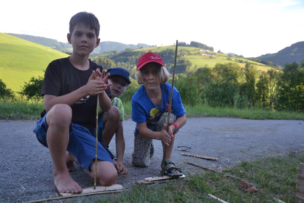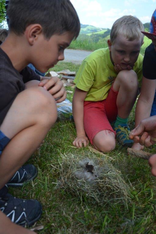 Wer der Einladung des Vereins „spür.sinn – Abenteuer Lernen und Naturverbindung“ vergangenes Wochenende gefolgt ist, konnte erleben, wie man das Element Feuer auf ursprüngliche Art und Weise entfachen kann. Christian Prager, er selbst hat mehreren Kurse in Natur- und Wildnisschulen im In- und Ausland besucht, führte durch den Nachmittag. Er zeigte den Kindern auf eindrucksvolle Weise, wie man mit dem Hand- und dem Bogendrill – den beiden ältesten Formen des Feuermachens - ein Feuer ohne Streichhölzer entfachen kann. Die Kinder hatten im Anschluss die Möglichkeit ihr eigenes Feuer zu entzünden und zu hüten. Hierbei waren nur drei Streichhölzer erlaubt, was gar keine einfache Aufgabe war. Während sich manche mit dem Handdrill versuchten, wurde am offenen Feuer gekocht und letztendlich konnten die Kinder ihre selbstgemachte Pizza Calzone und den Schokoladenkuchen im Dutch Oven verkosten. Herzlichen Dank an die Familie Wagner aus St. Georgen/Klaus, die für diesen Nachmittag einen geeigneten Platz zur Verfügung stellte.