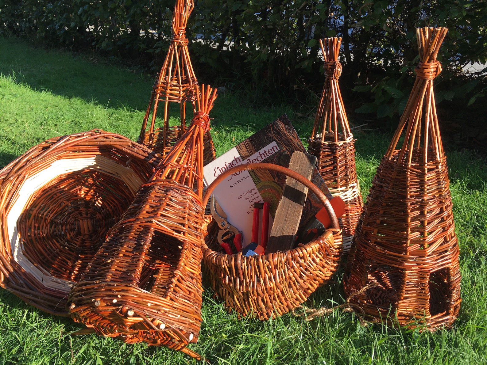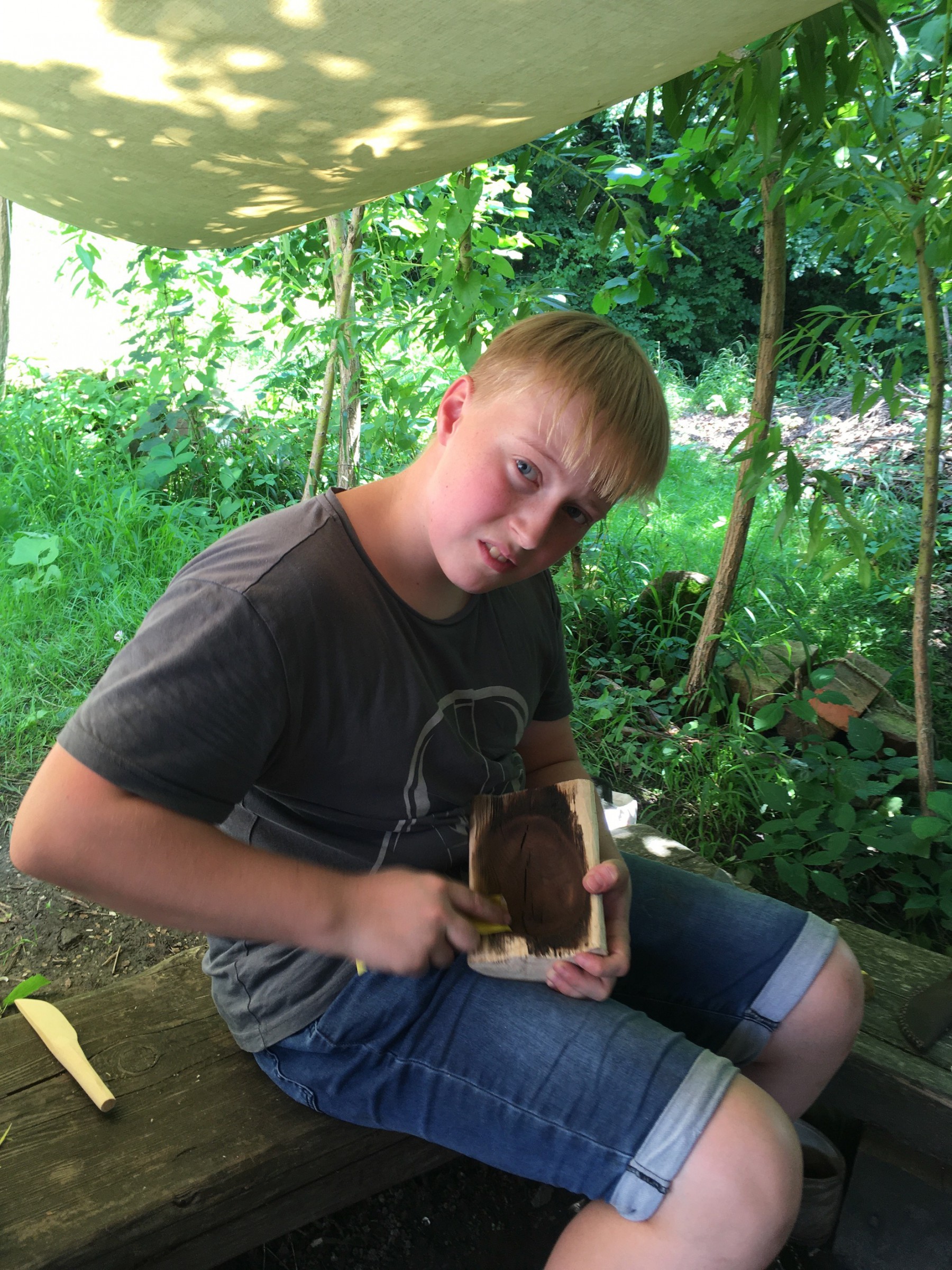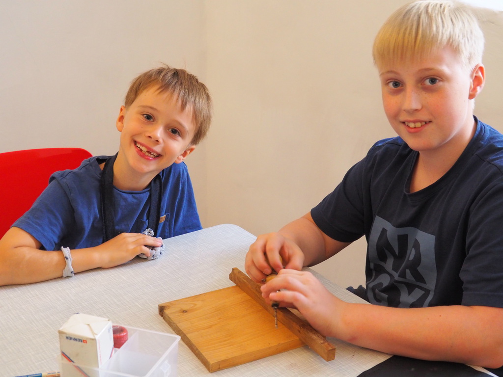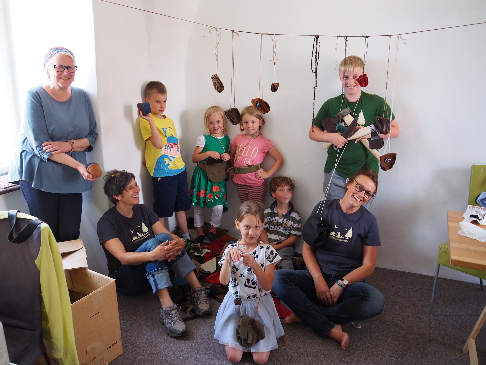 An einigen Tagen wurde das Nähen mit der Nähmaschine gelernt und selbst gemachtes Nützliches hergestellt. Anders als sonst im Winter wurde heuer im Sommer das Handwerk des Korbflechtens gezeigt und aus heimischen, getrockneten Weidenruten schöne, dekorative Vogelhäuschen gefertigt. Aus alten Textilien wurden "Tawashis" (Waschlappen, Schwämme, Topflappen) gewebt, Viola und Hannah zeigten einfache Techniken zum Buchbinden, Elsabeth und Luca leiteten eine Schnitzstube am Eckholz. Tobias unterstützte die Lederwerkstatt wo ebenso erstaunlich Kreatives herstellt wurde: ein schön verziehrter Köcher, Lederbeutel in den unterschiedlichsten Größen, Gürtel, Messerhalter, ... sind von Hand genährt worden.