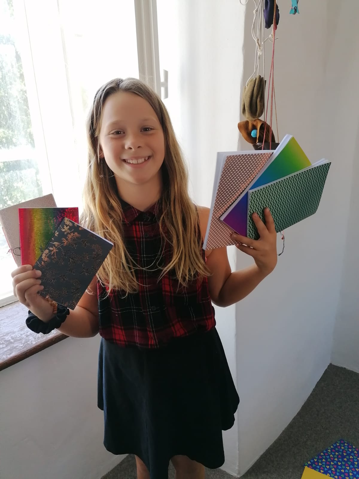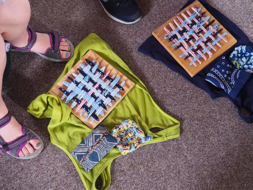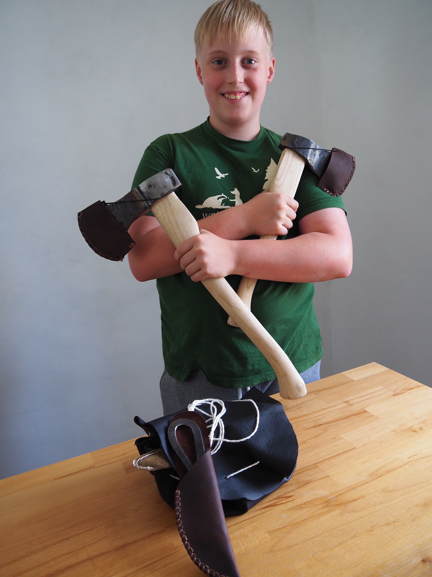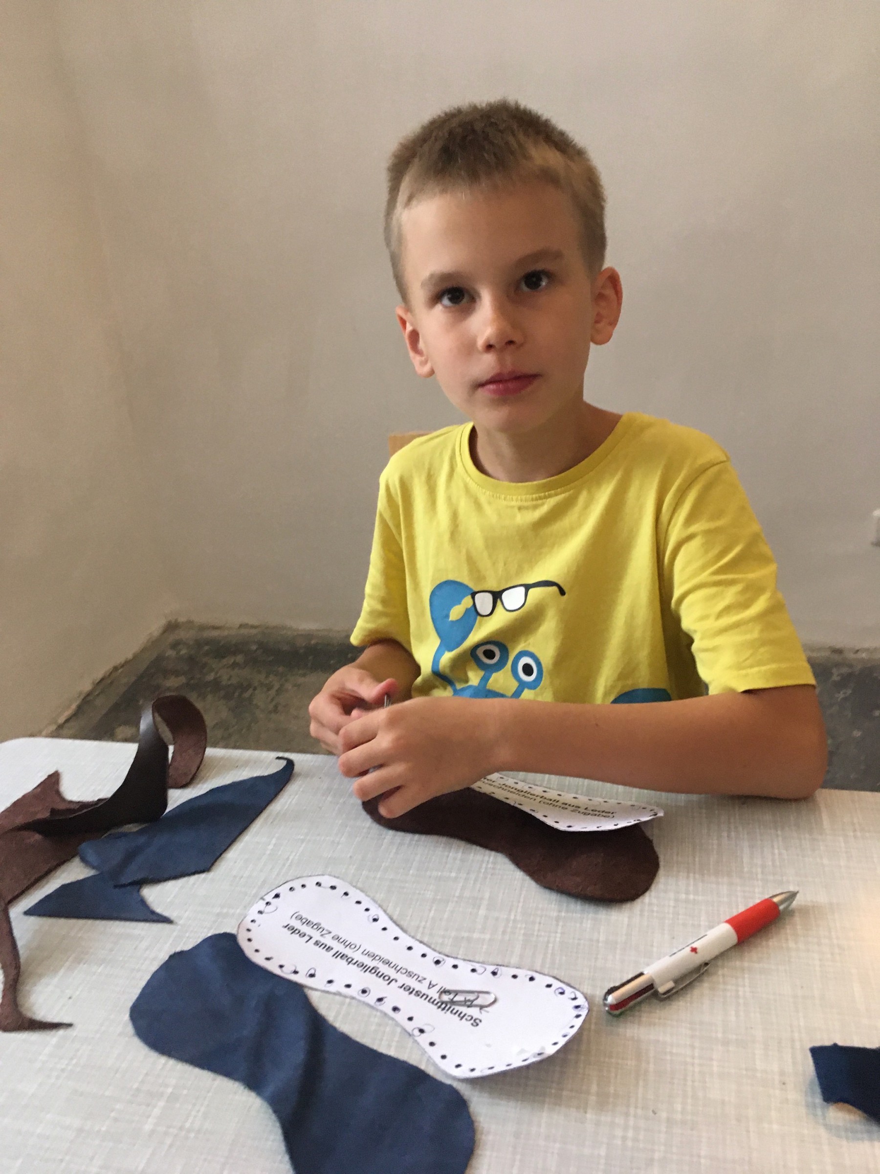 An einigen Tagen wurde das Nähen mit der Nähmaschine gelernt und selbst gemachtes Nützliches hergestellt. Anders als sonst im Winter wurde heuer im Sommer das Handwerk des Korbflechtens gezeigt und aus heimischen, getrockneten Weidenruten schöne, dekorative Vogelhäuschen gefertigt. Aus alten Textilien wurden "Tawashis" (Waschlappen, Schwämme, Topflappen) gewebt, Viola und Hannah zeigten einfache Techniken zum Buchbinden, Elsabeth und Luca leiteten eine Schnitzstube am Eckholz. Tobias unterstützte die Lederwerkstatt wo ebenso erstaunlich Kreatives herstellt wurde: ein schön verziehrter Köcher, Lederbeutel in den unterschiedlichsten Größen, Gürtel, Messerhalter, ... sind von Hand genährt worden.