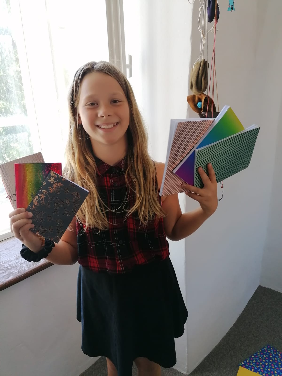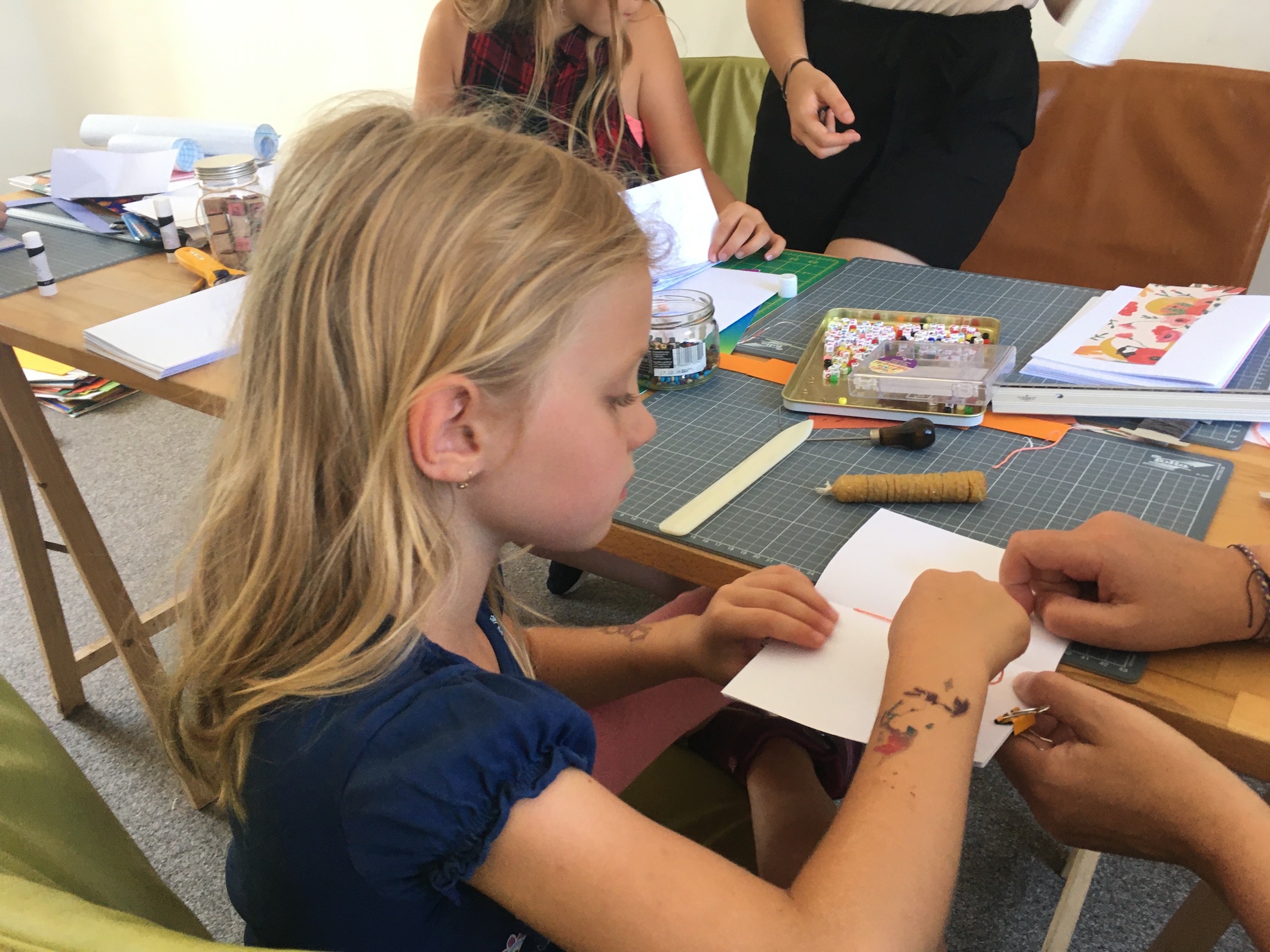 An zwei Tagen leiteten VIola und Hannah die spür.sinn Werkstatt Kreativ und zeigten verschiedene Techniken des Buchbindens. Aus verschienensten Papieren wurden ganz individuelle Hefte und Blöcke gefertigt. Auch an diesem Workshop stand das Selbermachen im Vordergrund, das Gestalten und nicht zuletzt der Stolz über die fertigen Bücher.