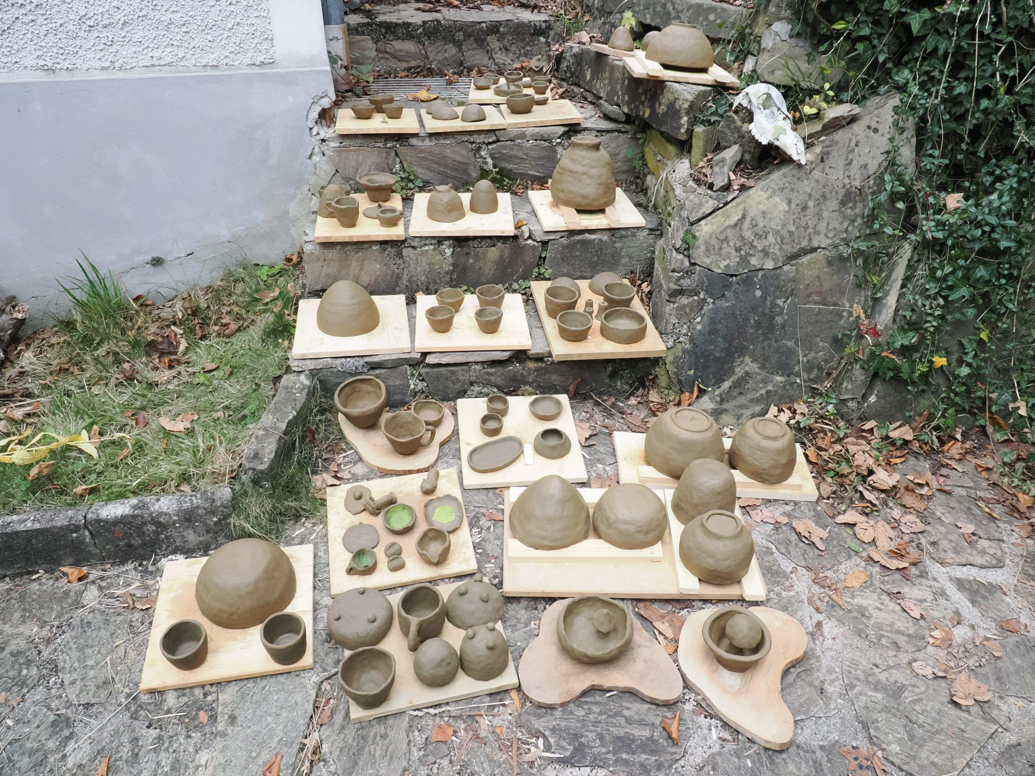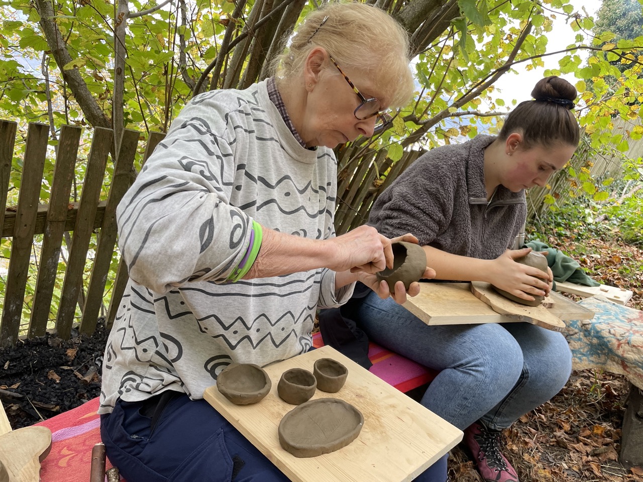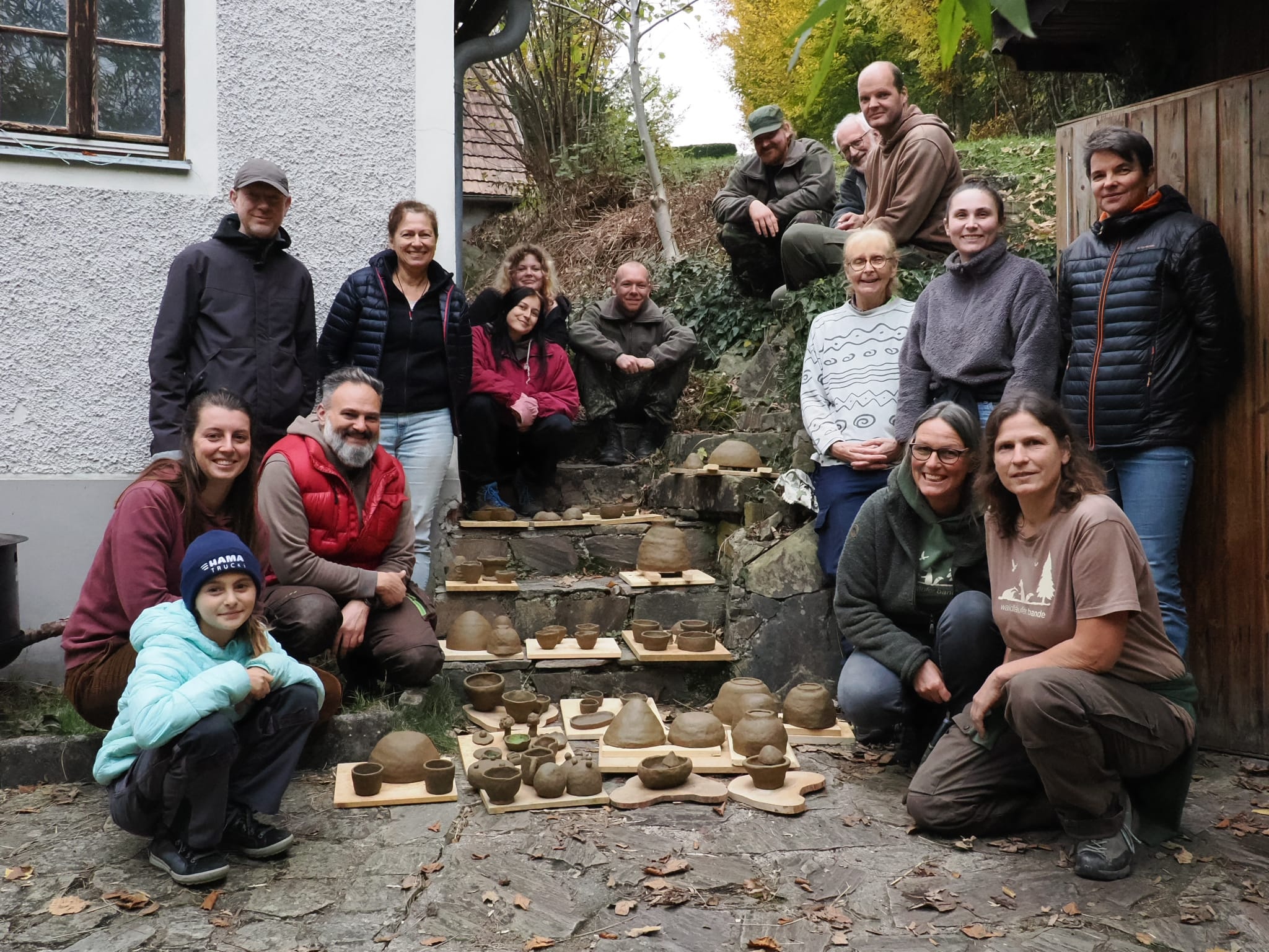 Letztes Wochenende wurden Gefäße geformt, Ton und Lehm in der Umgebung gesucht, gefunden, gereinigt und aufbereitet, so dass das Material weiter verarbeitet werden kann. Dieses Wochenende wird der Ton gebrannt und gehofft, dass viele Werkstücke nach dem Prozess im Feuer unbeschadet und ganz bleiben. Mal schauen!!