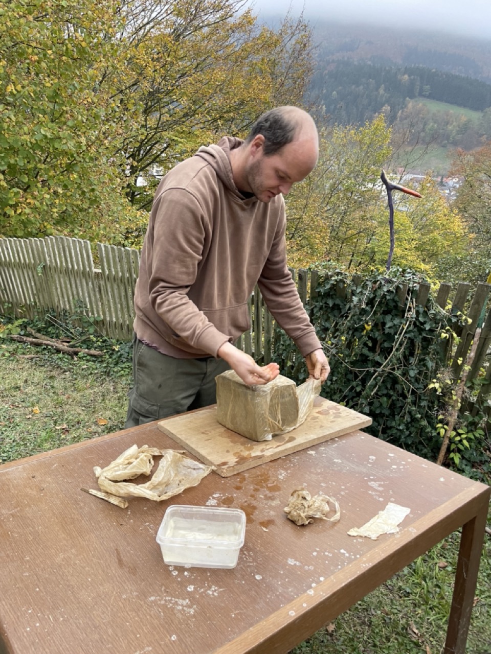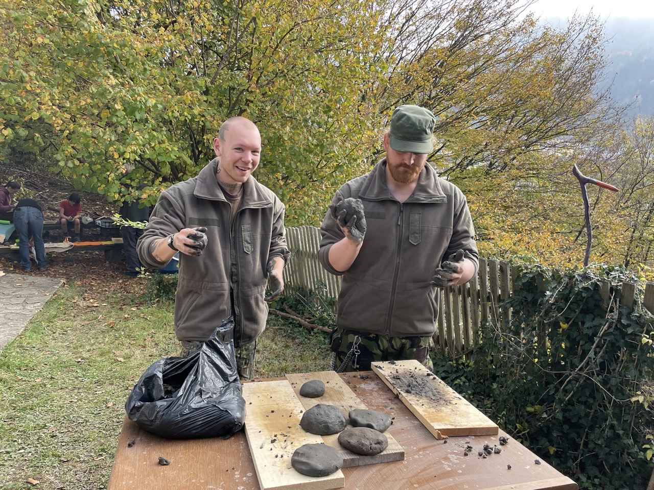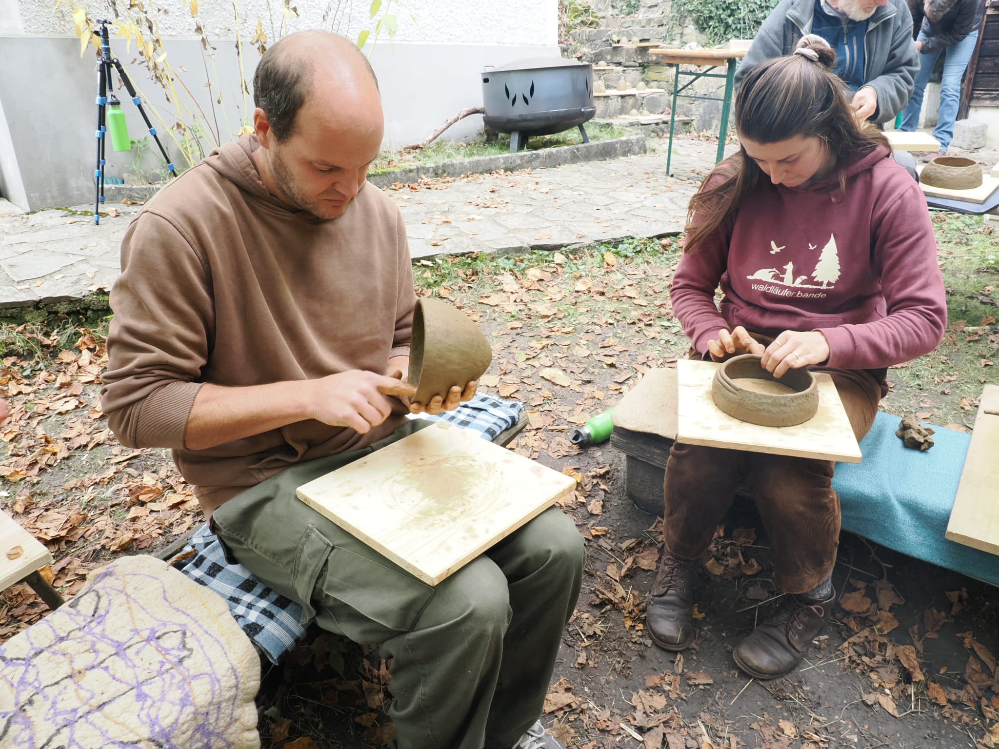 Letztes Wochenende wurden Gefäße geformt, Ton und Lehm in der Umgebung gesucht, gefunden, gereinigt und aufbereitet, so dass das Material weiter verarbeitet werden kann. Dieses Wochenende wird der Ton gebrannt und gehofft, dass viele Werkstücke nach dem Prozess im Feuer unbeschadet und ganz bleiben. Mal schauen!!