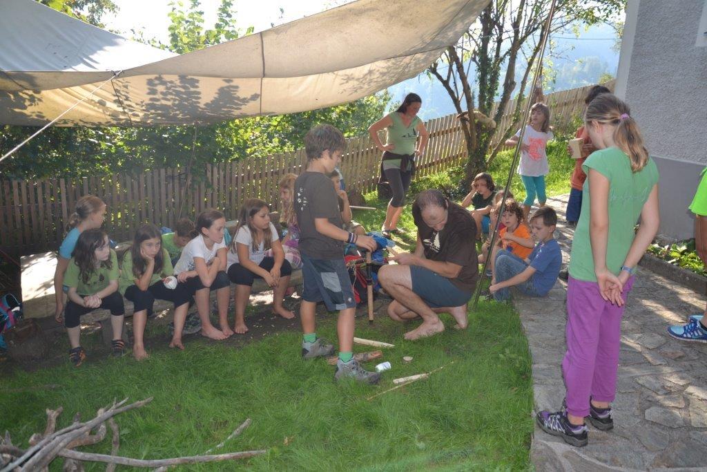 Weiters wurden Blasrohre und Kugelschreiber aus Holler hergestellt. Die Hollerstöcke gabs aber nicht umsonst, die Kinder konnten sie durch gewisse Dinge aus dem Wald eintauschen. Weiters wurde am Feuer gekocht (z.B Kürbisschnitzel, Hollerröster und Popcorn) und Geschichten über heimische Kräuter wie die Königskerze, den Salbei oder den Holler erzählt. Die beliebten Spiele wie Räuber und Gendarm, Kuhschwanz, Schleichspiele und Adlerauge durften nicht fehlen. Es war auch manches neue Spiel dabei, wie das Eichhörnchenspiel, wo die Kinder Dinge finden sollten, die nicht in den Wald gehörten. Sie stellten sich dabei äußerst geschickt an und einige wurden auch fündig. Auch so manches Tier konnte beobachtet werden, wie etwa Feuersalamander und Bussarde.