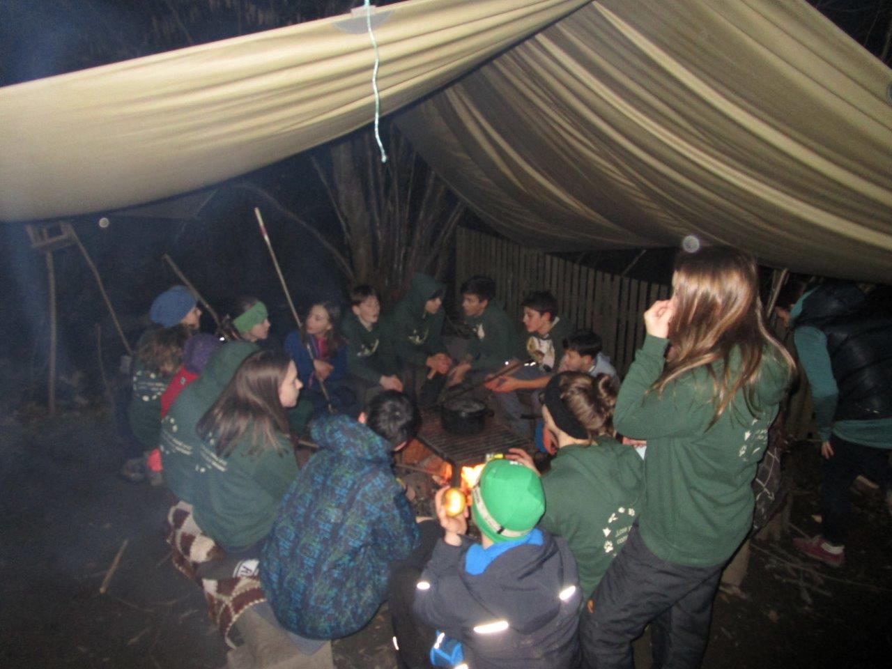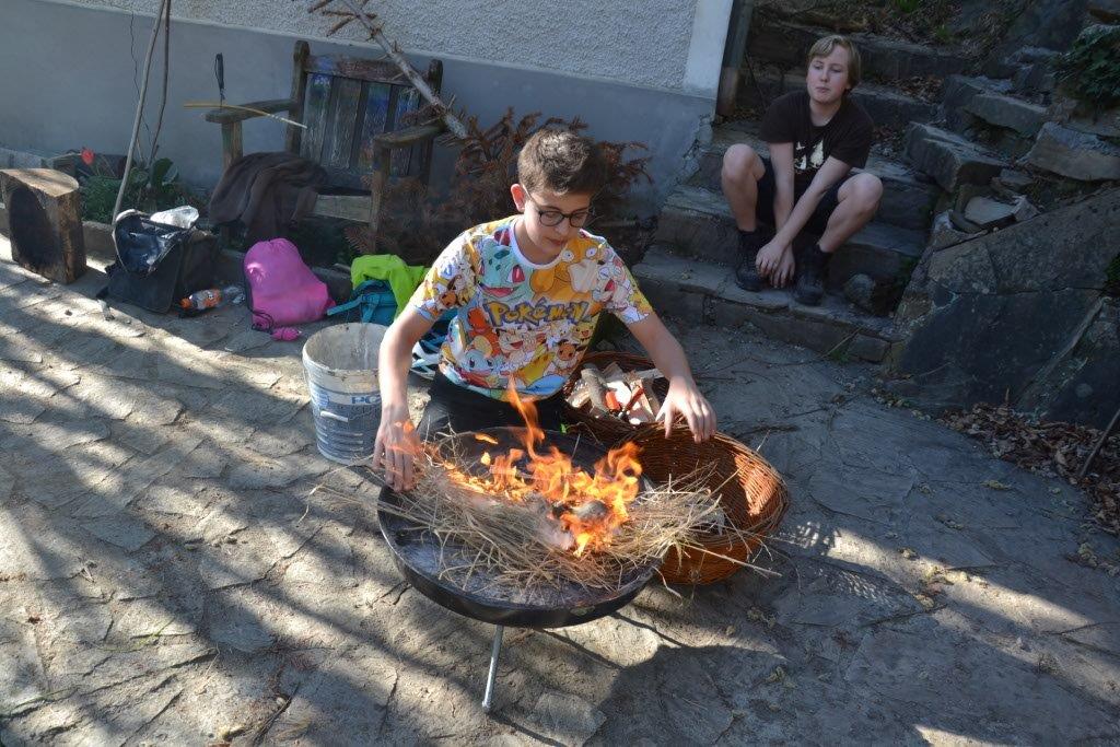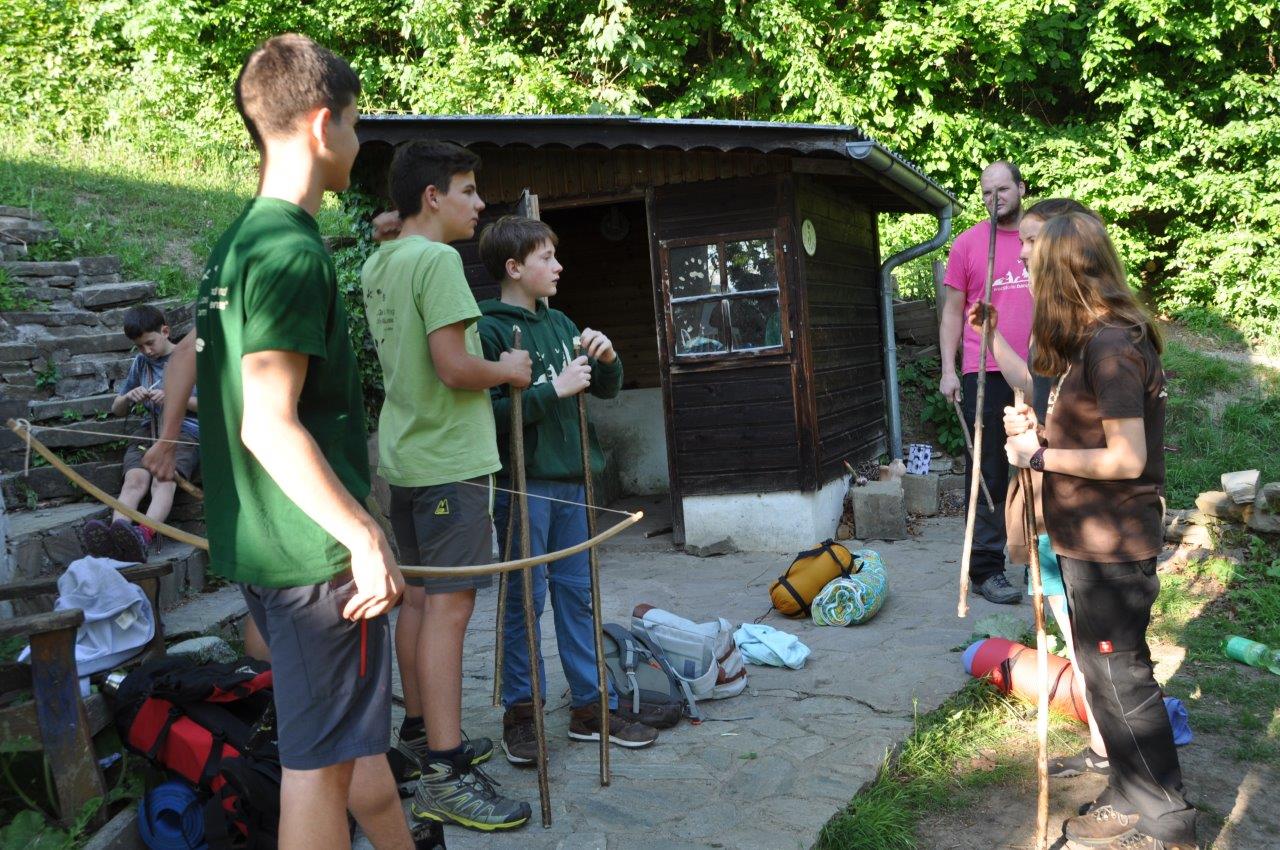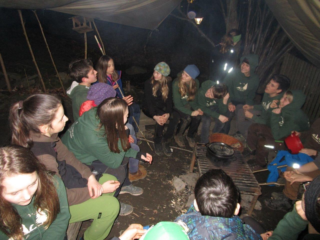 Manche Nachmittage verbrachten wir mit den Dachsen, den 10 bis 12jährigen Waldläufern in unserem Basislager am Eckholz. Gemeinsam spielten wir das beliebte Stockkampfspiel und hörten spannende Geschichten rund um Geronimo und andere Indianer.