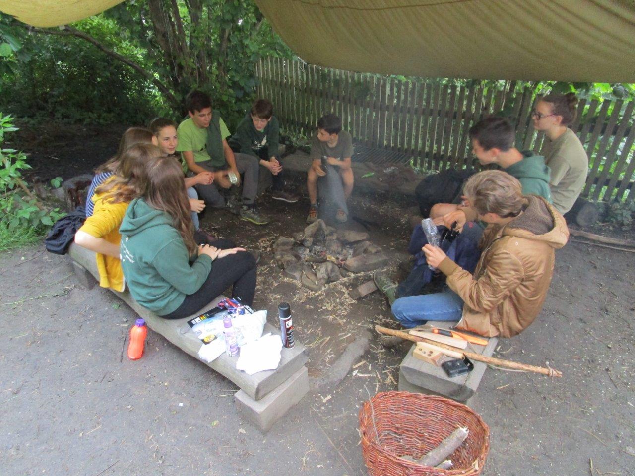 Die Falken sind eine Gruppe von 11 Jugendlichen zwischen 12 und 16 Jahren. Insgesamt trafen sie sich zehnmal in diesem Sommersemester, einer Übernachtung inklusive. Den Schlafsack haben die meisten dabei nicht gebraucht, die Nacht wurde am Feuer verbracht