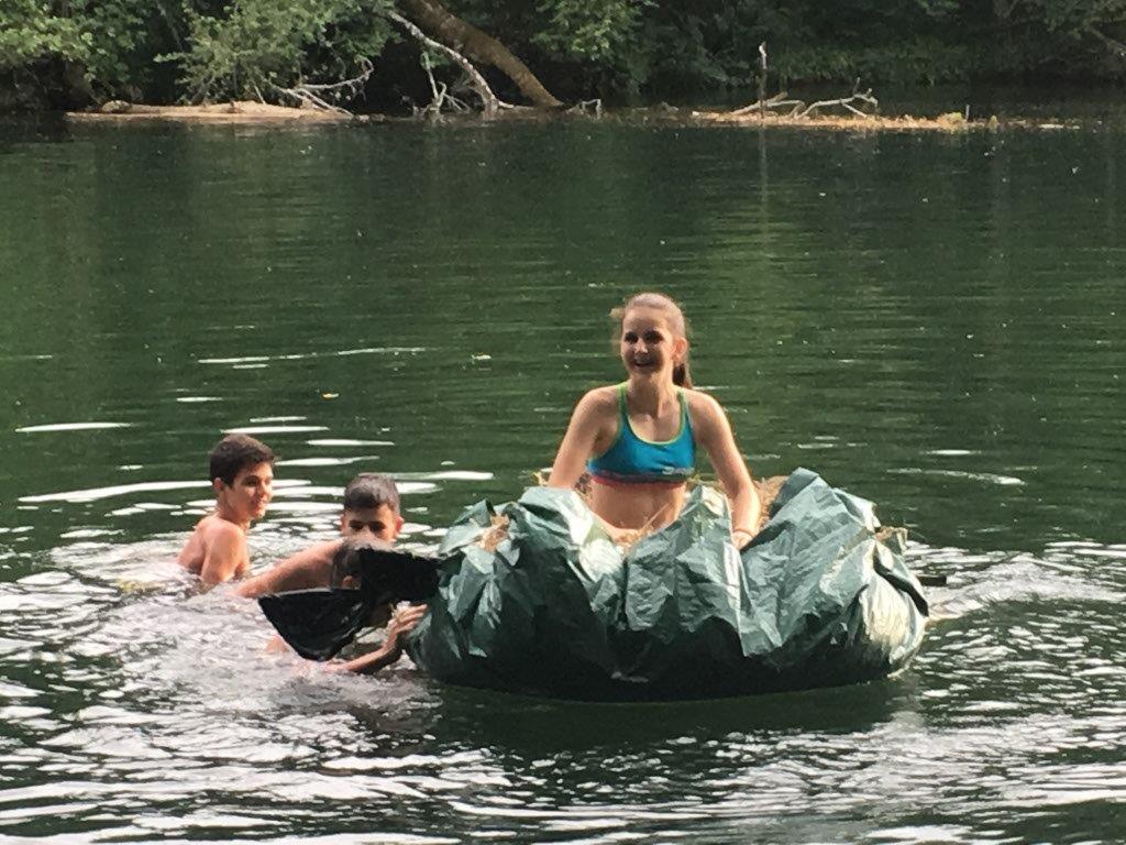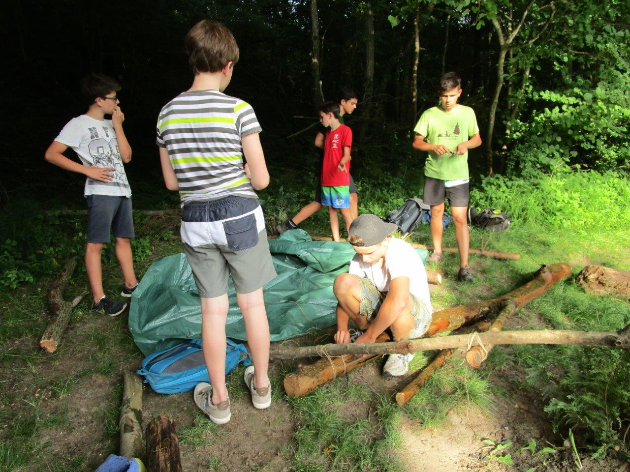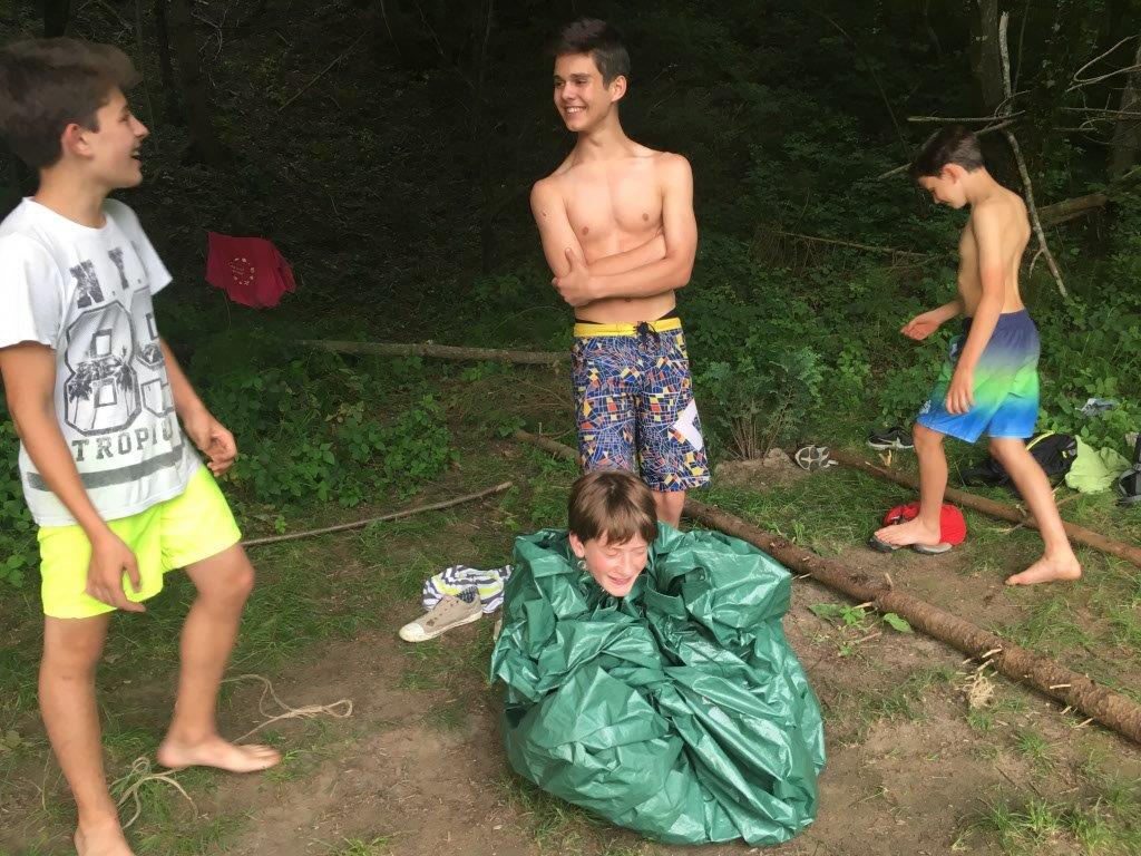 Zum Abschluss konnten die Falken noch besonders kreativ sein und zeigen, was sie die letzten Jahre gelernt haben. Sie sollten ein Boot bauen - nur mit einer Plane, einer Schnur und Dingen, die sie in der unmittelbaren Umgebung fanden. Die Auflage war, dass sie nichts verwenden dürfen, was noch wächst. Also nur „Totmaterial“. Die Ergebnisse der beiden Gruppen waren sehr unterschiedlich. Wie die Boote im Detail ausgesehen haben und ob sie wirklich geschwommen sind, bleibt ein Falkengeheimnis. ![]()
