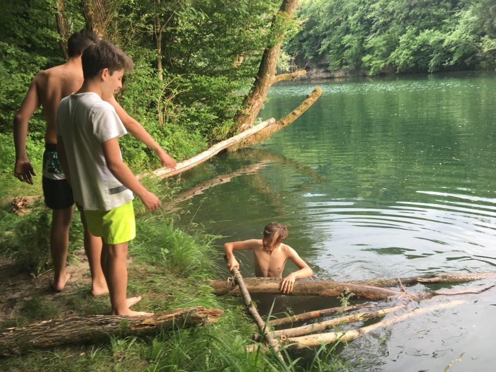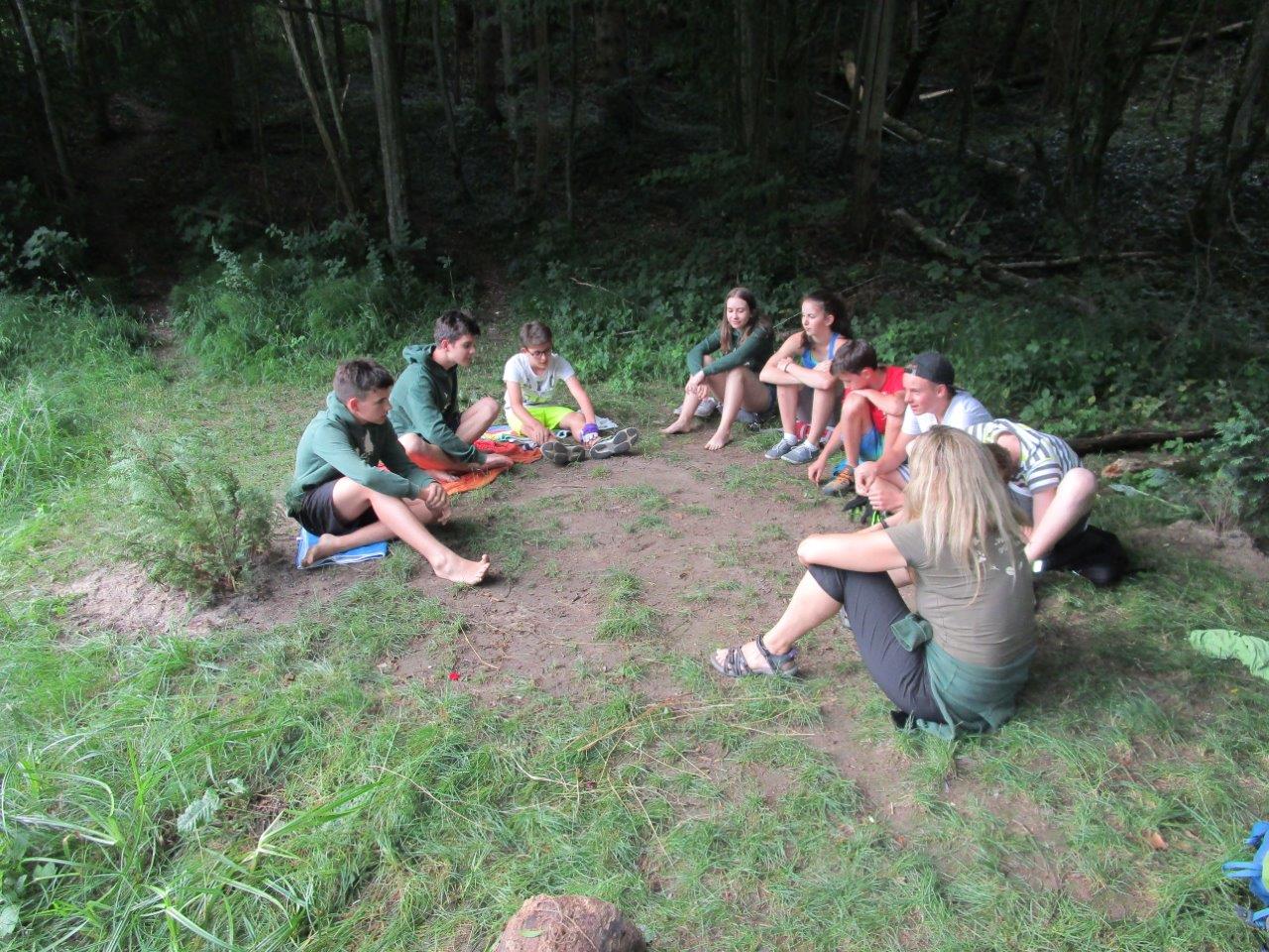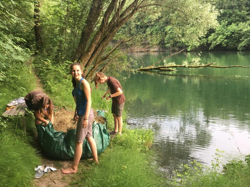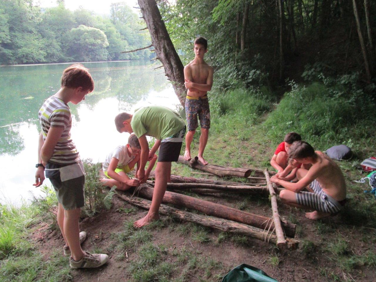 Zum Abschluss konnten die Falken noch besonders kreativ sein und zeigen, was sie die letzten Jahre gelernt haben. Sie sollten ein Boot bauen - nur mit einer Plane, einer Schnur und Dingen, die sie in der unmittelbaren Umgebung fanden. Die Auflage war, dass sie nichts verwenden dürfen, was noch wächst. Also nur „Totmaterial“. Die Ergebnisse der beiden Gruppen waren sehr unterschiedlich. Wie die Boote im Detail ausgesehen haben und ob sie wirklich geschwommen sind, bleibt ein Falkengeheimnis. ![]()