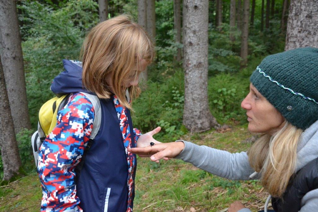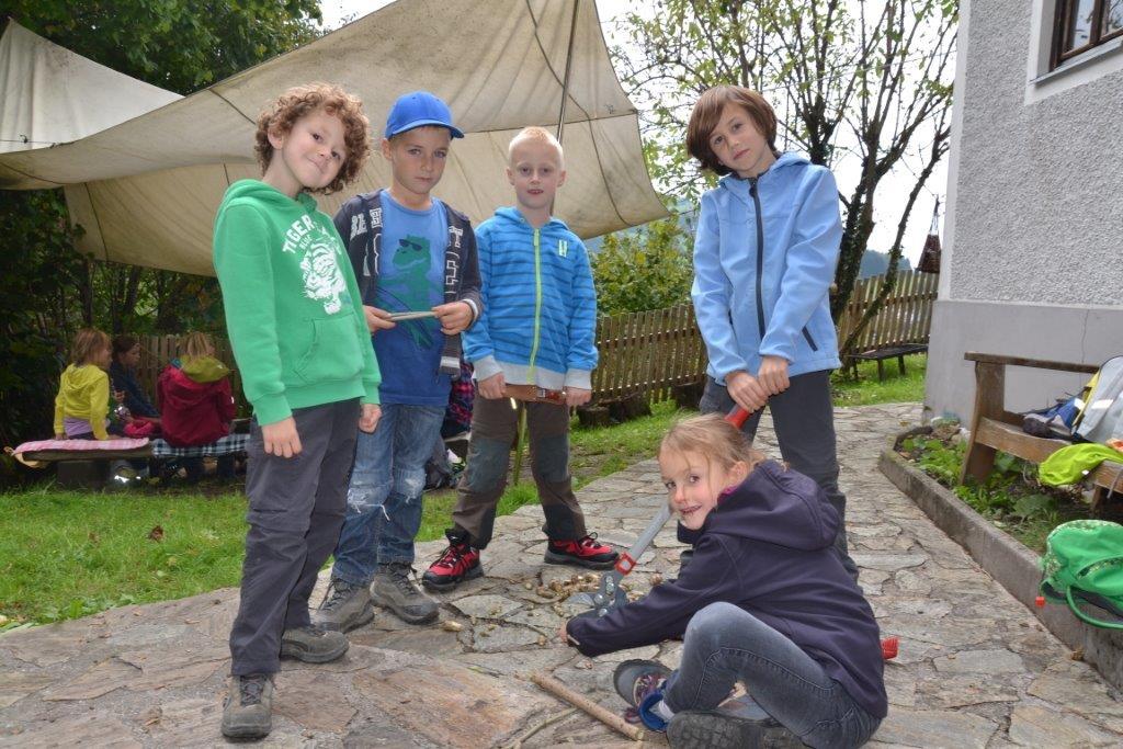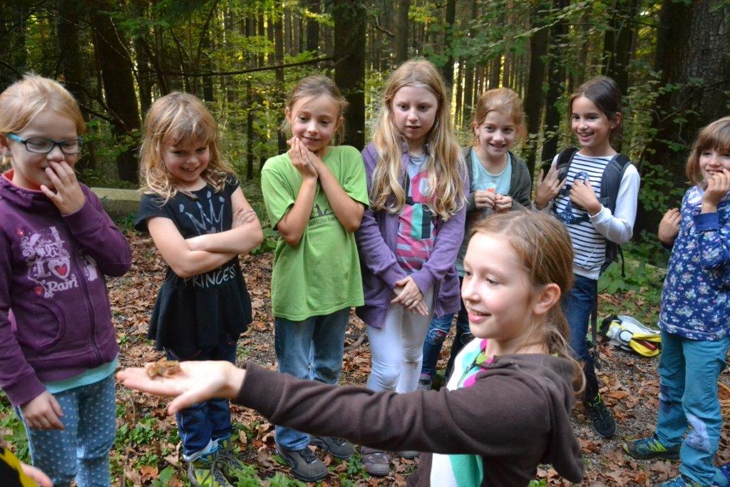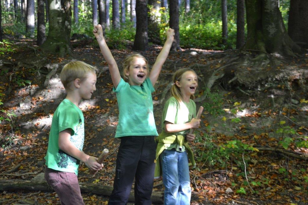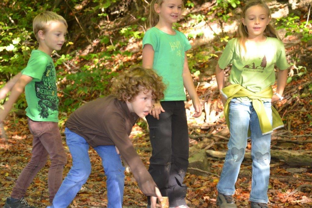 Zu Beginn war es notwendig das Waldstück und die besonderen Plätze gut kennenzulernen - vor allem für die neuen Kinder. Beim Schmuggelspiel zum Beispiel waren wir beim "Loch" unterwegs und verbrachten dort eine bewegte Zeit. Denn die Polizei war flink und die Schmuggler mussten wendig und schlau sein, um nicht ertappt zu werden. Eines Nachmittags hatte Judith eine aufgespannte Gamshaut mitgebracht und die Kinder konnten beobachten, wie man diese Rohhaut bearbeitet, um vielleicht einmal ein Leder daraus zu gewinnen. Die Kinder spielten gerne Wikingerschach und es ist echt unglaublich, wie treffsicher manche sind! Einmal versteckte sich Judith mit einer großen Trommel und die Kinder hatten die Aufgabe, sie anhand des akustischen Signals aufzuspüren. Das war gar nicht so einfach! Ja und da war auch noch das Froschorakel! Wohin wird er wohl springen? Wer ist der/die Glückliche und wird demnächst ... (ja das ist unser Geheimnis!).