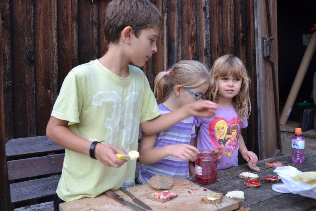 Die Füchse waren auch kreativ tätig und bastelten mit Hollerstäben Blasrohre und Kugelschreiber. Dabei entstanden einzigartige Kunstwerke! Einige Kinder liebten es zu schnitzen, Feuer zu machen und zu kochen. Philip, Zoi und Raimund bereiteten für die Gruppe einen köstlichen Hollerröster zu! Uli erzählte von ihrer Wanderreise und rund ums Lagerfeuer gab es dann zum Abschluss bei einer Geschichte auch noch Popcorn!