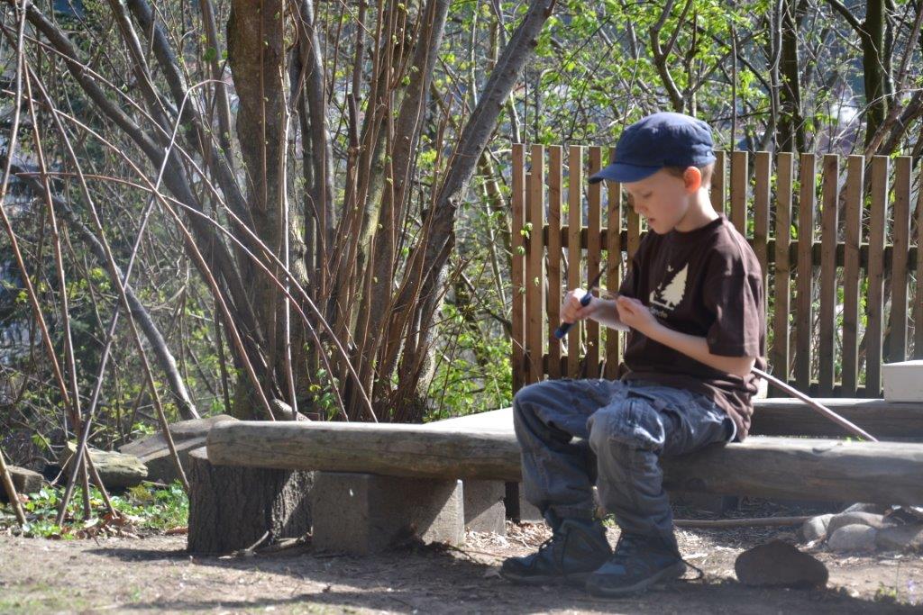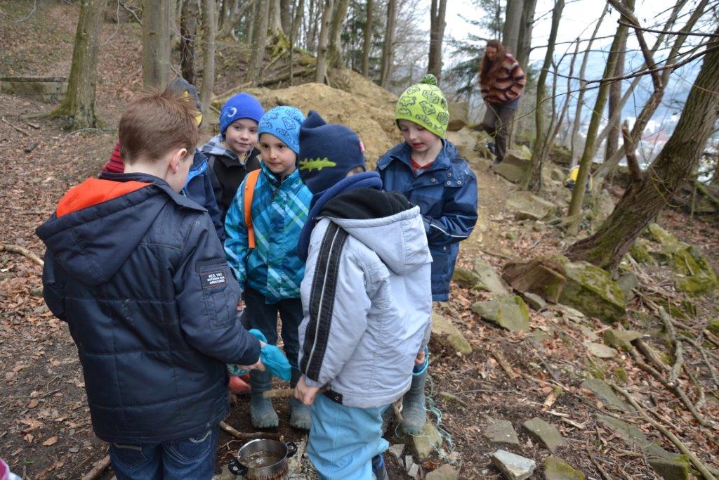 Jannik brachte beim letzten Treffen ein totes Rotkehlchen mit, das ihm seine Katze vor die Haustür legte. Wir haben es mit einem Vogelbuch bestimmt und genau betrachtet. Besonders aufregend war der Fund eines "Knochenfriedhofs" mitten im Wald und das Rangelspiel "Marsipulami", bei dem die Kinder ihre Kräfte messten, machte besonders viel Spaß! Natürlich haben wir auch Feuer gemacht, ein paar Köstlichkeiten darauf gekocht, wie zum Beispiel ein Erdäpfelgröstl oder Stanglbrot und Uli hat ein paar Geschichten erzählt.