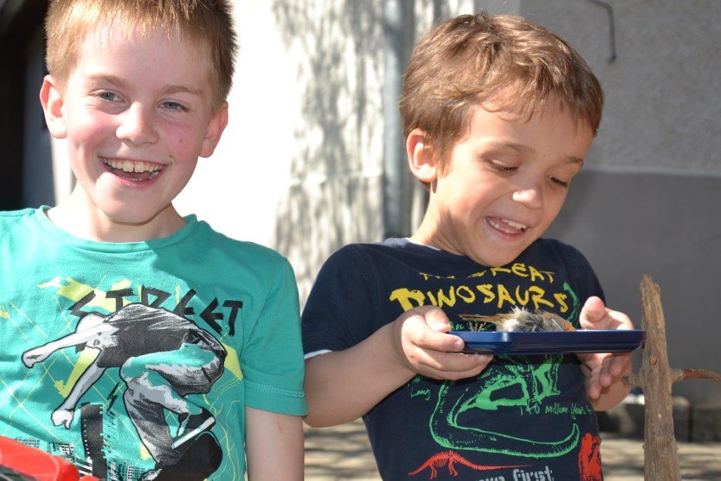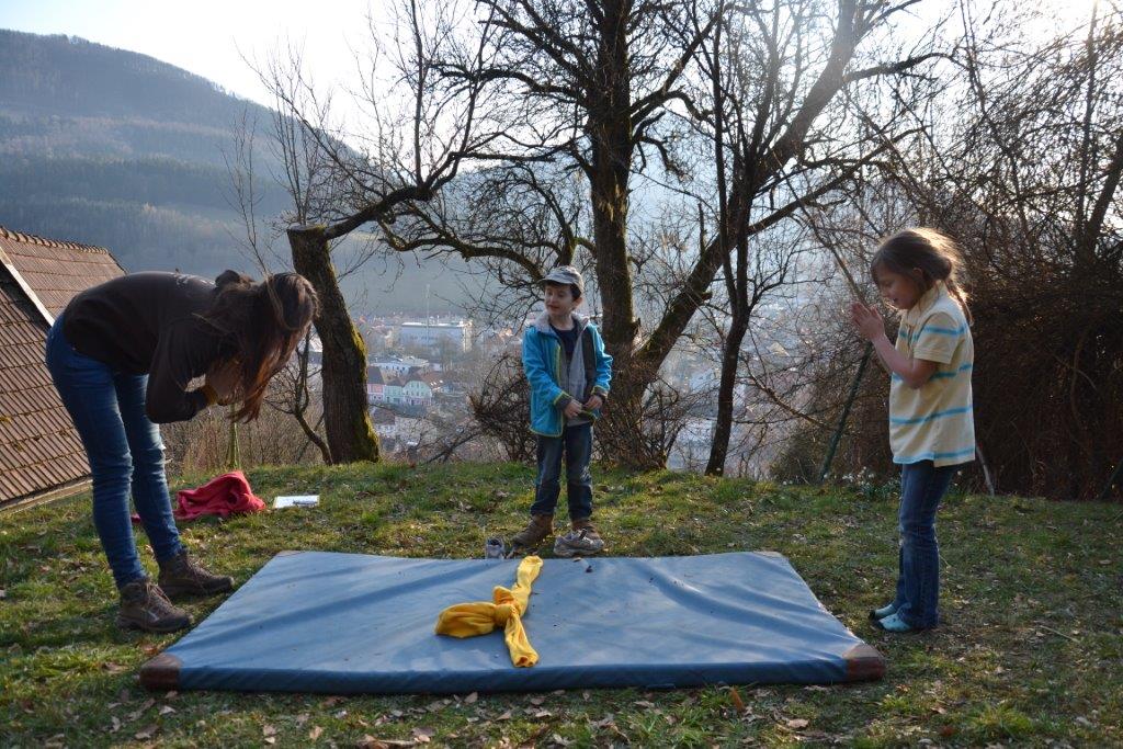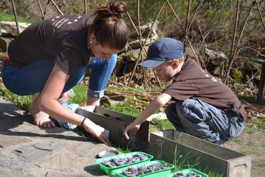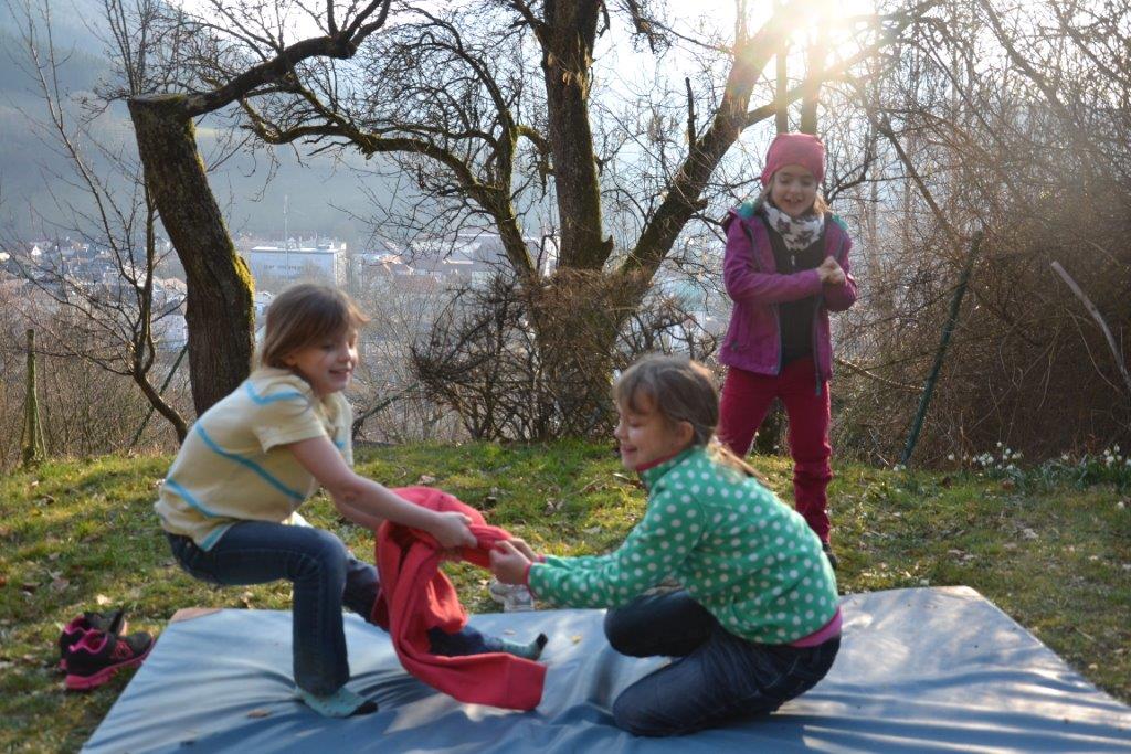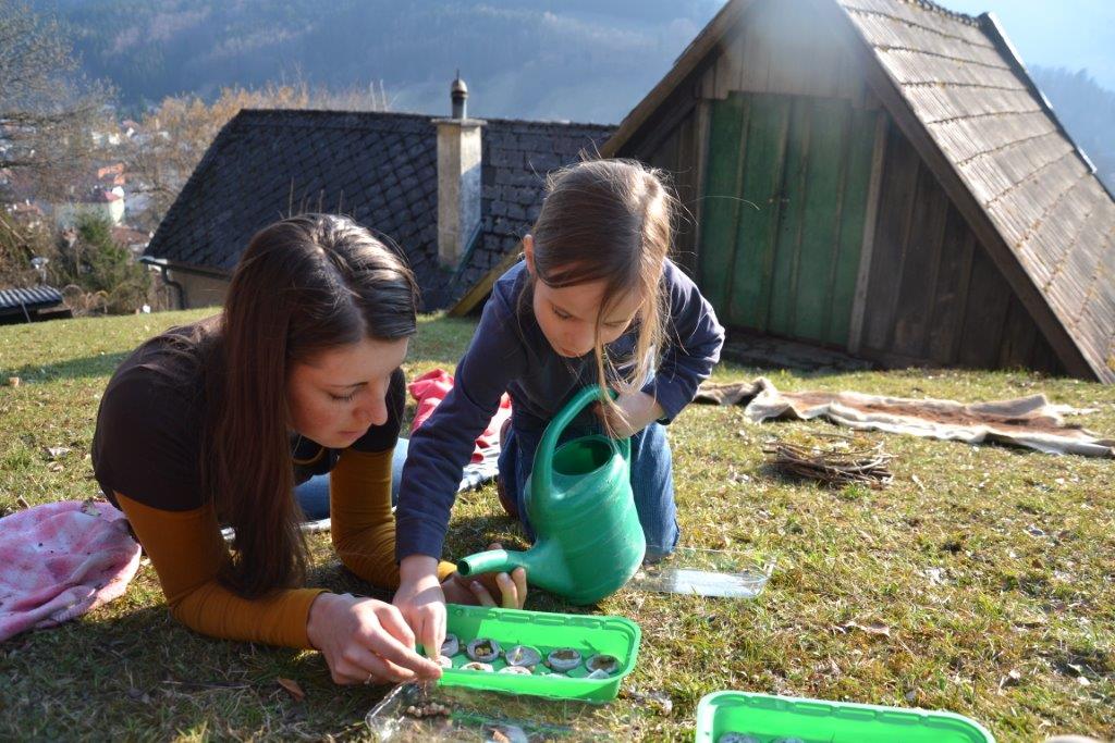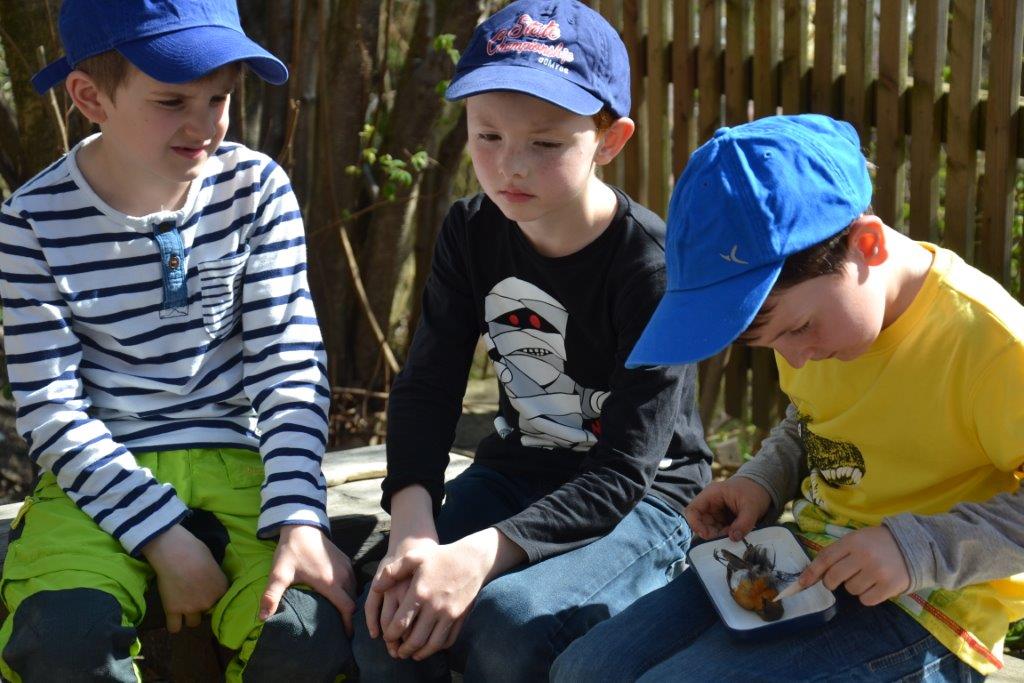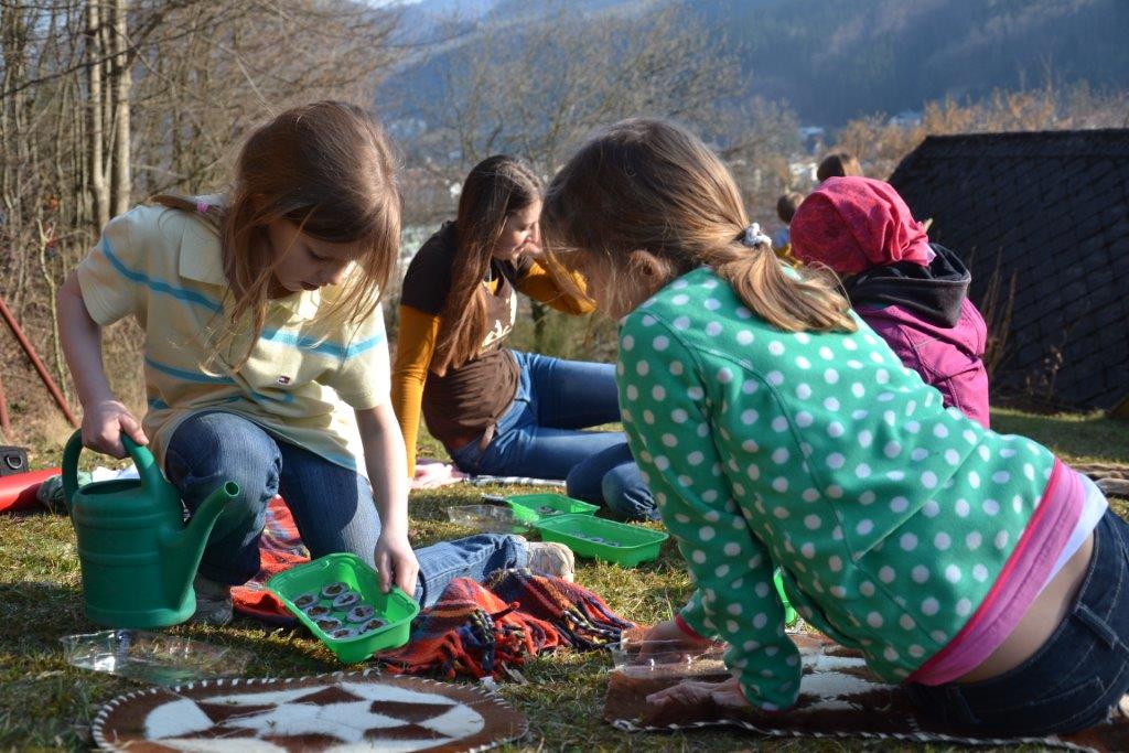 Die Raben waren auch unterwegs um die Geschenke des Frühlings zu finden. So konnten wir die unterschiedlichsten Frühlingsboten entdecken. Linus fand sogar ein Buschwindröschen mit neun Blütenblättern! Elisabeth säte mit einigen Kindern Ruccola, Spinat, Brunnenkresse und Blumensamen in kleinen Treibhäusern an, die später in Blumentröge ausgesetzt wurden. Wir sind gespannt, wie sich die jungen Pflanzen weiter entwicklen!