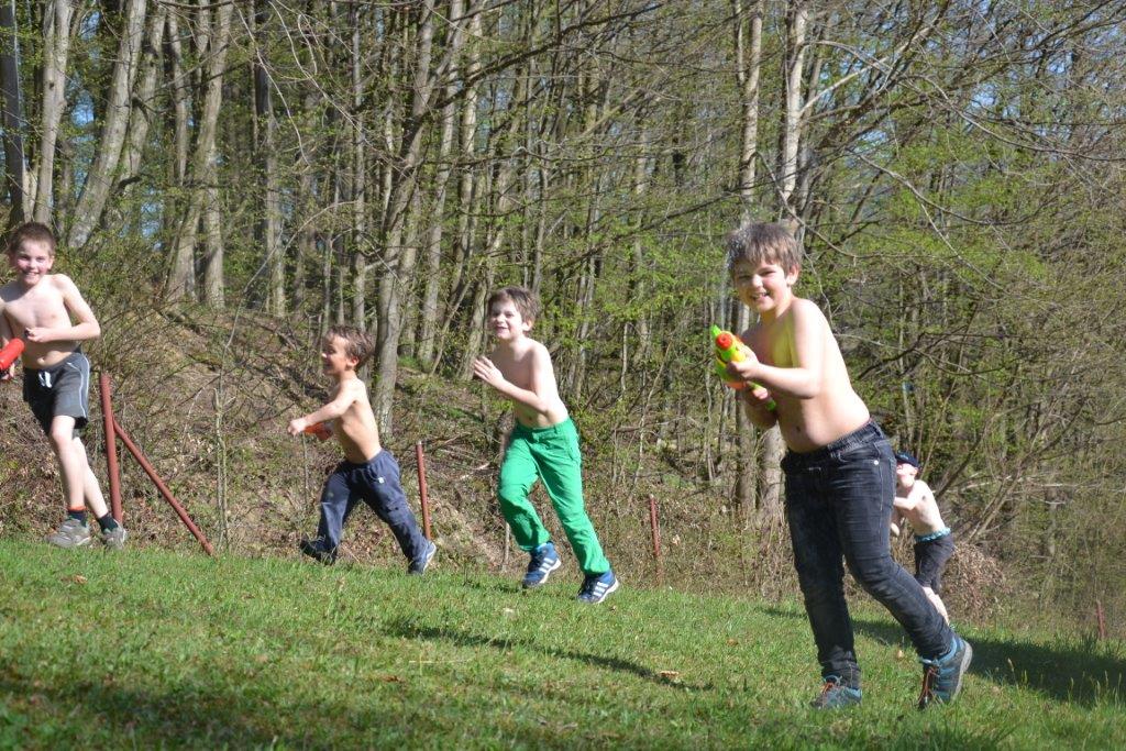 Als die Raben Anfang März in den Frühling starteten, waren die meisten Kinder im Schioverall und der Pudelhaube zu uns aufs Eckholz gekommen. Wie sich das Wetter, die Temperaturen und die Vegetation im Laufe der Zeit veränderten, konnten die Kinder spätestens beim letzten Treffen erkennen, als sie in kurzer Hose und kurzem T-Shirt mit Wasserspritzen durch den Wald flitzten.