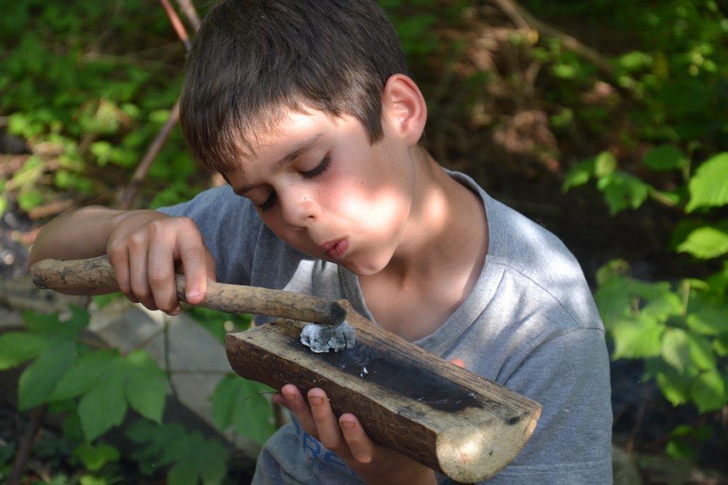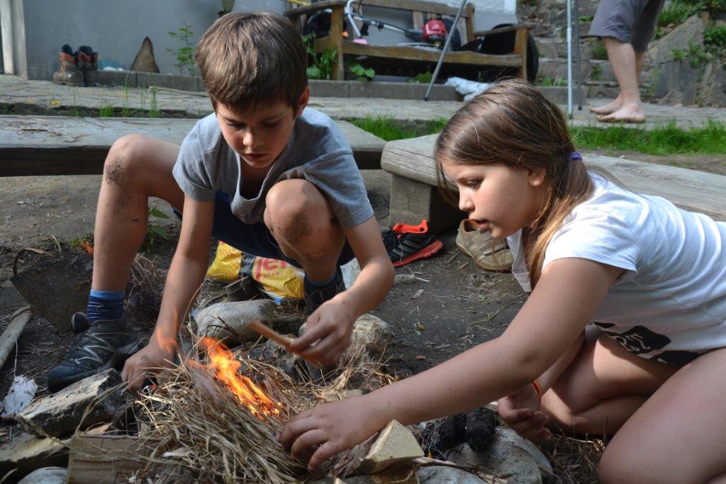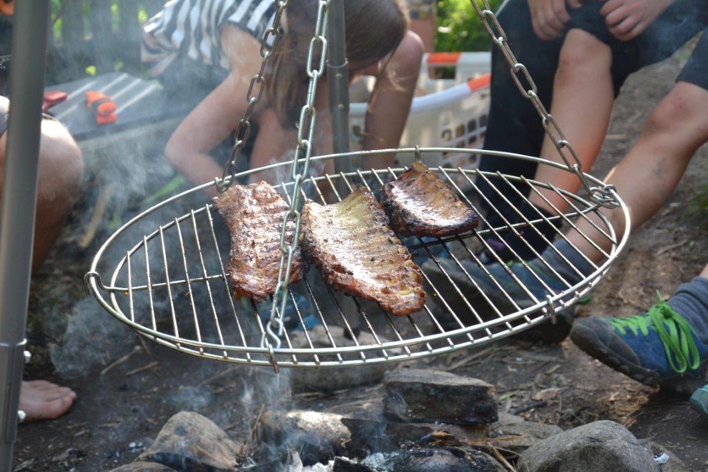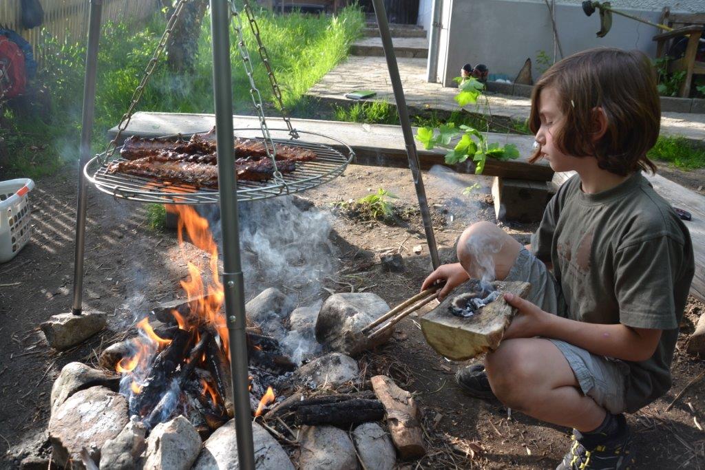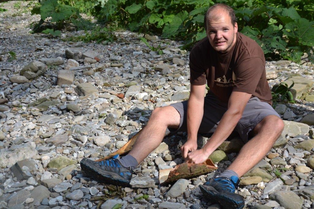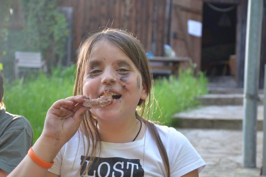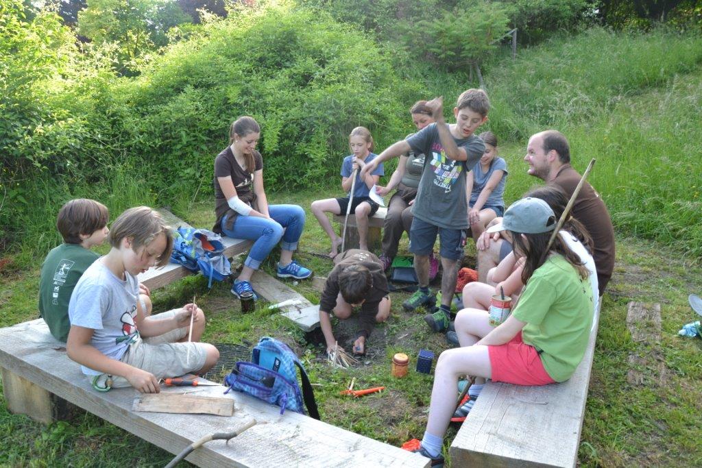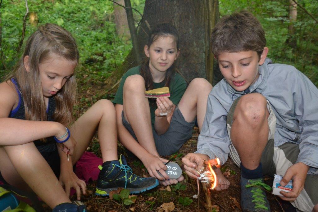 Wir feierten die Feste, wie sie fielen und so schmausten wir an Lucas und Franz Geburtstag Stockbrot mit Ripperl, Kartoffeln und Knacker am selbstentfachten Feuer. Bekannte Fertigkeiten wurden verfeinert, neue Fertigkeiten ausprobiert: so begannen einige Dachse mit der Herstellung einer selbstgebrannten Schüssel, wir probierten das Feuermachen mit einem kaputten Feuerzeug (der Zunder wird hier nicht verraten!!!) und Christian baute einen Kochtopf aus Fichtenbast.