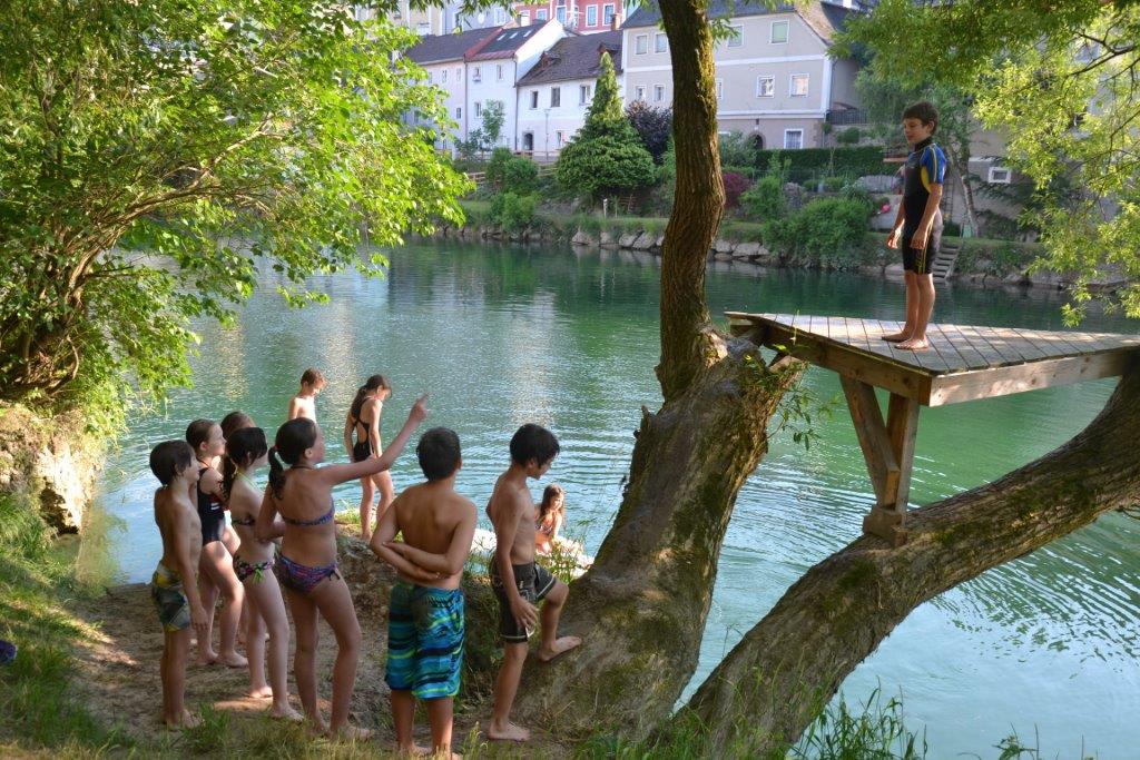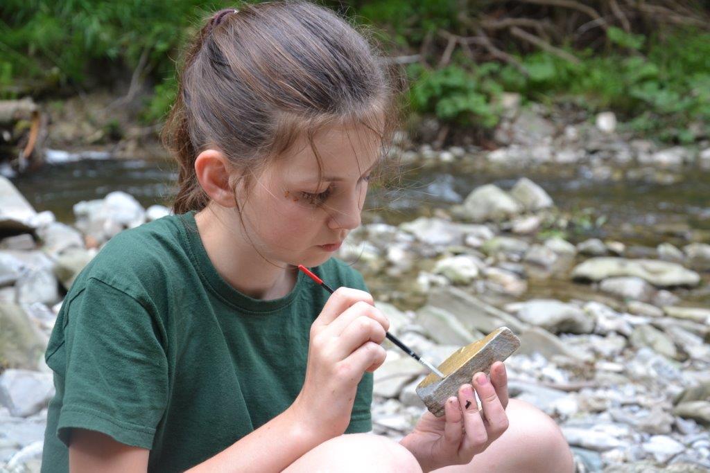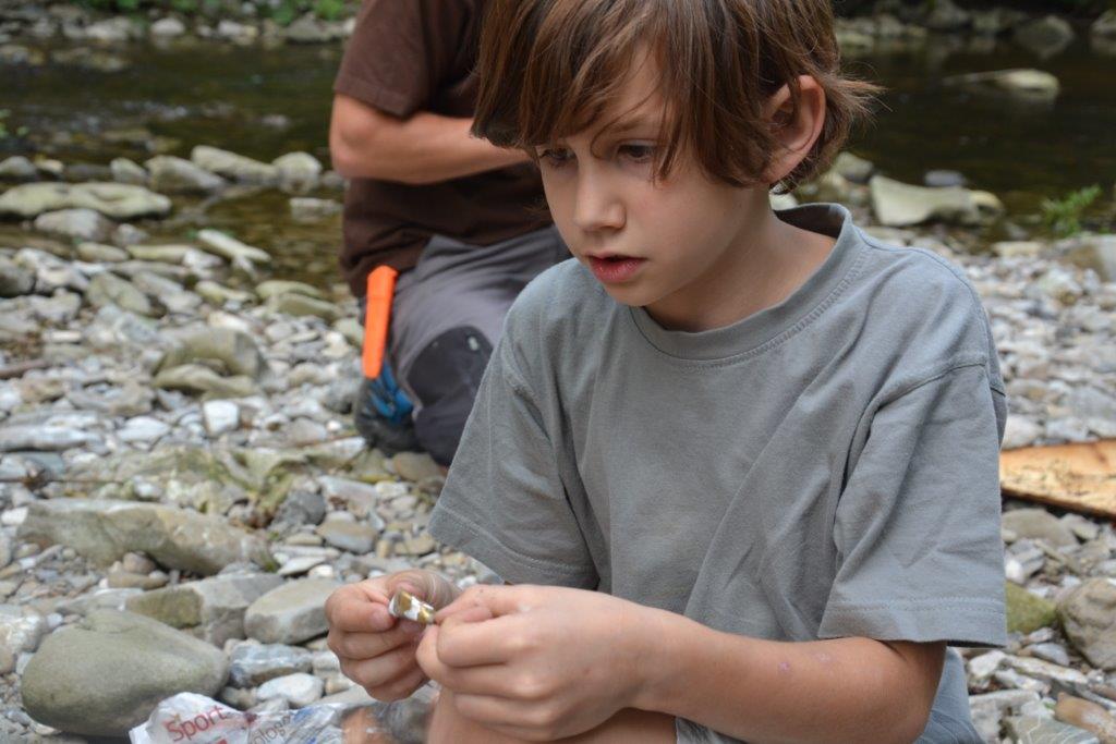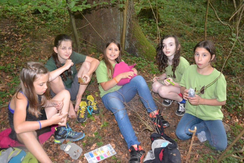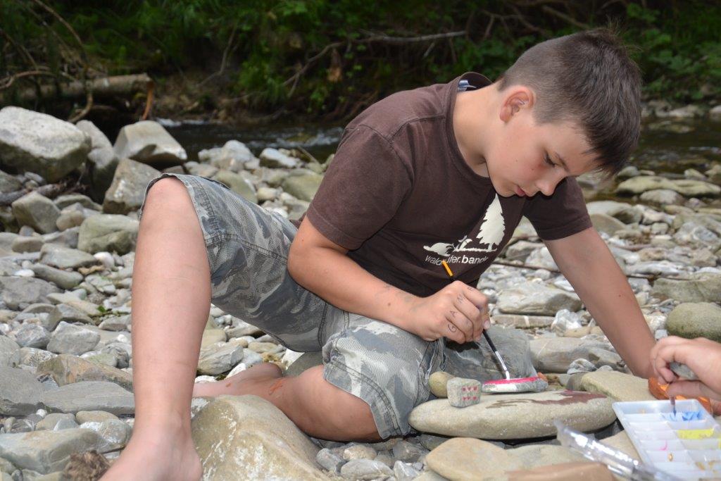 Ein besonderes Highlight der Sommerdachse war bestimmt die Übernachtung am Buchenberg. Nach einem hochsommerlichen Nachmittag an der Ybbs schlugen wir unser Lager im Indianerdorf am Buchenberg auf und bereiteten uns auf eine Übernachtung unter freiem Sternenhimmel vor. Es wurde gemeinsam am Feuer gekocht und nach Einbruch der Dunkelheit spielten wir ein geniales Anschleichspiel, bekannt auch unter „Fire stalking“, das unsere Wahrnehmung und die Fähigkeiten des lautlosen, unsichtbaren Pirschens auf die Probe stellte. Geschlafen haben wir nicht viel, auch wenn so manches Augenlid bei einer Geschichte rund ums Lagerfeuer schwer wurde. Müde, aber an zahlreichen Eindrücken und Erfahrungen reicher endete dieses Abenteuer mit einem fetzigen Laufspiel im Labyrinth. Das letzte Treffen verbrachten wir in Nimmerland, einem versteckten Platz am Bach, wo wir Steine bemalten und Franz Geburtstag feierten.