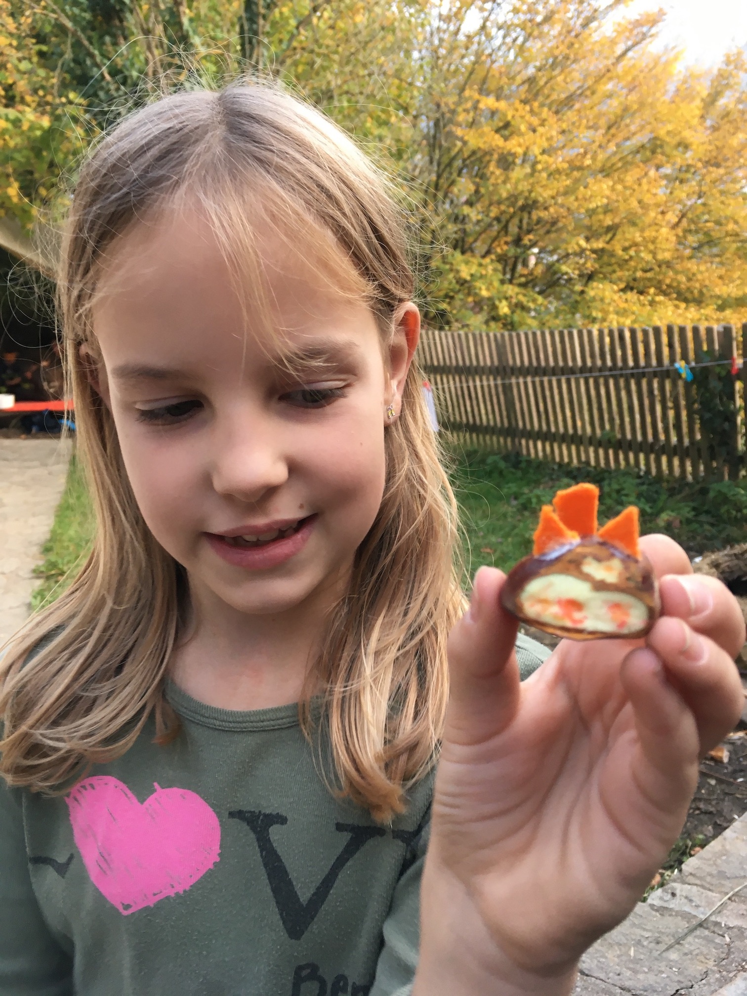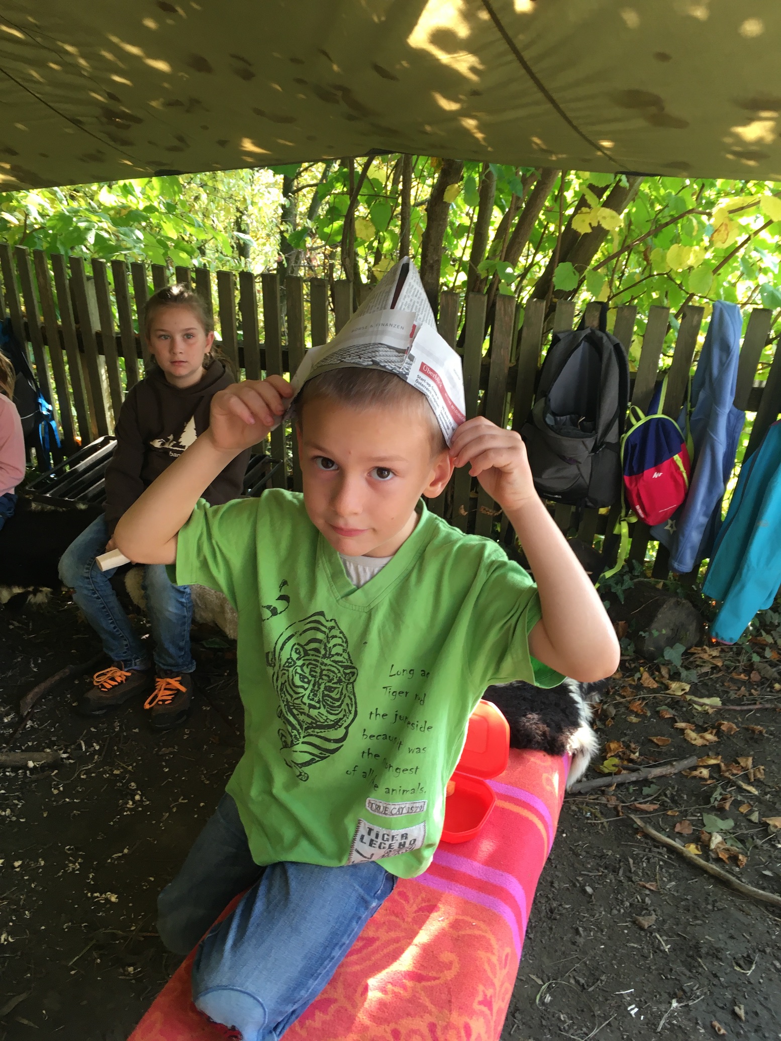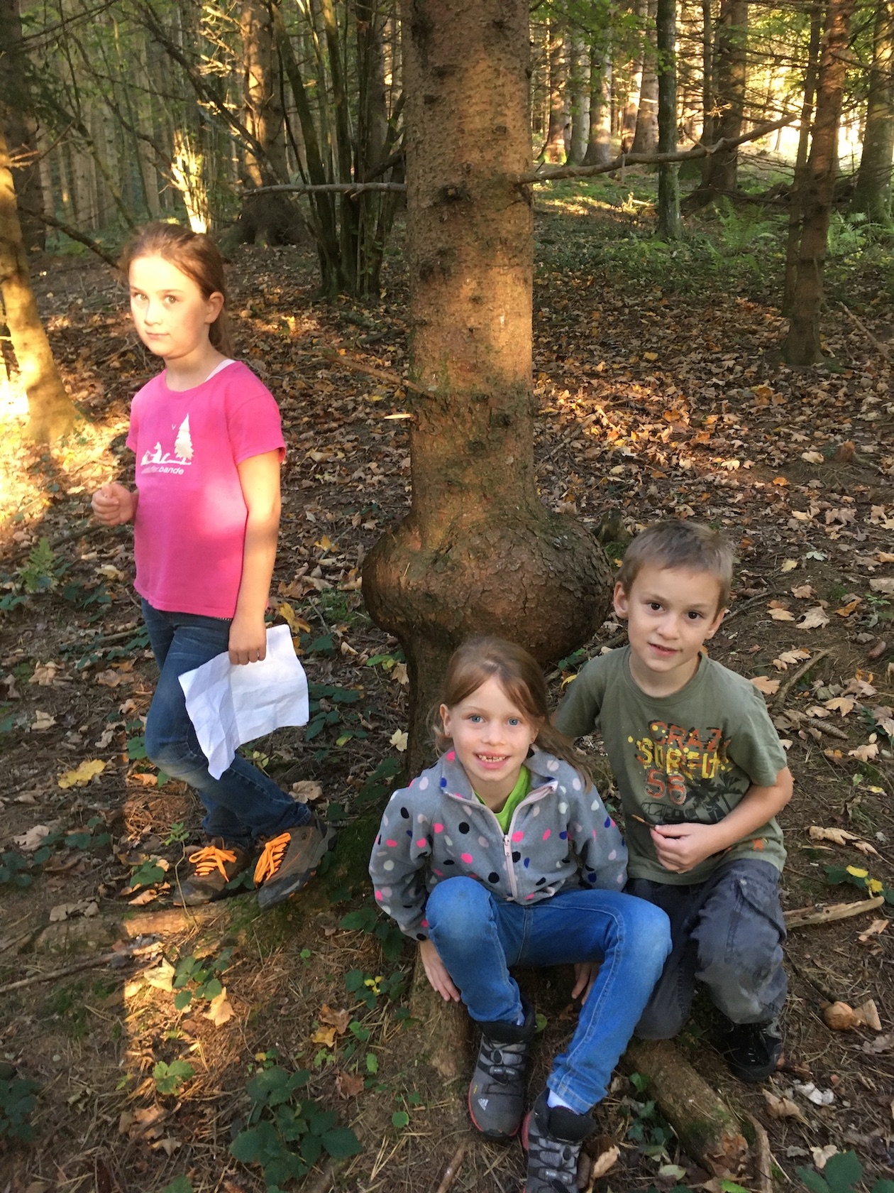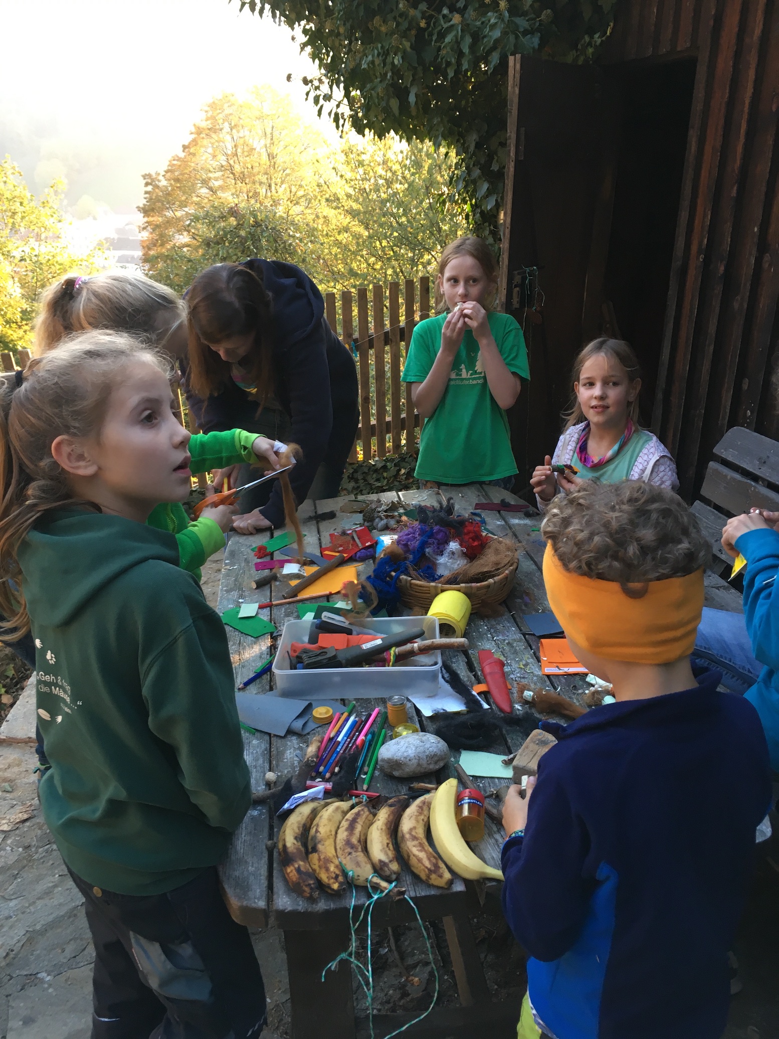 Wir haben uns im Laub versteckt und getarnt und im Wald die von den Falken unentdeckten Schätze im Land der Bananenrepublik gesucht - und gefunden! Da gab es auch einen Schatz, der angeknabbert war! Von wem wohl?!