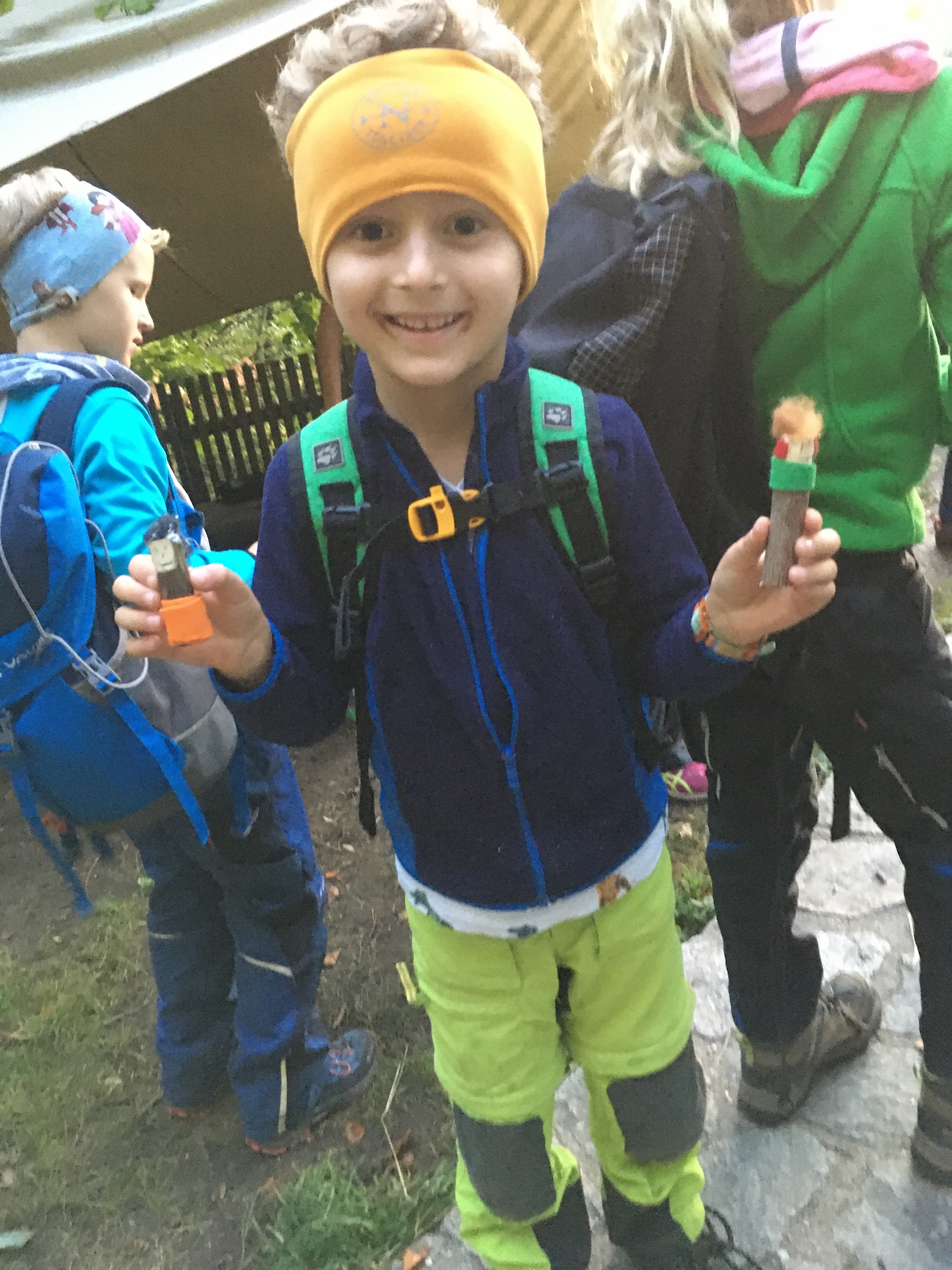 Wir haben kleine Waldzwerge, Gnome und sonstige Männchen aus Haselnussstöcken geschnitzt und verziert. Das gemeinsame Entzünden eines Feuers mit Zündstahl und trockenem Zunder, Kochen am Lagerfeuer und teilen der einen oder anderen Geschichte bzw. Witz durfte nicht fehlen.