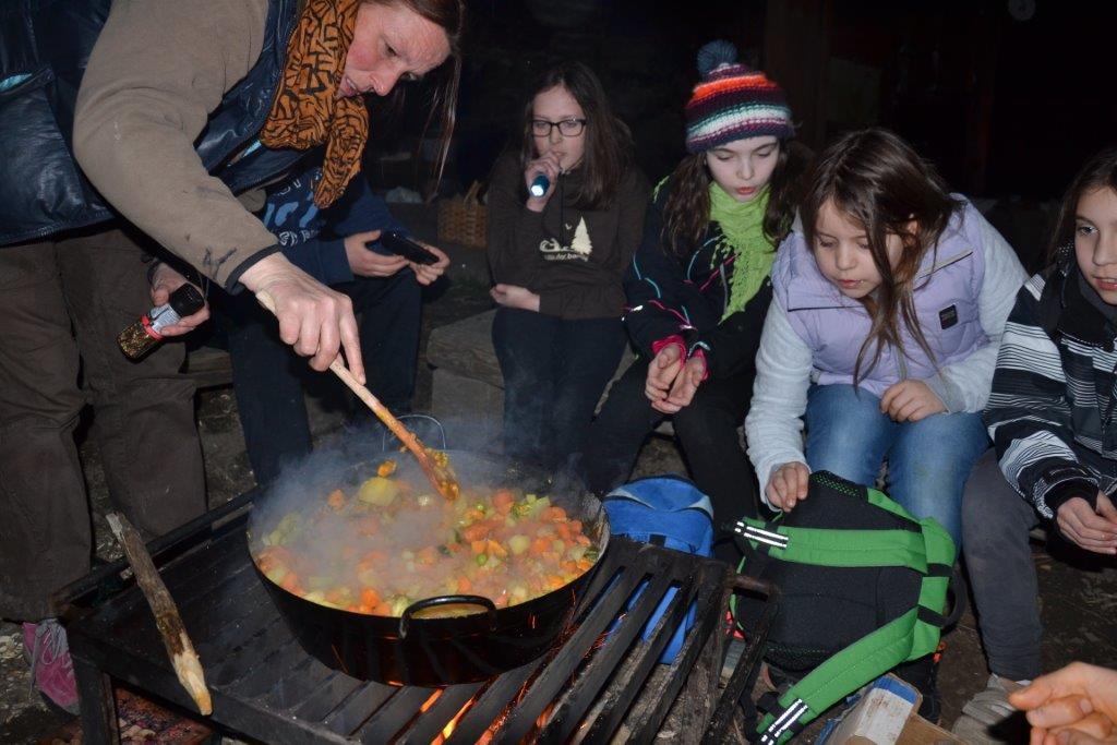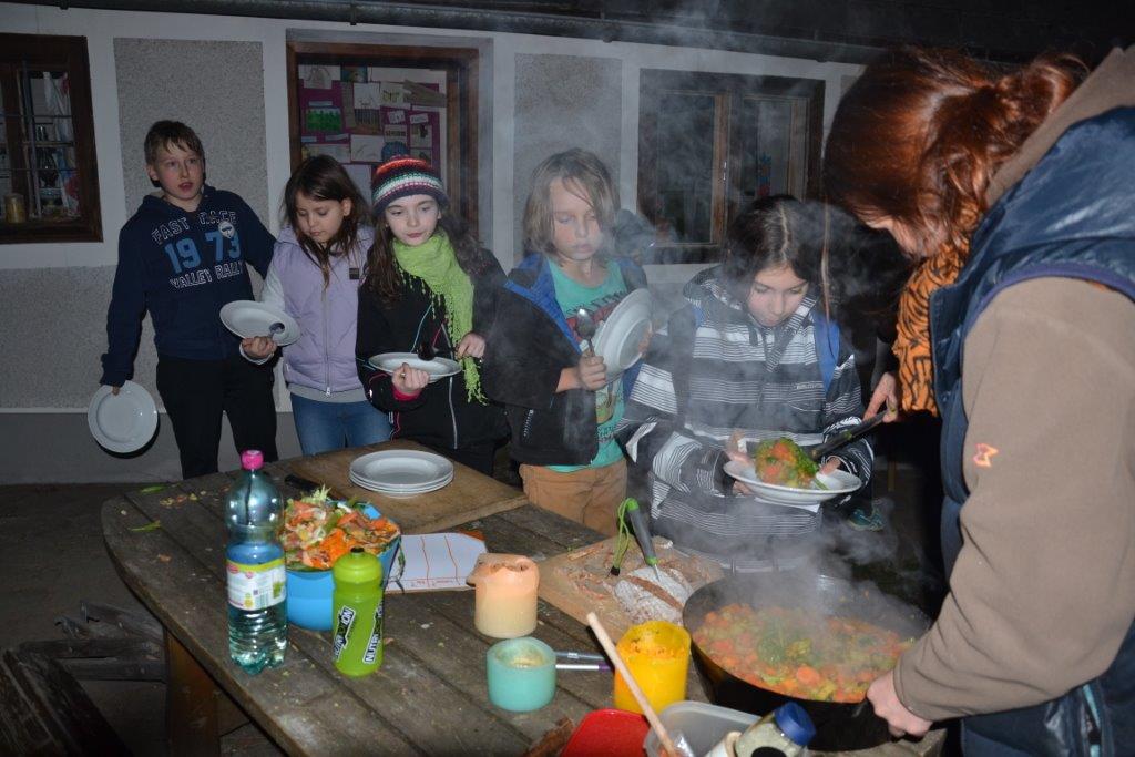 Am Lagerfeuer wurde wieder leckeres Essen zubereitet, unter anderem Palatschinken und ein Gemüseeintopf. Beliebte Geländespiele wie „Räuber und Gendarm“ oder „Capture the Flag“ durften nicht fehlen. Zudem wurde der Fallenbau für kleine Nager begonnen und intesiviert.