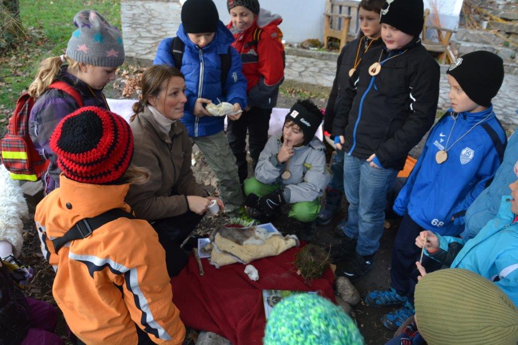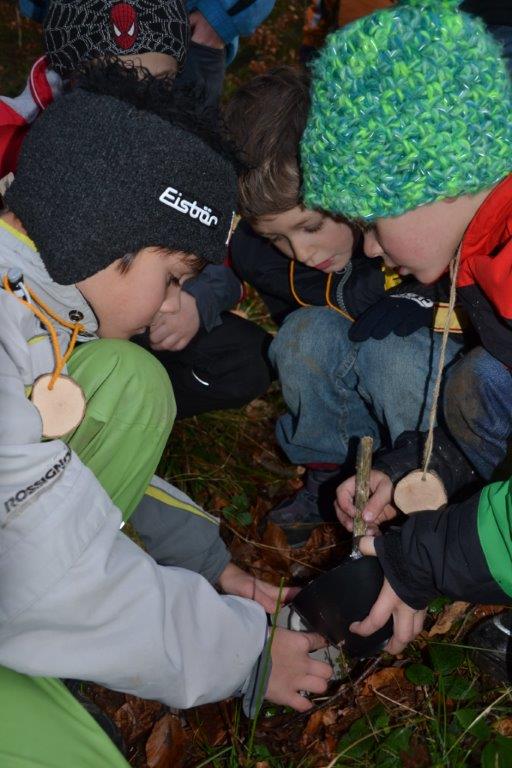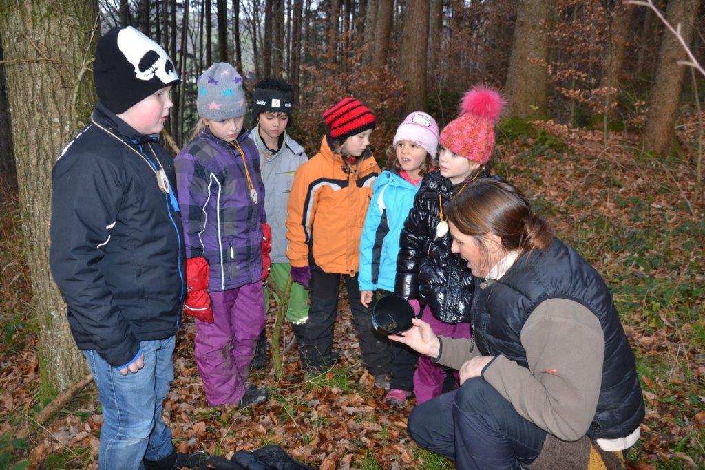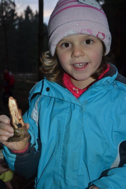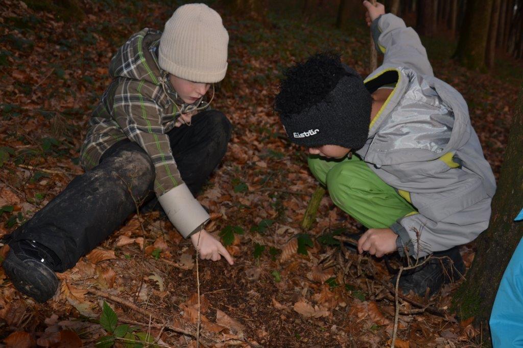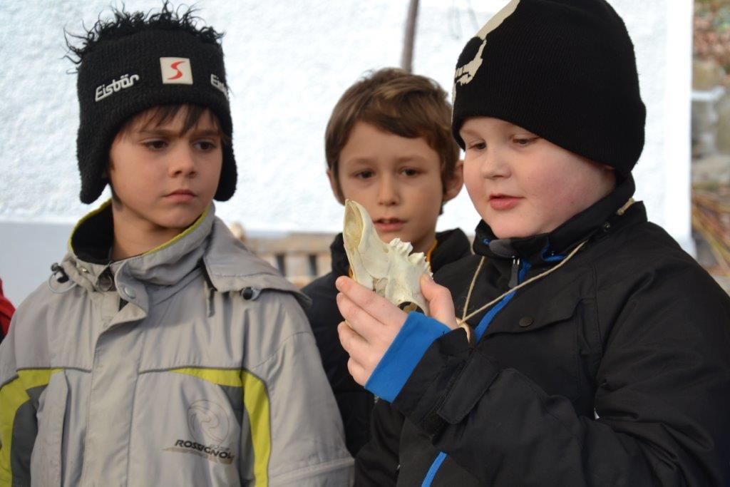 Im Dezember stand unsere monatliche Einzelaktivität unter dem Motto „Wer war denn das?“. Zahlreiche interessierte Kinder machten sich auf die Suche nach unterschiedlichen Spuren, um zu erkennen, welche Tiere bei uns am Eckholz leben. Zuerst stellten wir uns die Frage, was denn alles Hinweise sein könnten, um den Tieren auf die Spur zu kommen. Im Anschluss daran machten sich die jungen Detektive auf den Weg in den Wald und entdeckten einige Trittsiegel und Schlafplätze von Rehen, Losungen sowie Fraßspuren. Von besonders „schönen“ Rehspuren gossen die Kinder einen Gipsabdruck, den manche als Erinnerung mit nach Hause nahmen. Da sich auch die Tiere in der Dämmerung zur Ruhe legen, versuchten auch die Kinder in einem Versteckspiel möglichst unbemerkt zu bleiben. Den Höhepunkt fand unser Nachmittag in einer Mutprobe im finsteren Winterwald. Aber mehr wird davon nicht verraten…