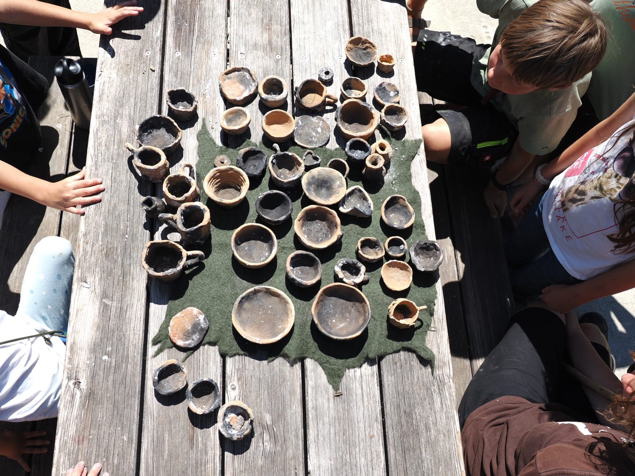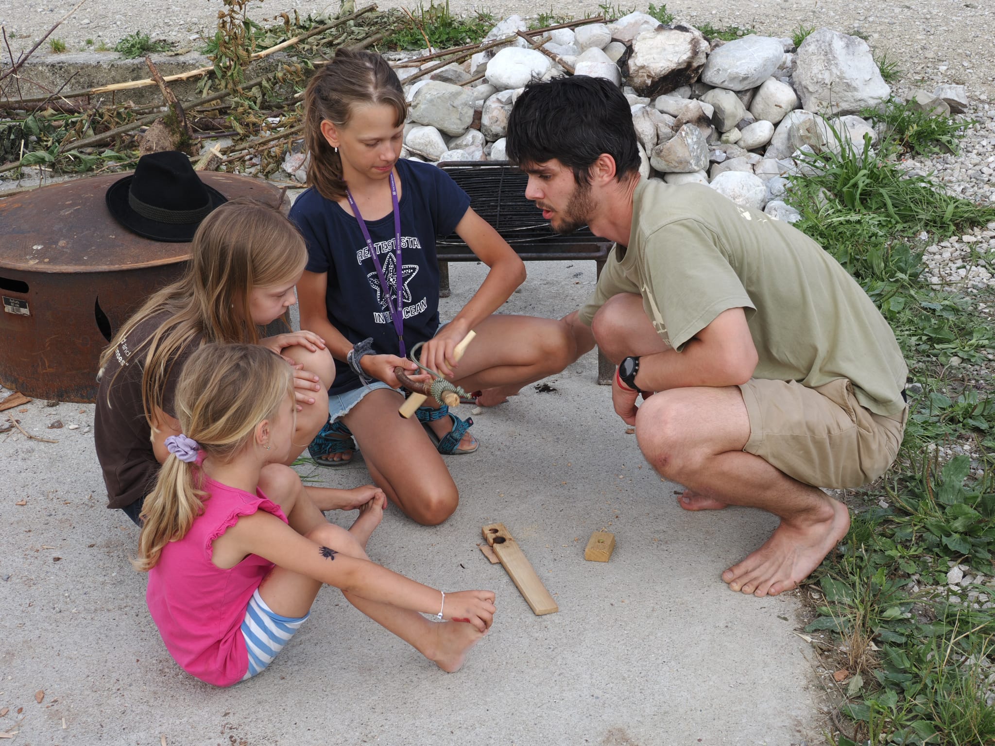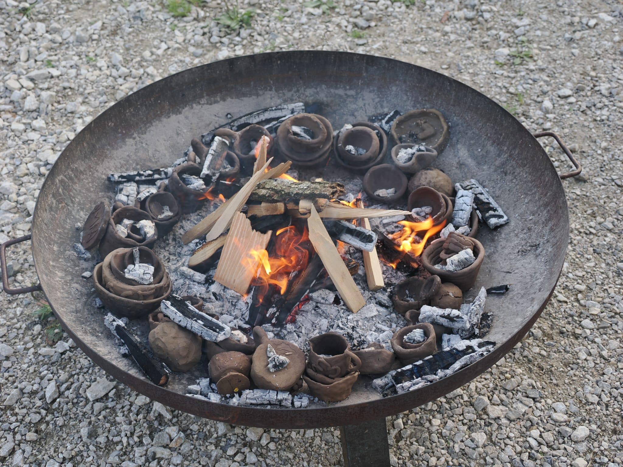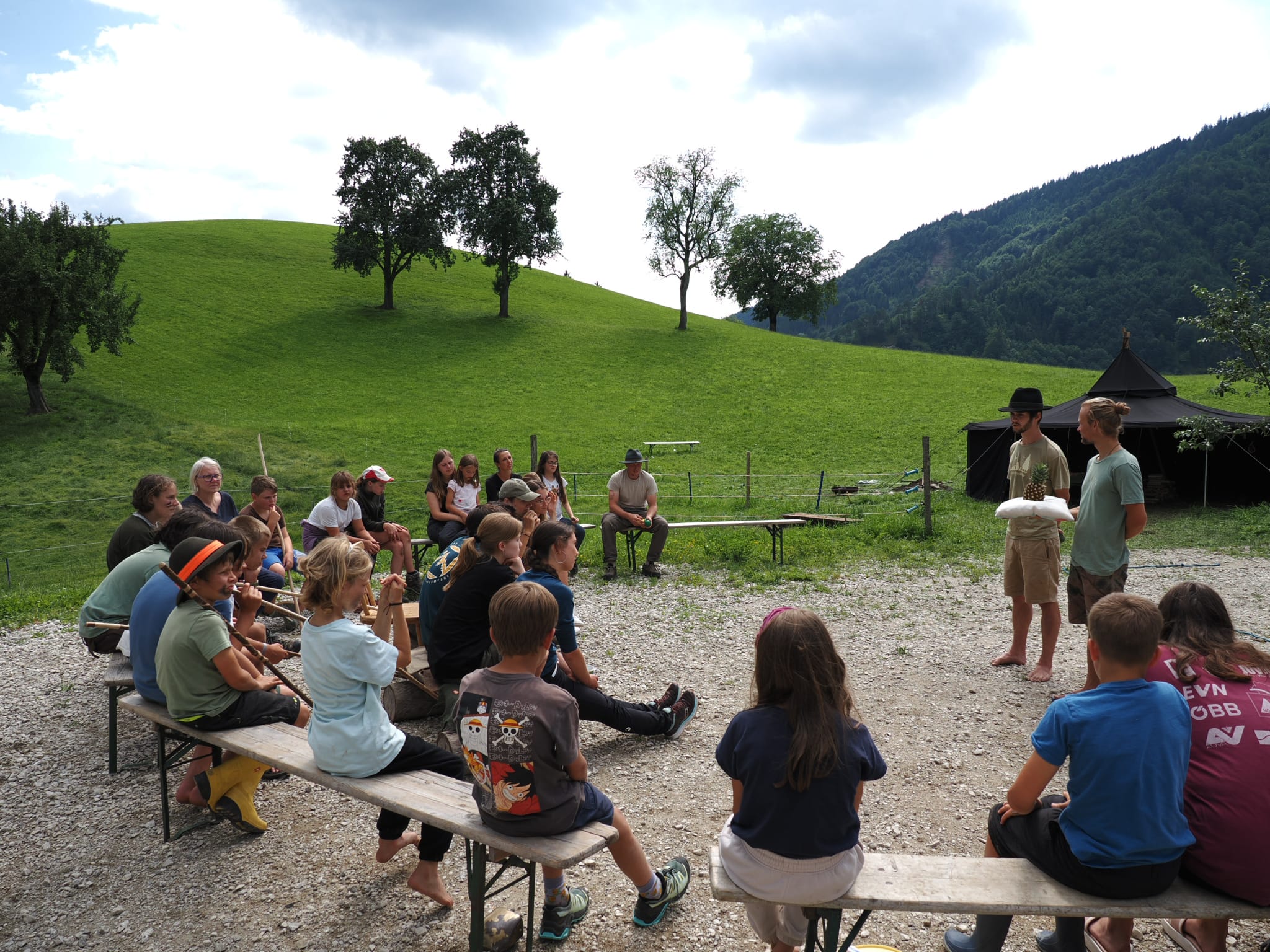 Dann wurden die Zelte aufgeschlagen; Wir schliefen eine ganze Woche im Zelt oder unter freien Himmel und verbrachten eine unvergessliche gemeinsame Zeit. Im Vordergrund dieser Sommerwoche standen Naturverbindung, echte Gemeinschaft erleben, Neues ausprobieren und Spaß. Das abwechslungsreiche Programm reichte von Töpfern am Lagerfeuer, schnitzen, gemeinsames Kochen, Feuer machen mit traditionellen Methoden, Geländespiele, filzen und vieles mehr. In diesem riesigen spielerischen Lernfeld konnten die Kinder über sich hinauswachsen, bestehende Freundschaften wurden gestärkt und neue geknüpft und wahre Verbundenheit zur Natur gelebt.