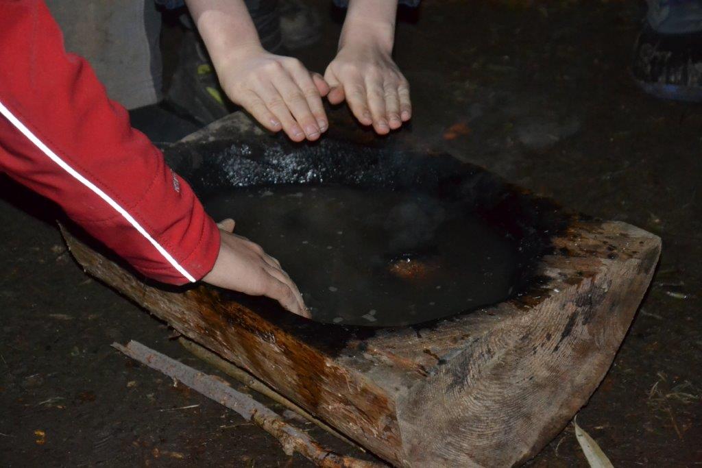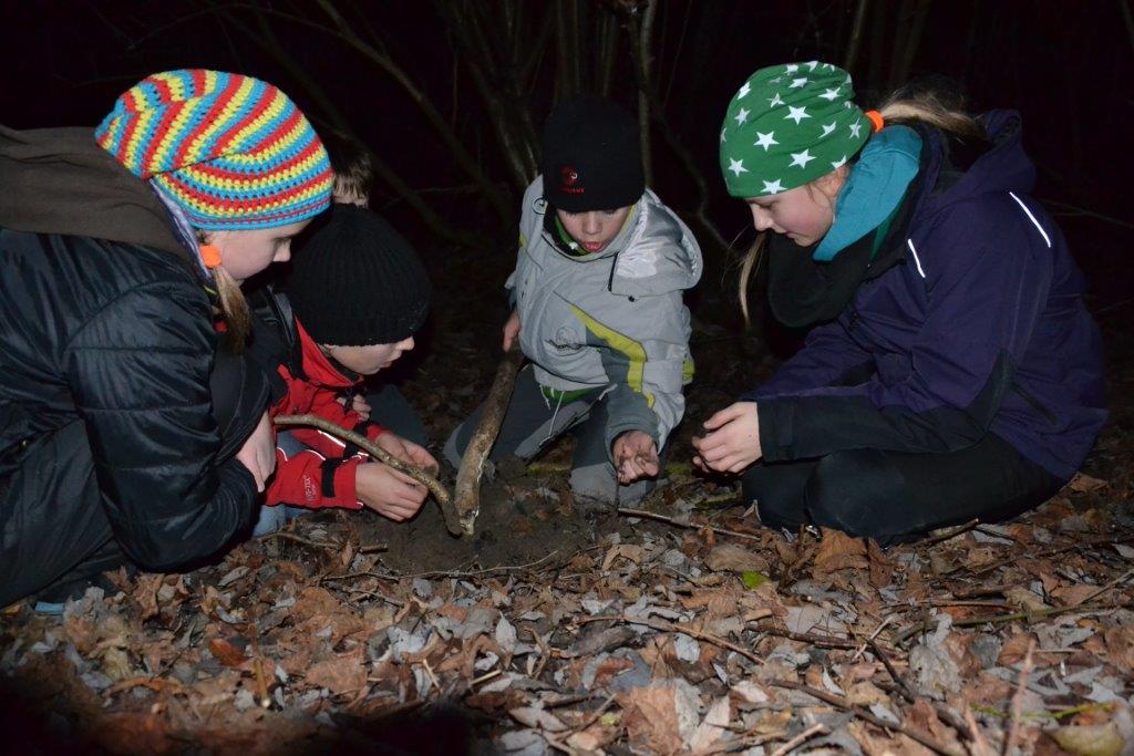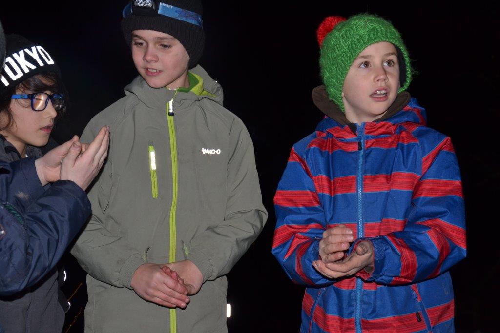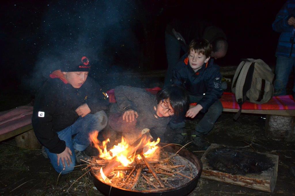 Julian, Luca und Anika vertreten ihren Clan als Sprecher und gleich beim ersten Treffen wurden die Aufgaben in der Gruppe gut gelöst: Lucas Clan konnte mit ortskundigem Kräuerwissen Bärlauchzwiebeln ernten und die Gruppe um Julian entfachte das Feuer. Während Christian spezielle Steine im Feuer erhitzte (Vorsicht: nicht nachmachen!), lösten die Dachse ein Musikquiz der speziellen Art. Mit den glühenden Steinen wurde im Anschluss "gekocht" - bestimmt werden wir diese Technik demnächst noch einmal ausprobieren. Naja und die Sache mit dem Tarnen und Verstecken - zehn, neun, acht, sieben, sechs, fünf, vier, drei, zwei, eins - ich schaue!! Mal sehen, welche Überraschungen der Winter für uns bereit hält...