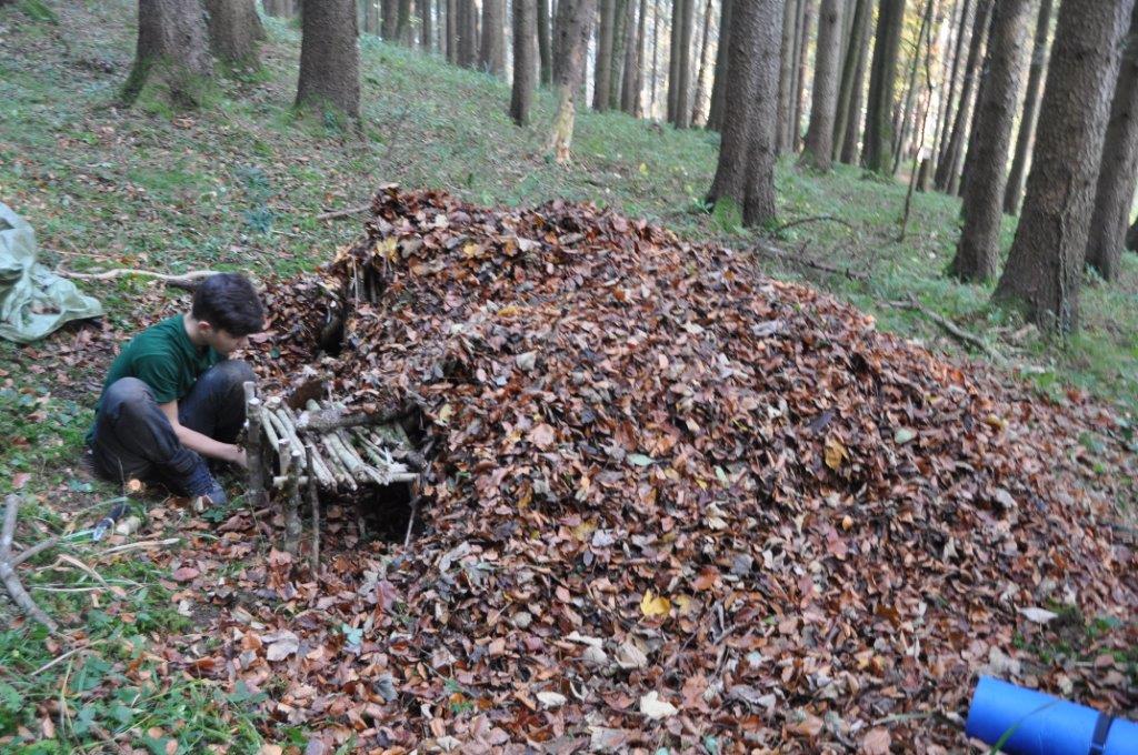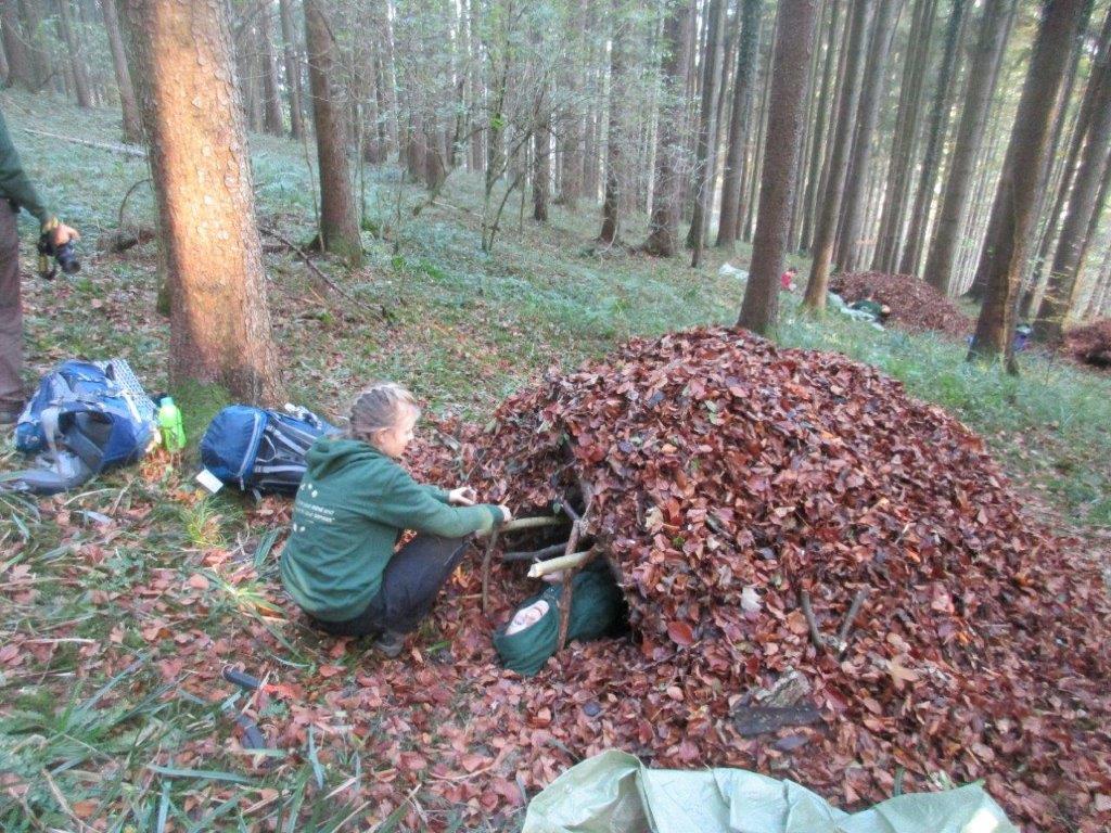 Einer Herausforderung der ganz besonderen Art folgten sechs Burschen und Mädchen der Waldläuferbande "Falken" am Donnerstag, den 26. Oktober. Gut vorbereitet begab sich eine Gruppe von Jugendlichen auf den Buchenberg, um ihren eigenen Shelter - eine Notunterkunft, die warm und trocken hält - zu bauen und eine Nacht darin zu verbringen.