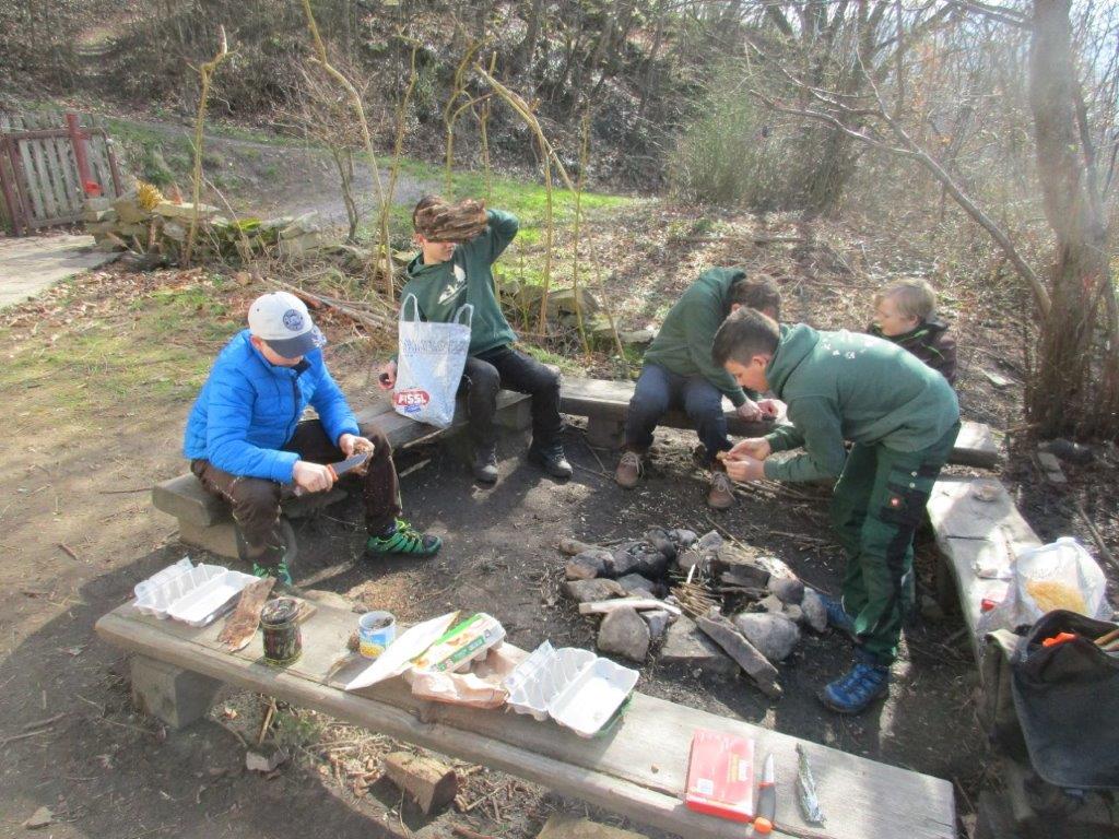 Fünfzehn Kinder umfasste die Waldläuferbande der Raben in diesem Frühlingszyklus, Mädchen und Buben bunt gemischt. Betreut wurden sie von drei Erwachsenen: Judith, Uli und Roland. Der Großteil der Gruppe kannte sich schon sehr gut, zwei Raben sind neu dazugekommen.