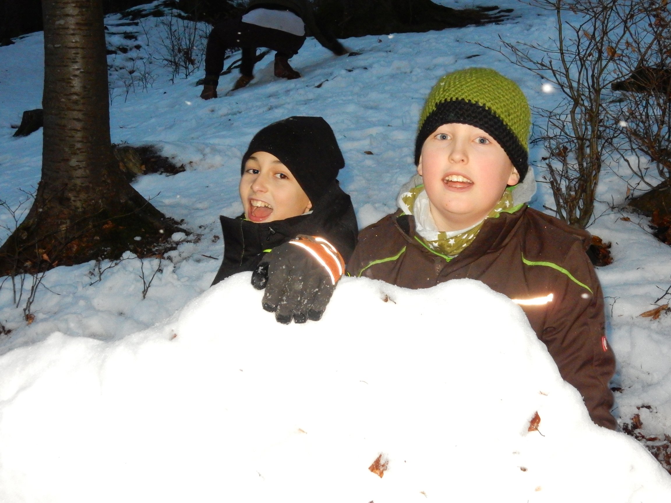 Rein ins weiße Vergnügen, dass es nur so staubt! Das könnte man meinen ist das Motto der Winterfüchse und der Winterraben. Endlich ist er da, der Schnee!! Alle freuen sich über die weiße Pracht und wie gewohnt treffen sich die Waldläuferkinder auch im Winter am Eckholz.