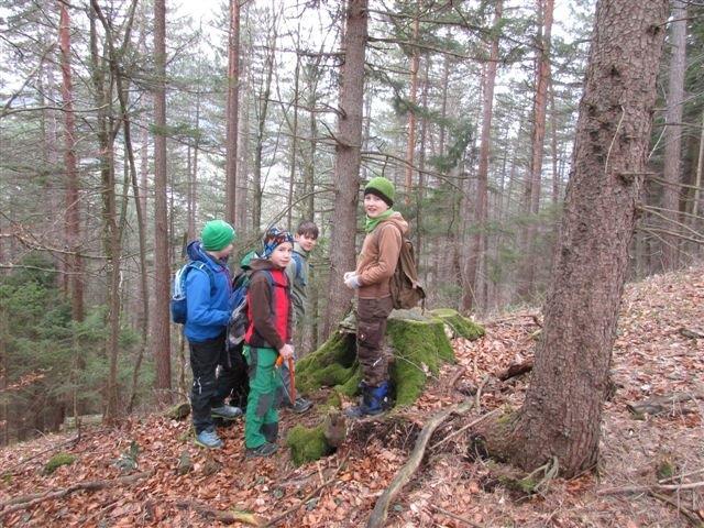 Am Beginn des Erlebens steht die Wahrnehmung. Was aber, wenn der dominante Sinn - unser Sehsinn - wegfällt? Dieser Frage ging die Waldläuferbande der Dachse nach. Christian und Judith erzählten eingangs eine inspirierende Geschichte und rasch war klar, dass sie versuchen wollen, mit verbundenen Augen den Weg zum Holzplatz zu finden.