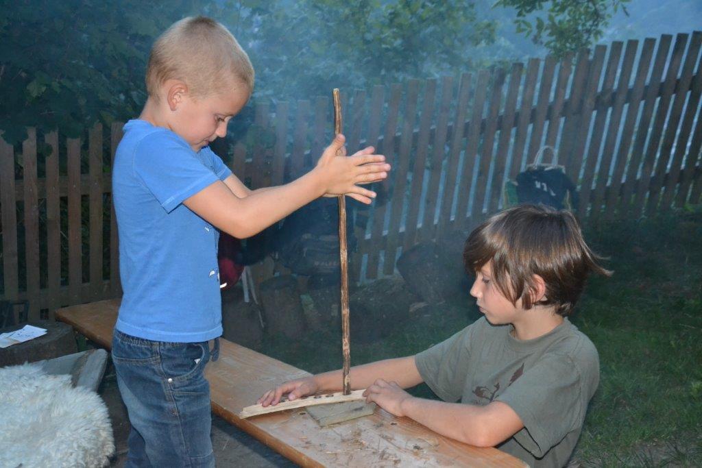 Ganz im Zeichen des Feuers stand der vierte Tag der Wilden Woche.Wie das Feuer auf die Erde kam - davon erzählte eine indianische Geschichte und nachdem die Kinder einiges über Zunder und den Aufbau eines Feuers erfahren haben, machten sie sich in Gruppen daran, ihr eigenes Feuer zu entfachen. Das hört sich einfacher an, als es ist...