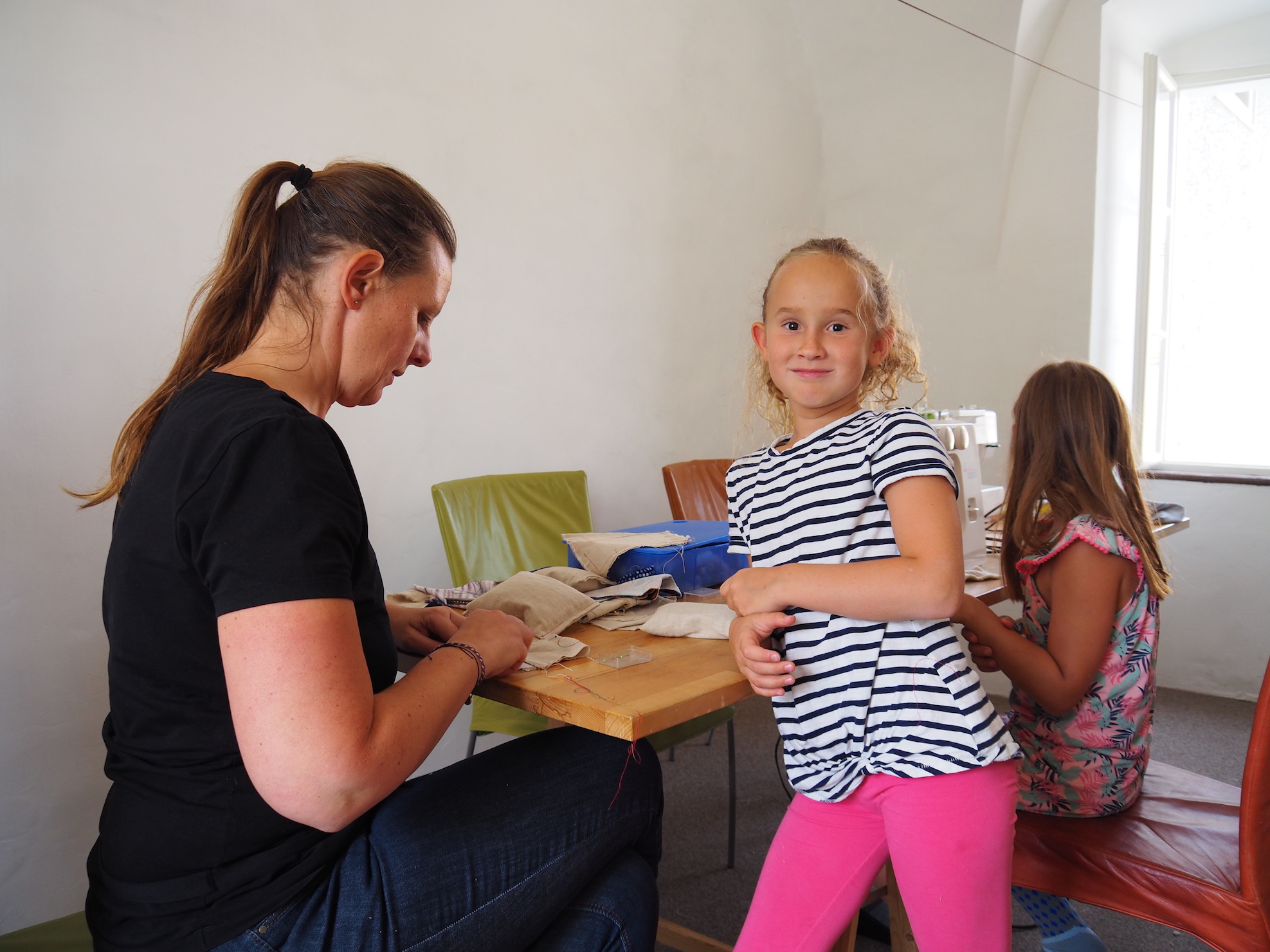Heute war viel los in der spür.sinn Werstatt! DIe Nähmaschinen schnurrten in den kühlen Räumen des Ybbsturmes und nach und nach sind einige schöne, individuelle Stücke entstanden. Zu allererst galt es einmal, sich mit der Nähmaschine vertraut zu machen, eine gerade Naht zu nähen und das Fußpedal in der richtigen Dosierung zu bedienen! Und dabei auch noch auf die Führung des Stoffes zu achten! Nach einiger Übung sind auch wirklich schöne Duftpolster, Taschen, Schlüsselanhänger, ... entstanden!